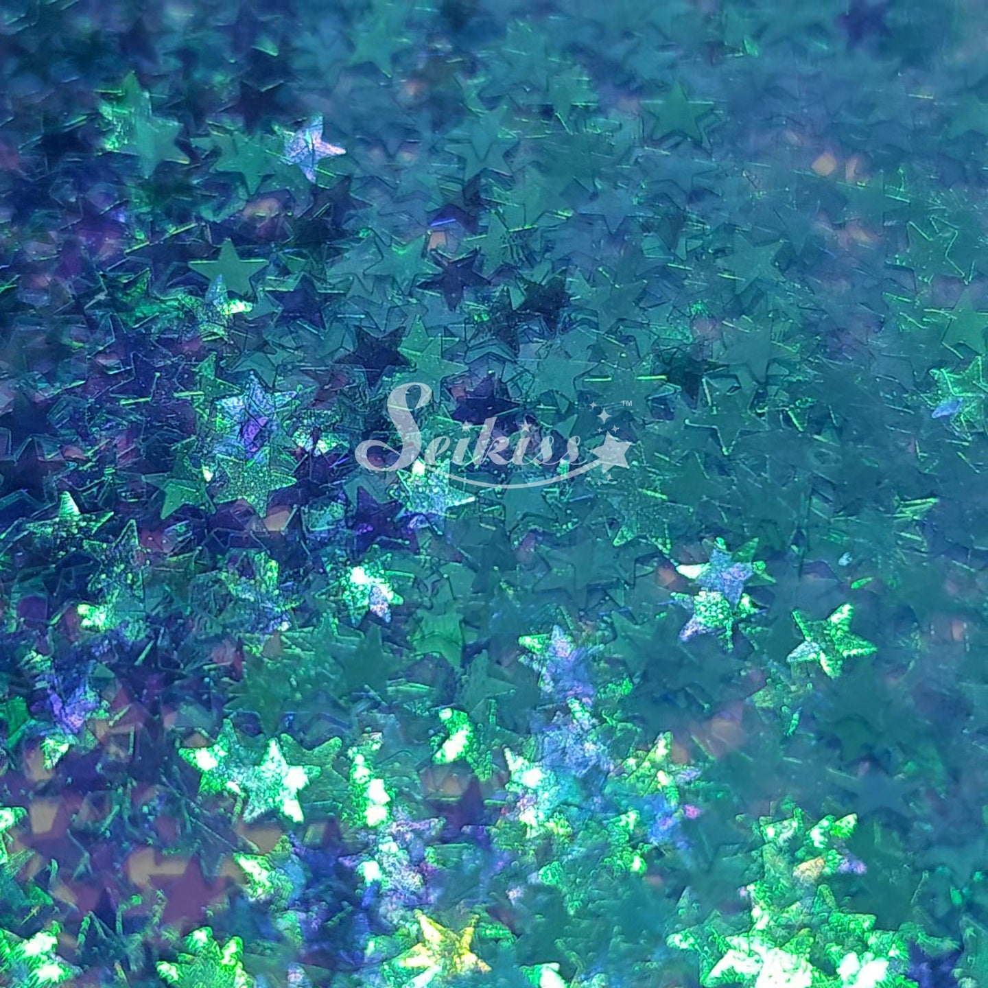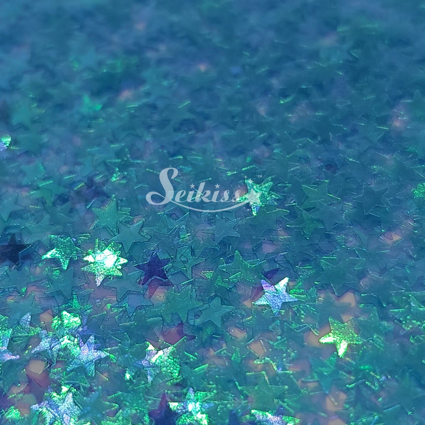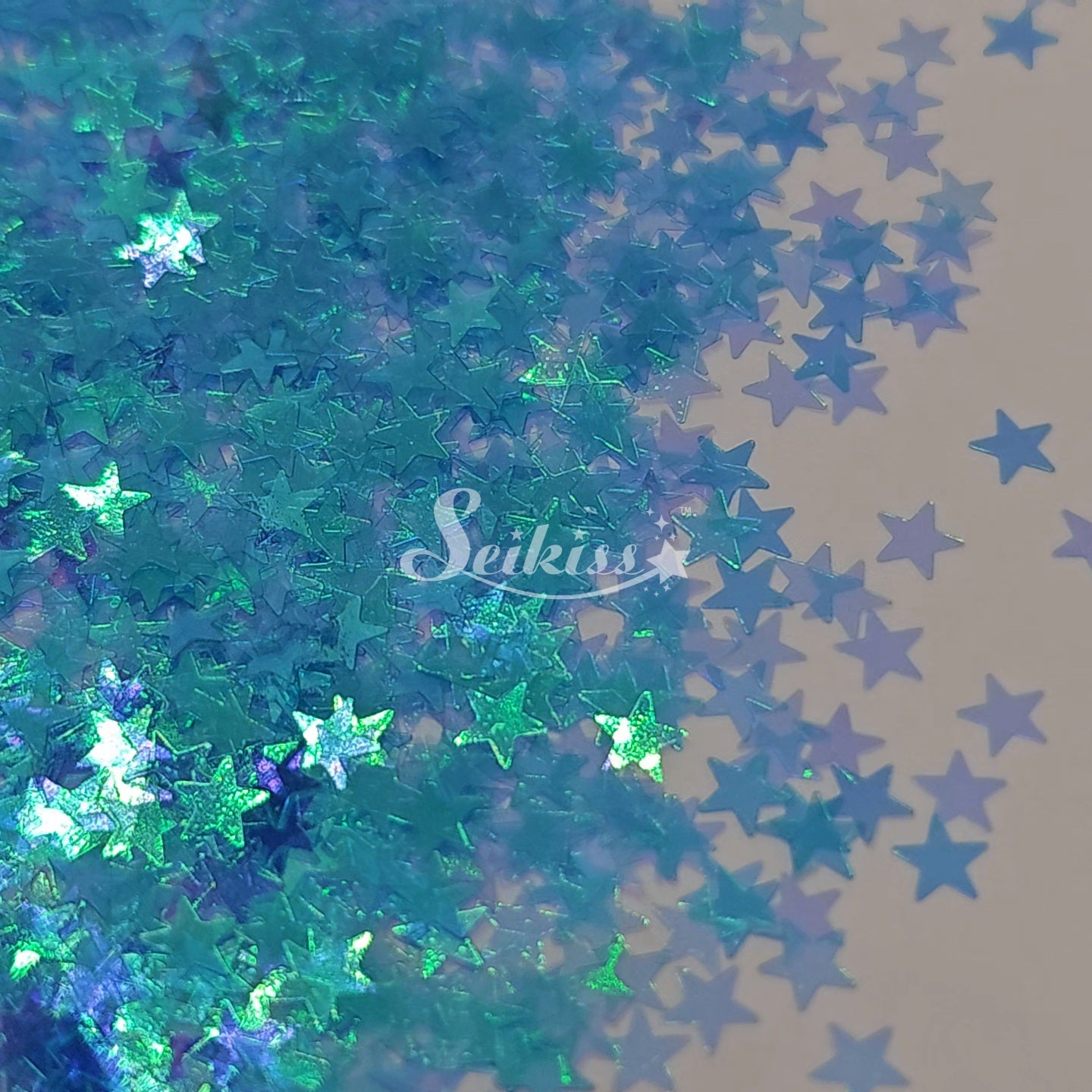 Aqua Stars is a mix of blue star shapes with an iridescent finish. This makes your projects shine and is perfect for resin, nails, tumblers, jewelry, arts, and all types of crafts and projects.