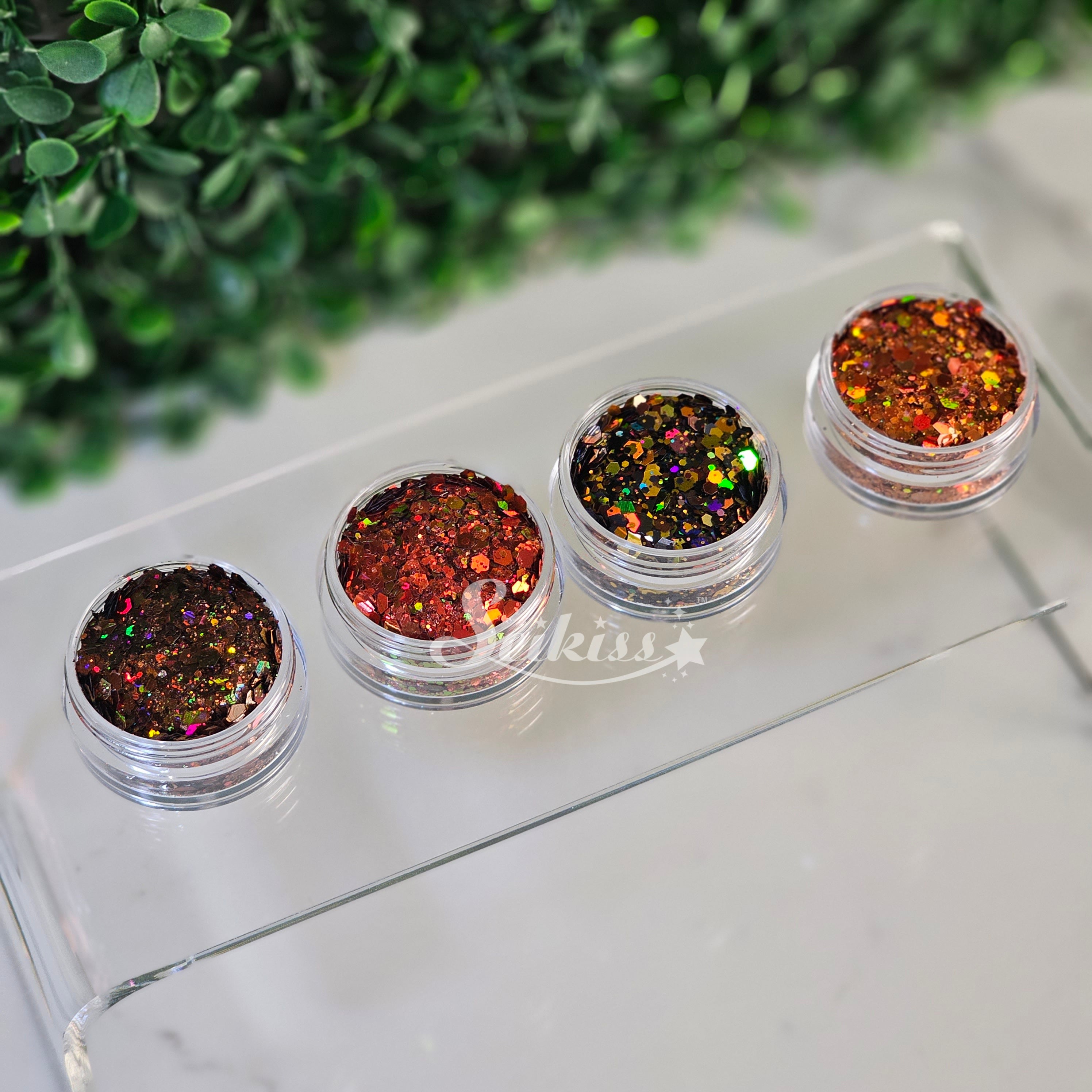 Fall for these unique autumn colors that will make your projects shine and are perfect for resin, nails, tumblers, jewelry, arts, and all types of crafts and projects.