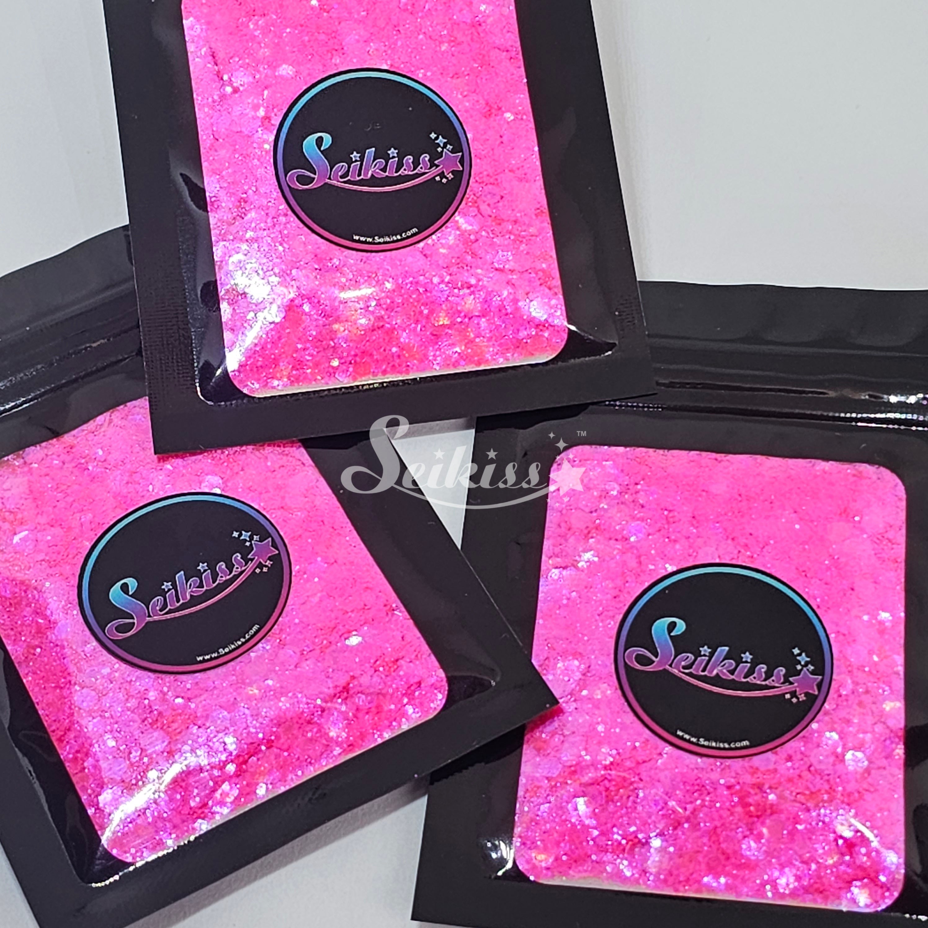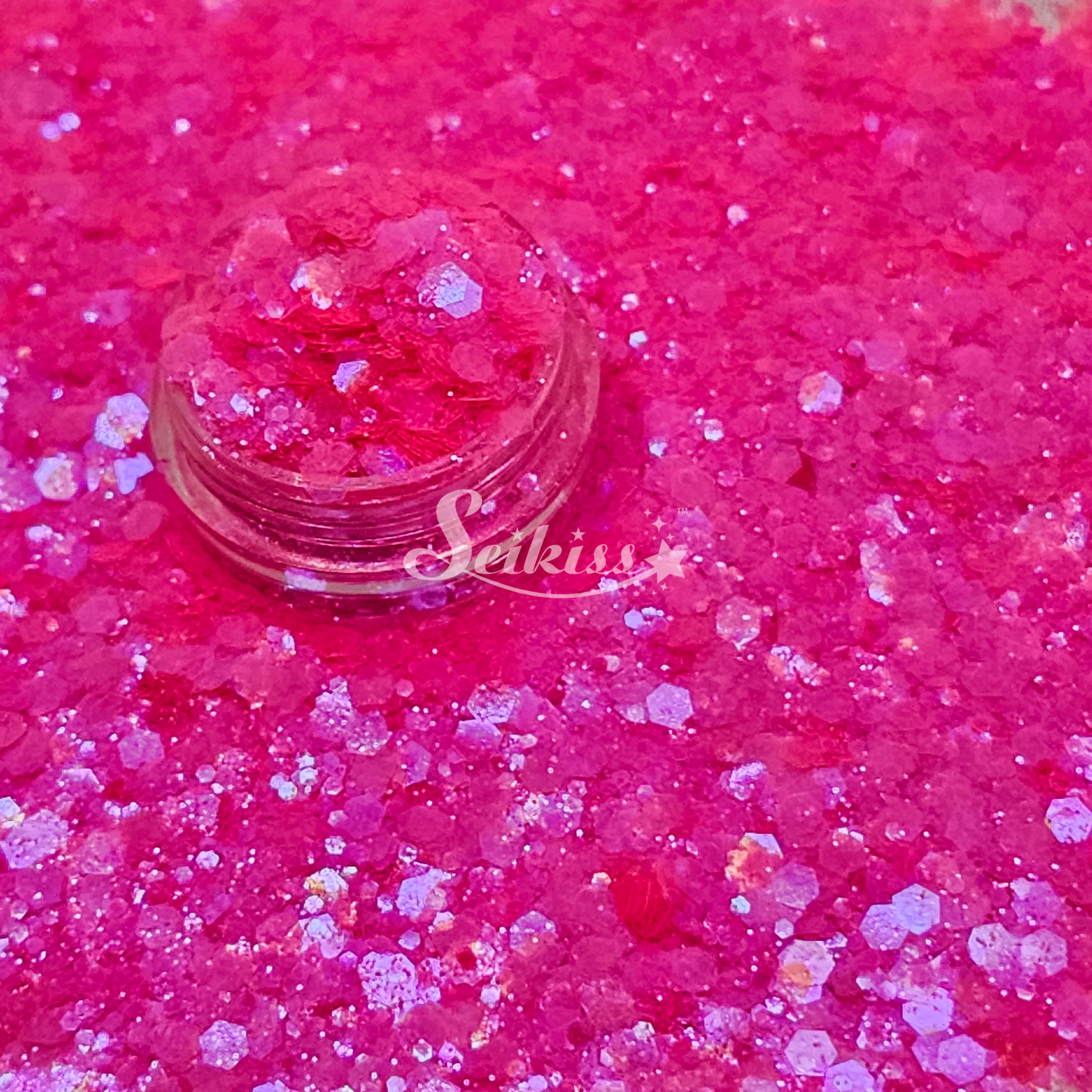 Bright Fuchsia has a colorful chunky mix of sparkle with an iridescent finish.