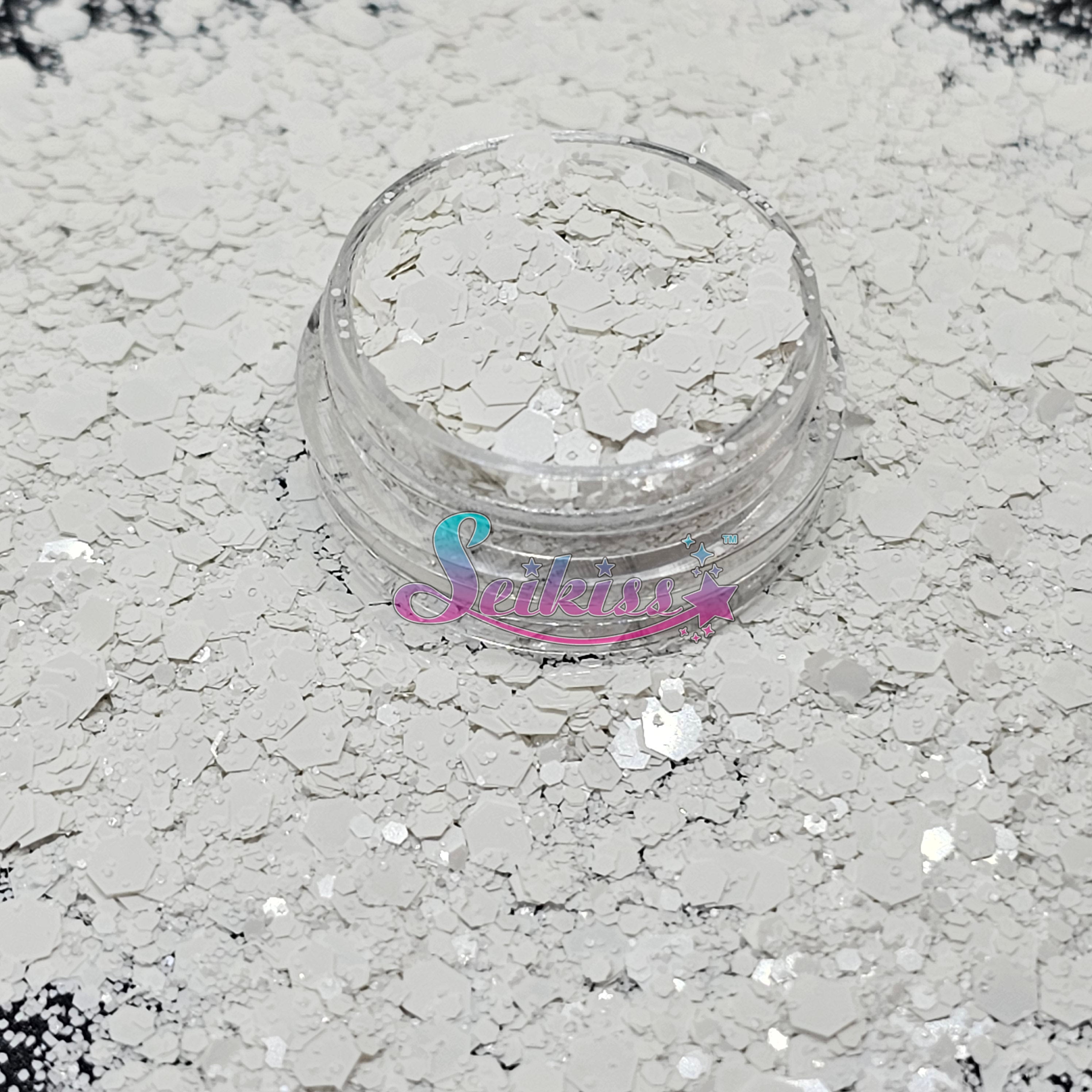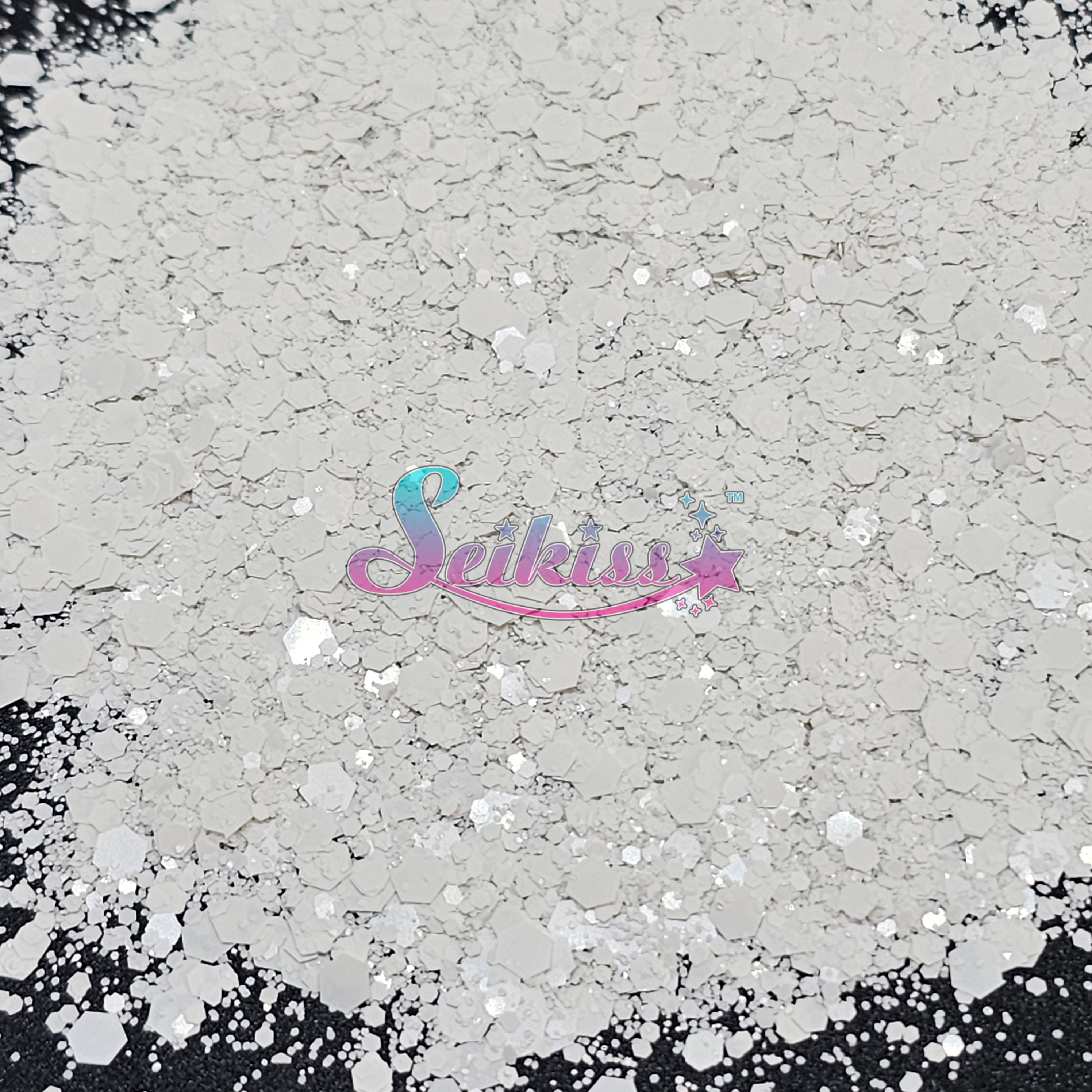 Coco Chunky Glitter Mix features a metallic opal white. Perfect for mixing with other colors and use with resin, nails, tumblers, jewelry, arts, and all types of crafts and projects.