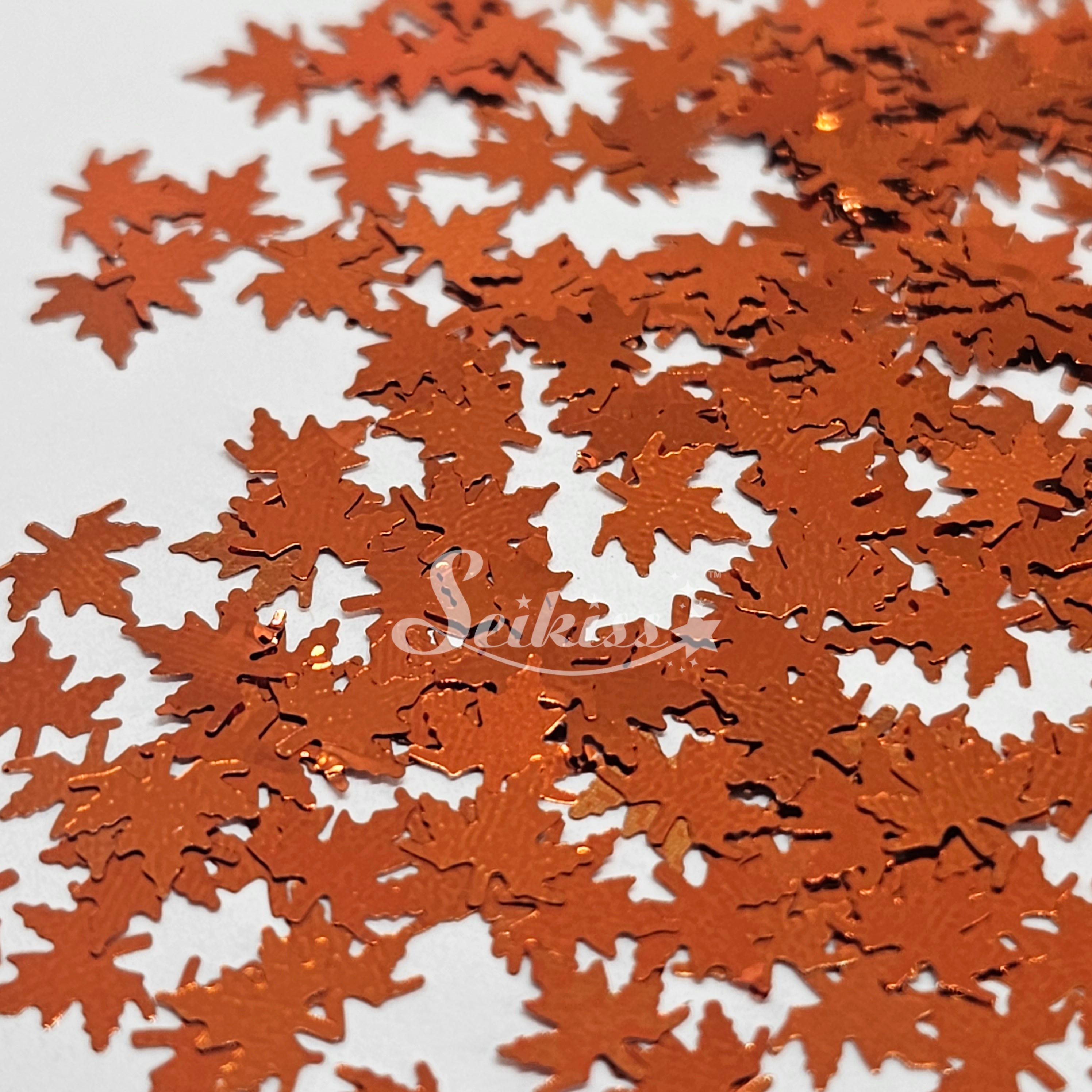 Copper Autumn Leaf shape has a metallic finish with an orange/copper color. This makes your projects shine and is perfect for resin, nails, tumblers, jewelry, arts, and all types of crafts and projects.