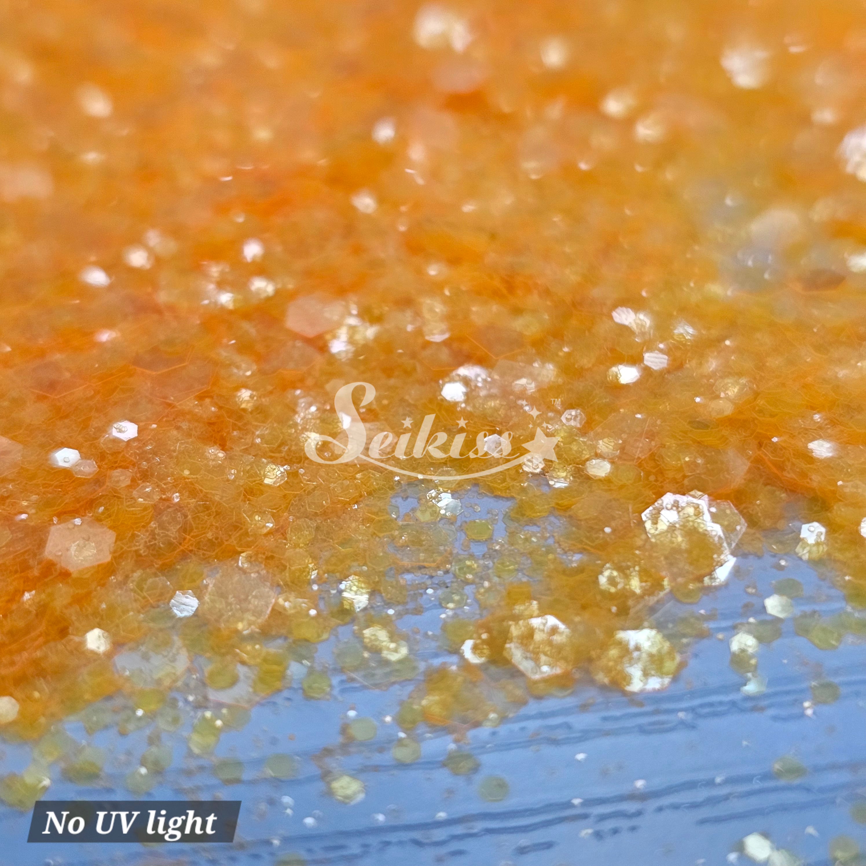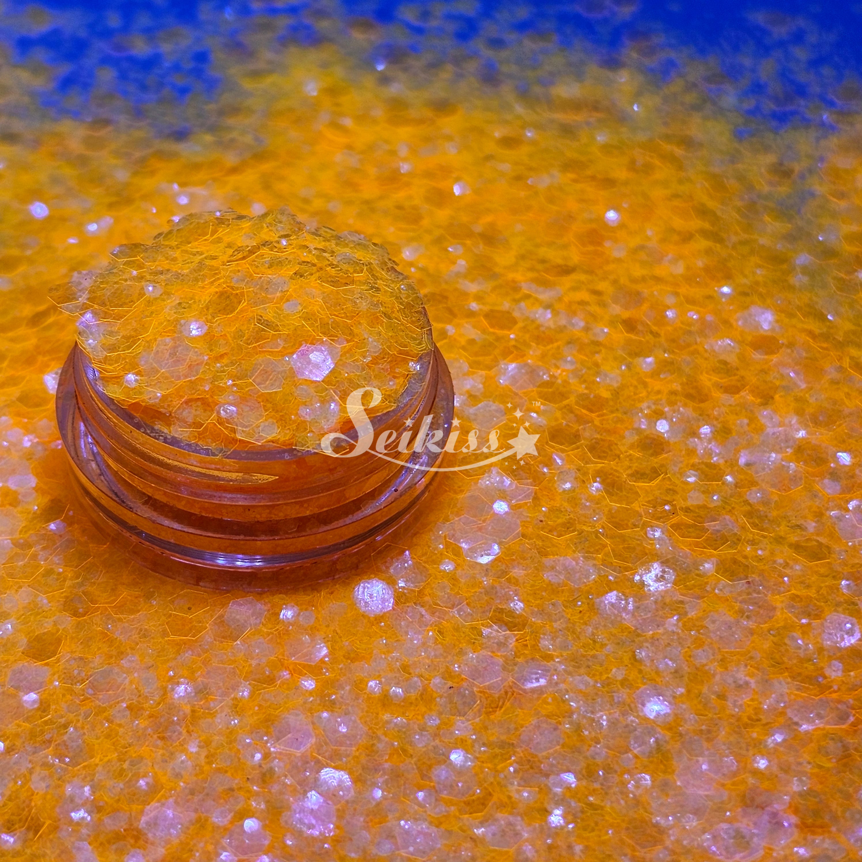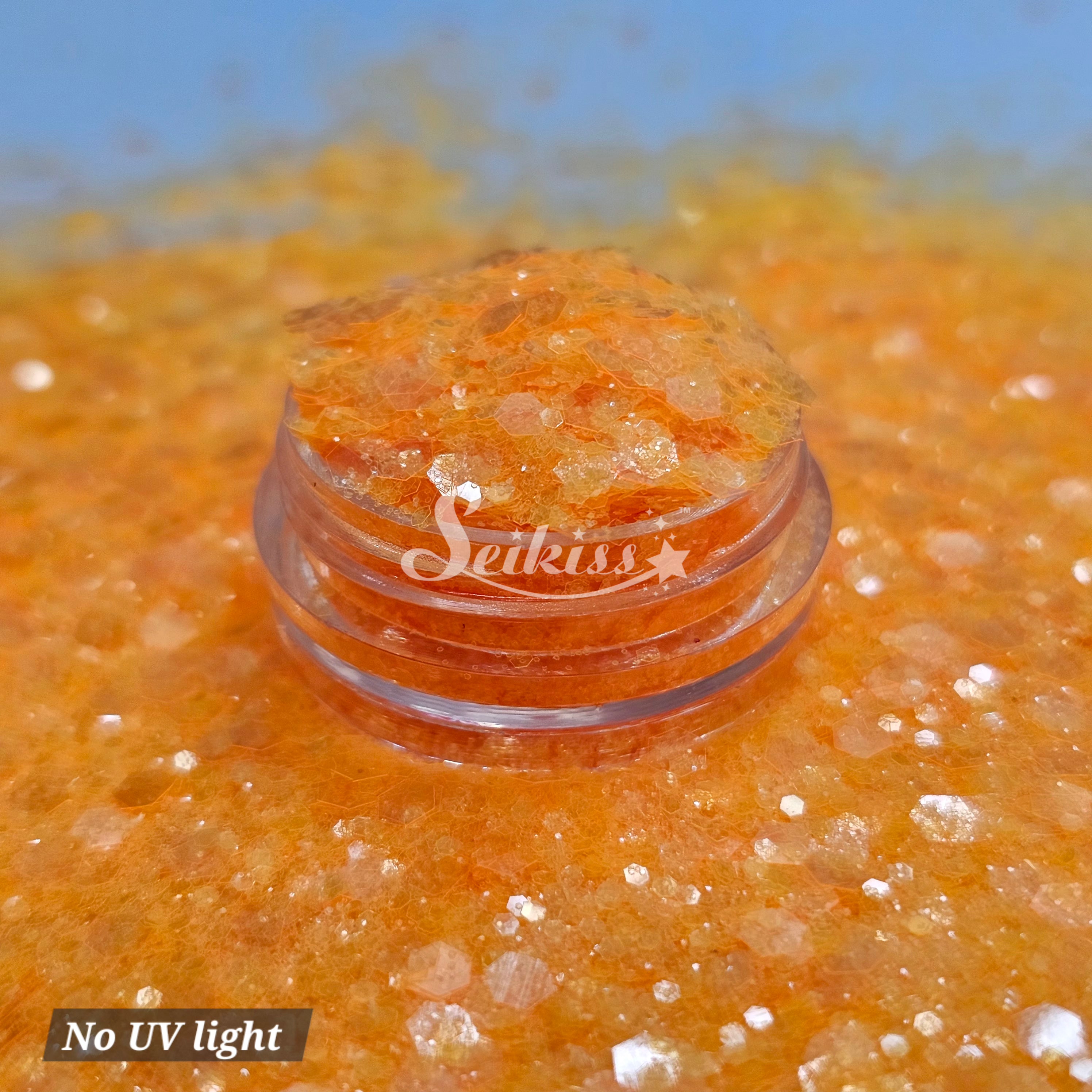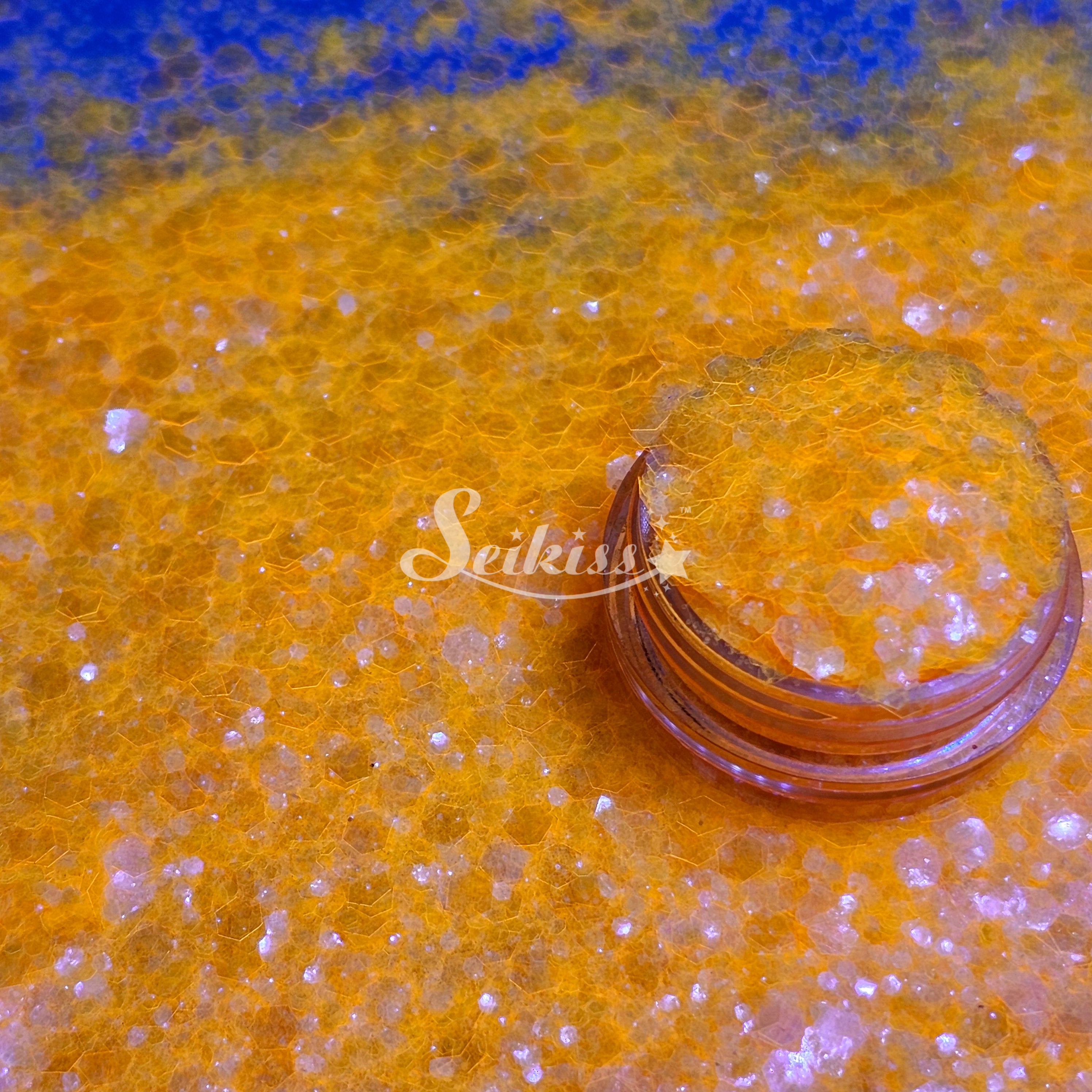 Fluorescent Orange Chunky Glitter brings a dazzling pop of color to any creation with its vibrant hue and shimmering iridescent finish. Under UV light, it glows brilliantly for an eye-catching effect, while in normal light it appears as a classic orange glitter. Perfect for adding a glamorous touch to nails, resin art, tumblers, jewelry, and all your favorite craft projects.