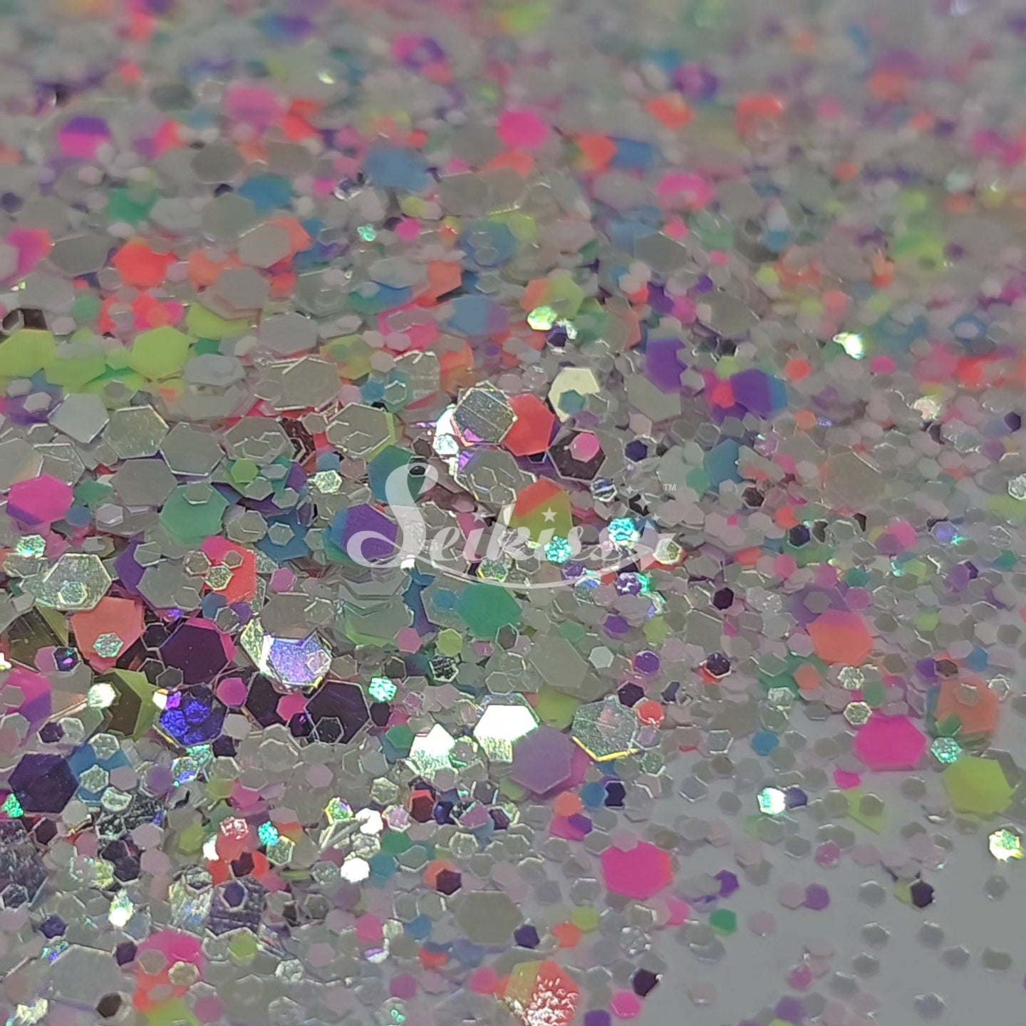 Disco Dance Chunky Glitter is a mix ready to party with its vibrant colors and mirror like sparkles adding a stunning visual effect to your artwork. This makes your projects shine and is perfect for resin, nails, tumblers, jewelry, arts, and all types of crafts and projects.