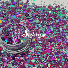 Diva has a colorful chunky mix of purple and turquoise sparkle, adding a stunning visual effect to your artwork with its realistic holographic finish. This makes your projects shine and is perfect for resin, nails, tumblers, jewelry, arts, and all types of crafts and projects.
