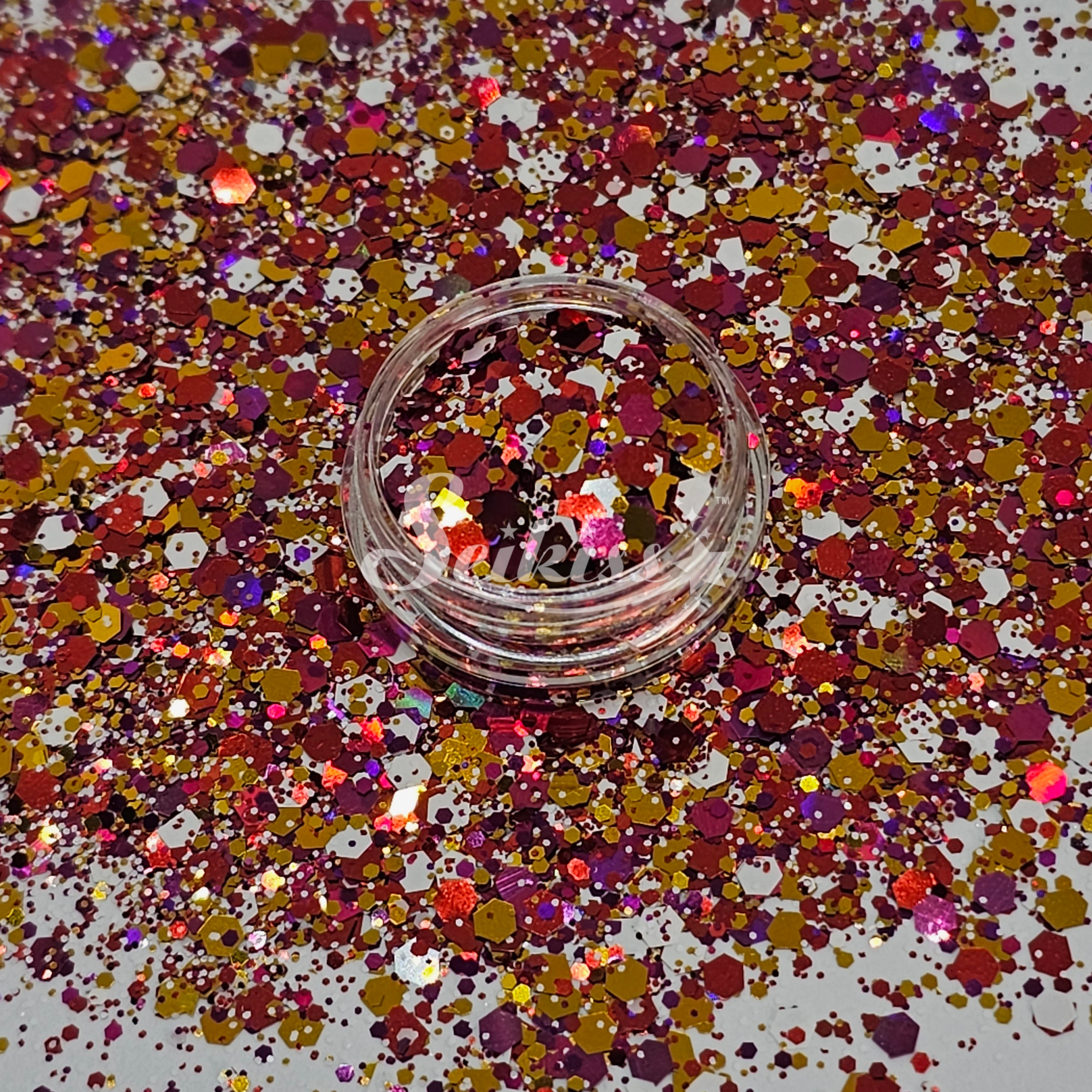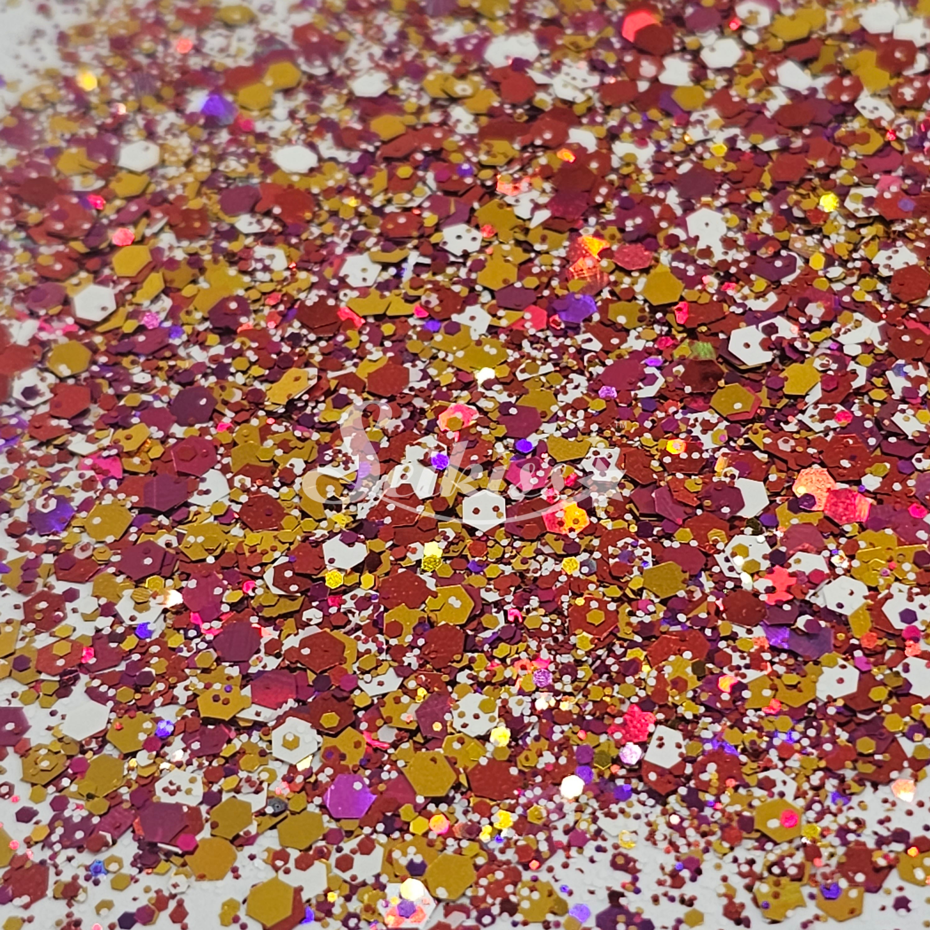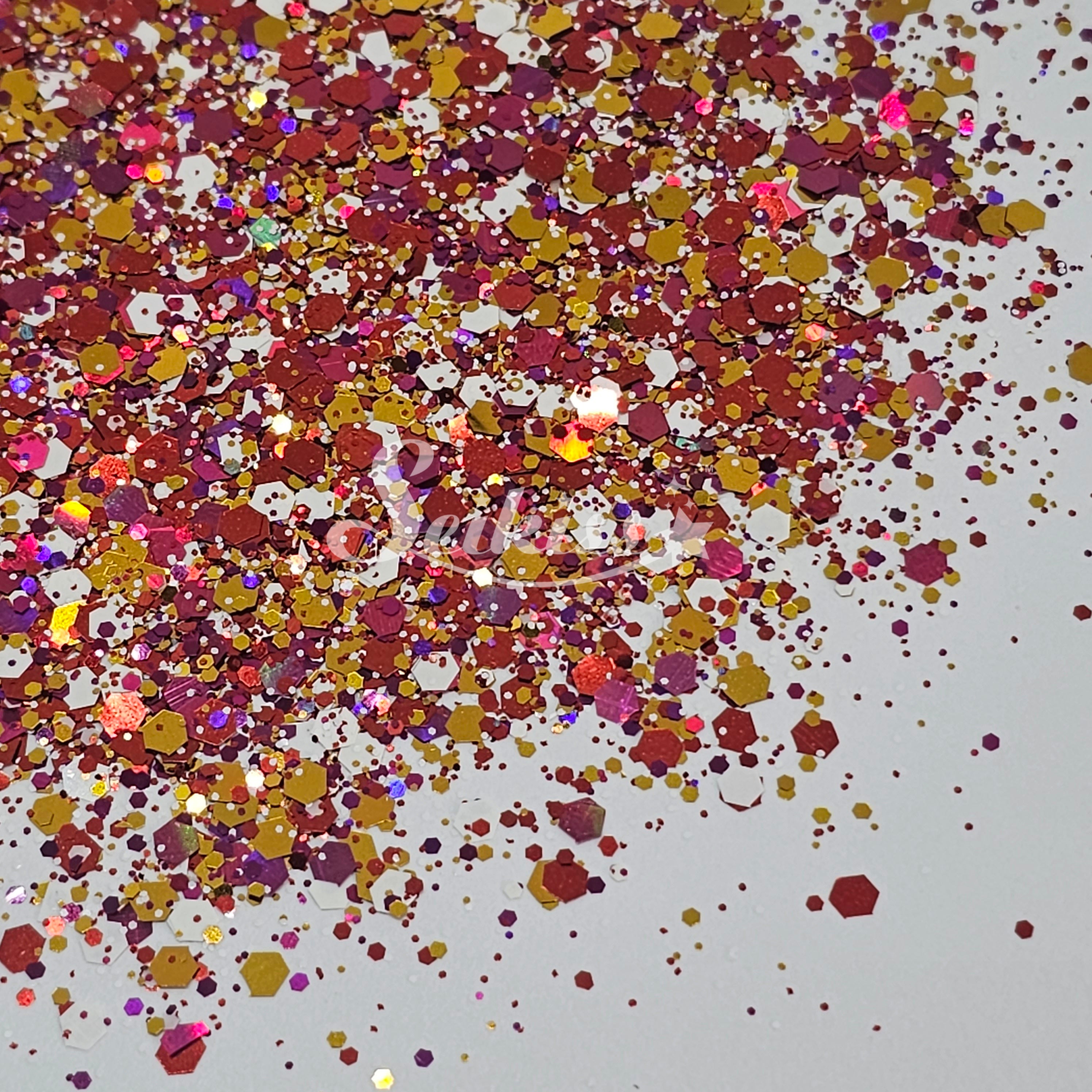 Electric City is a metallic chunky mix of gold, white, and holographic copper adding a stunning visual effect to your artwork. This makes your projects shine and is perfect for resin, nails, tumblers, jewelry, arts, and all types of crafts and projects.
