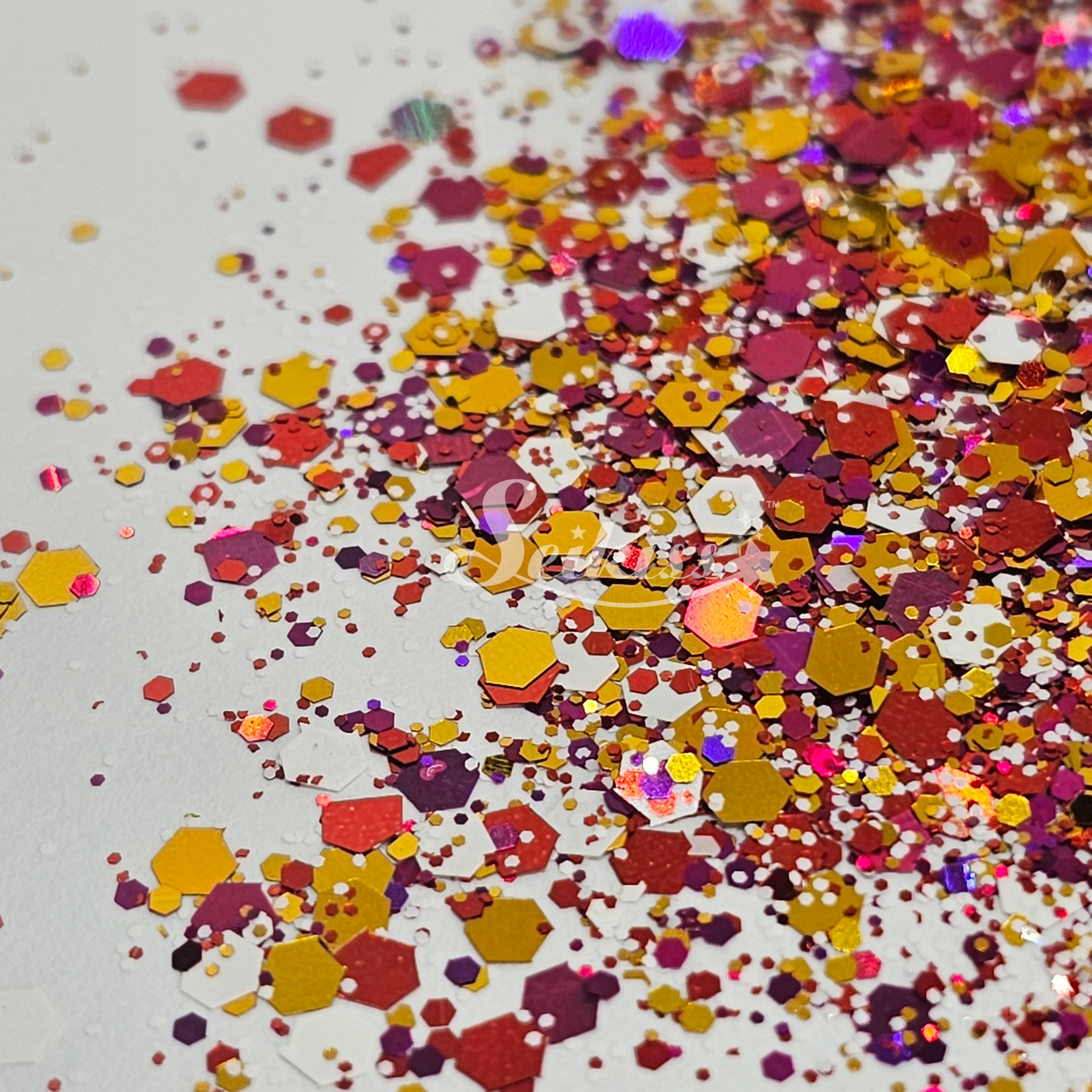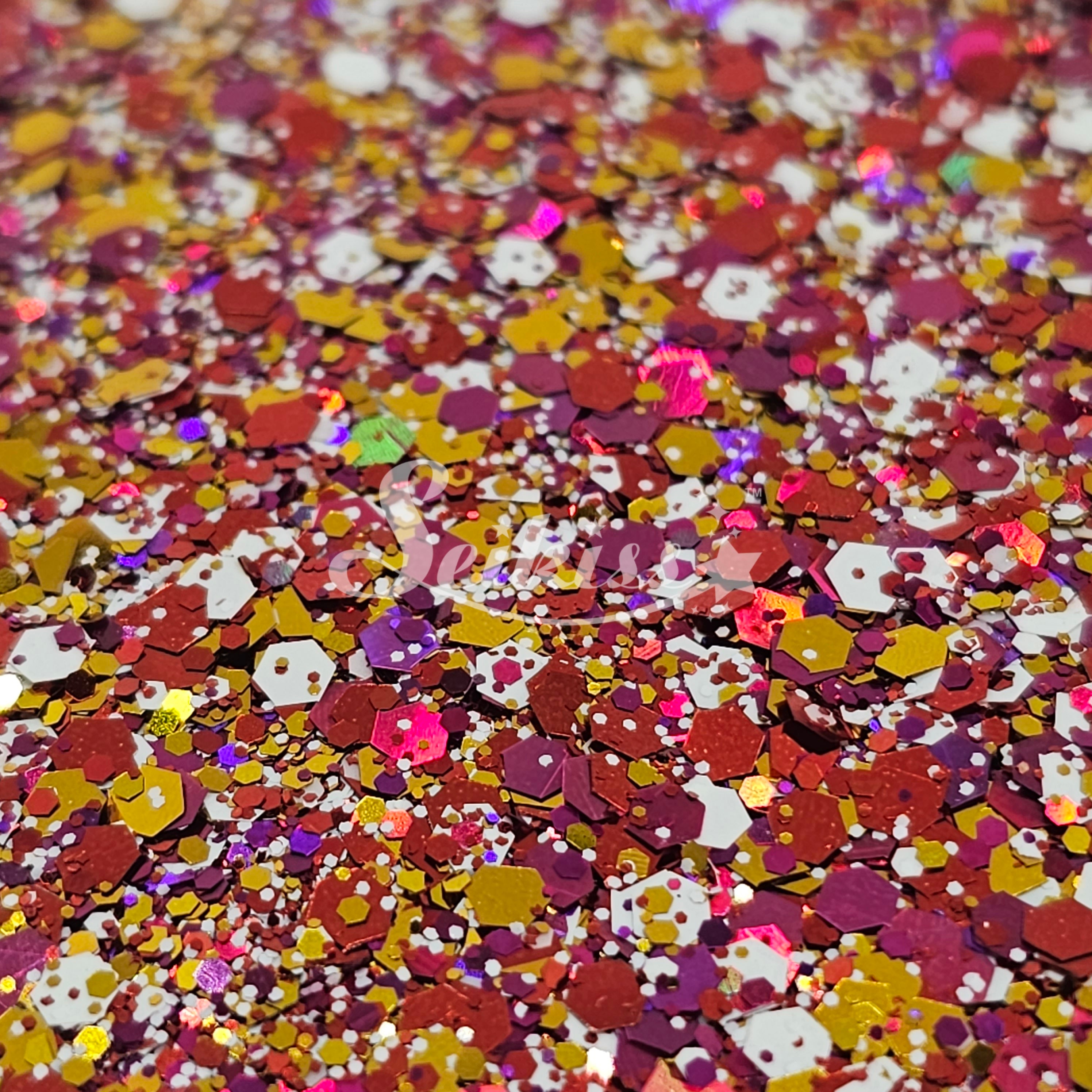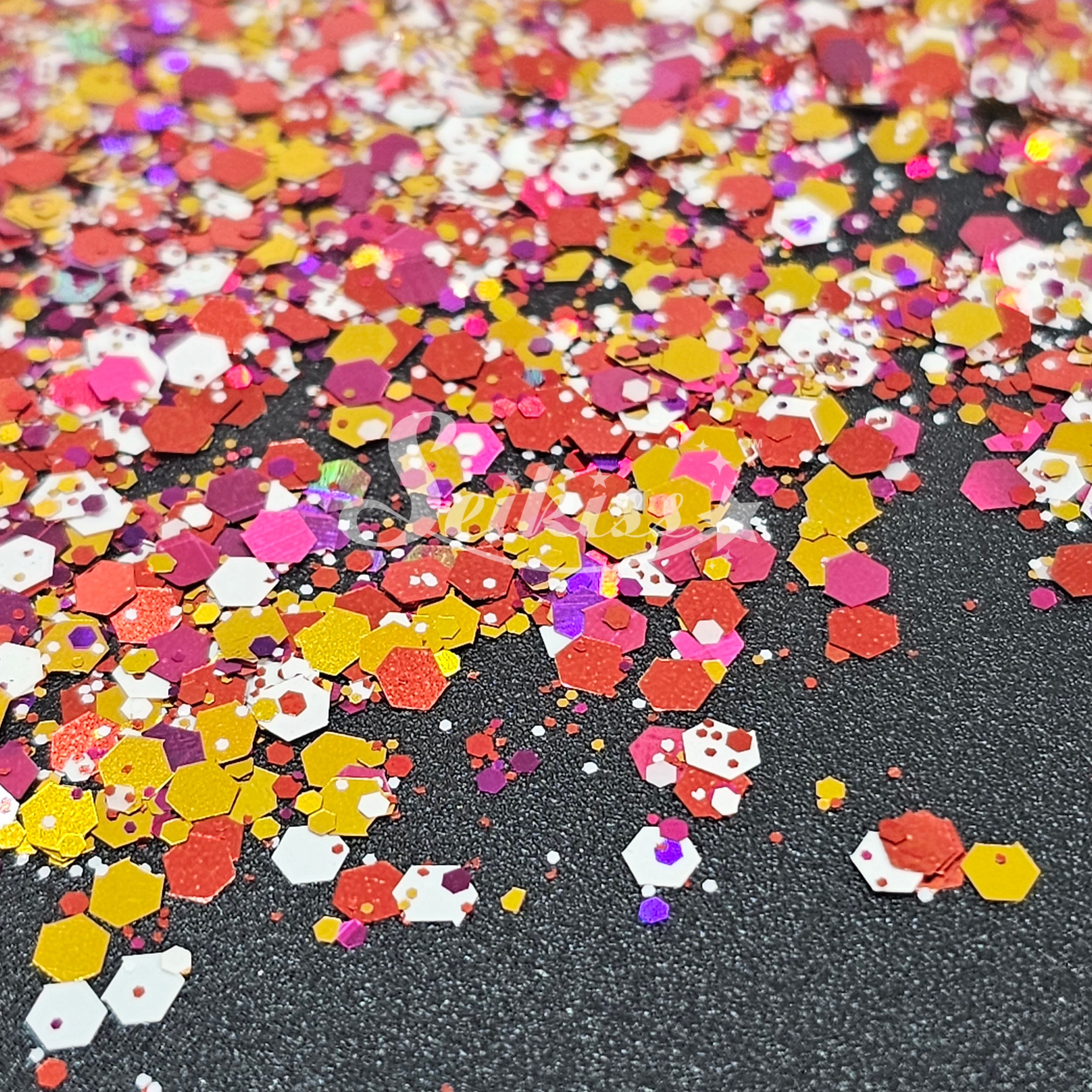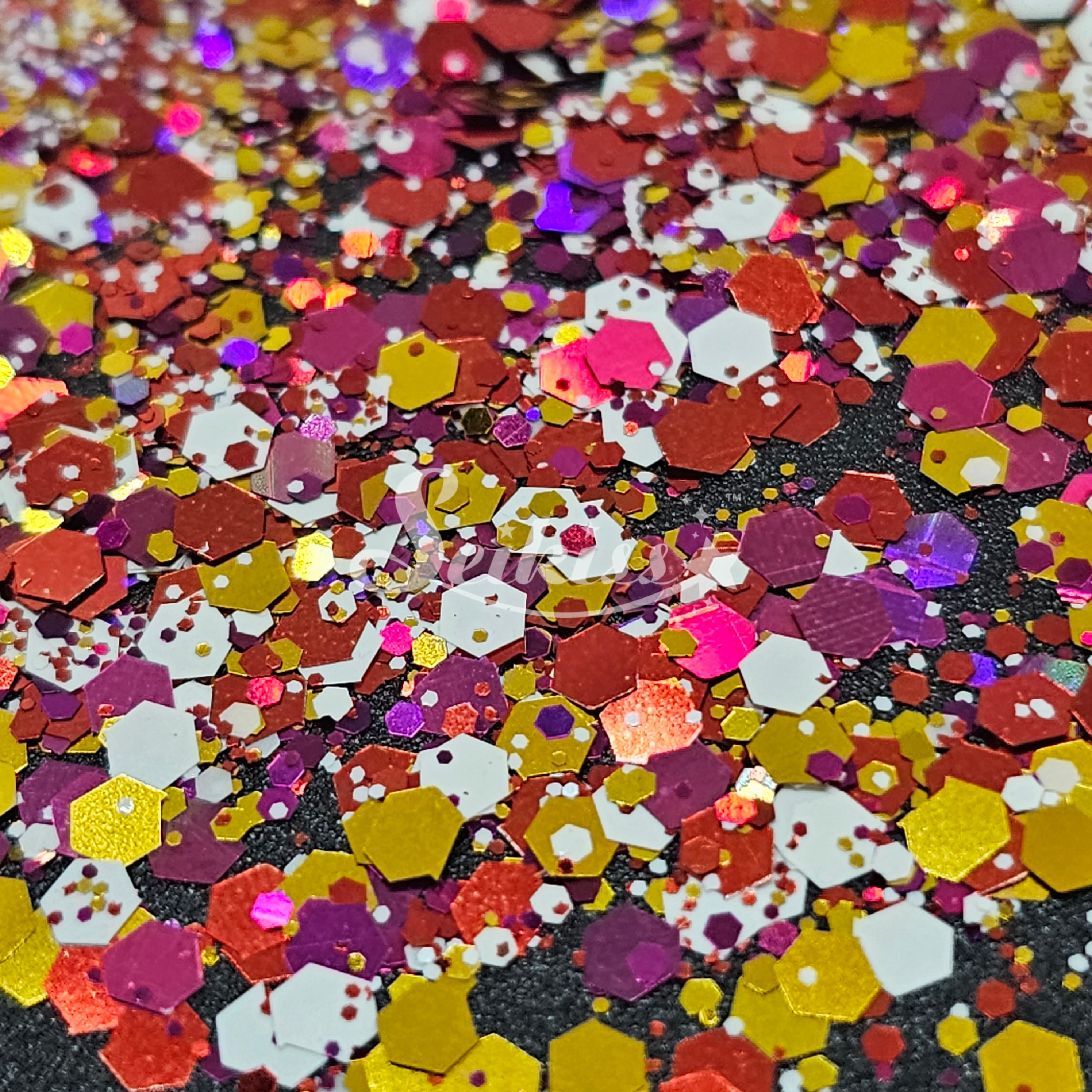 Electric City is a metallic chunky mix of gold, white, and holographic copper adding a stunning visual effect to your artwork. This makes your projects shine and is perfect for resin, nails, tumblers, jewelry, arts, and all types of crafts and projects.