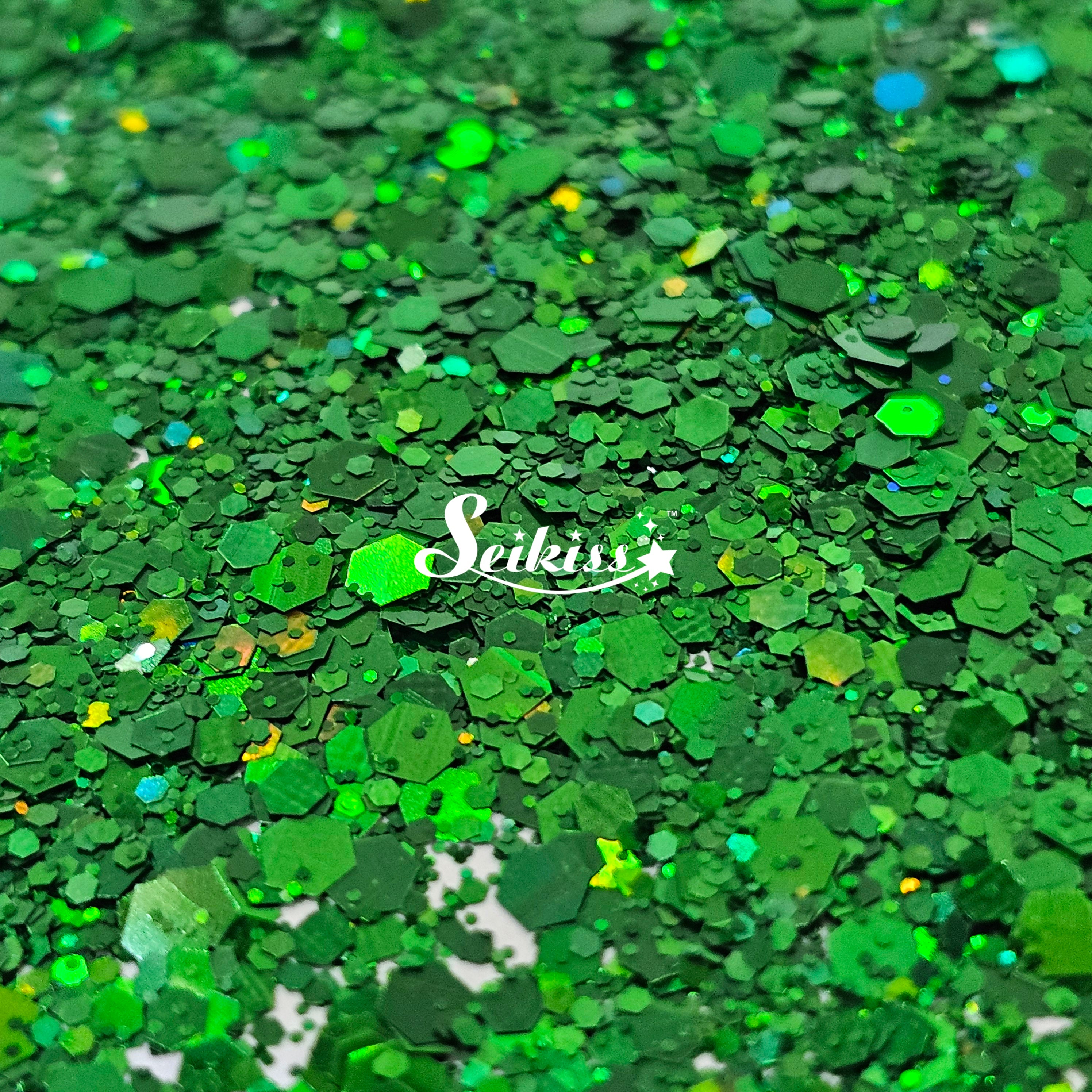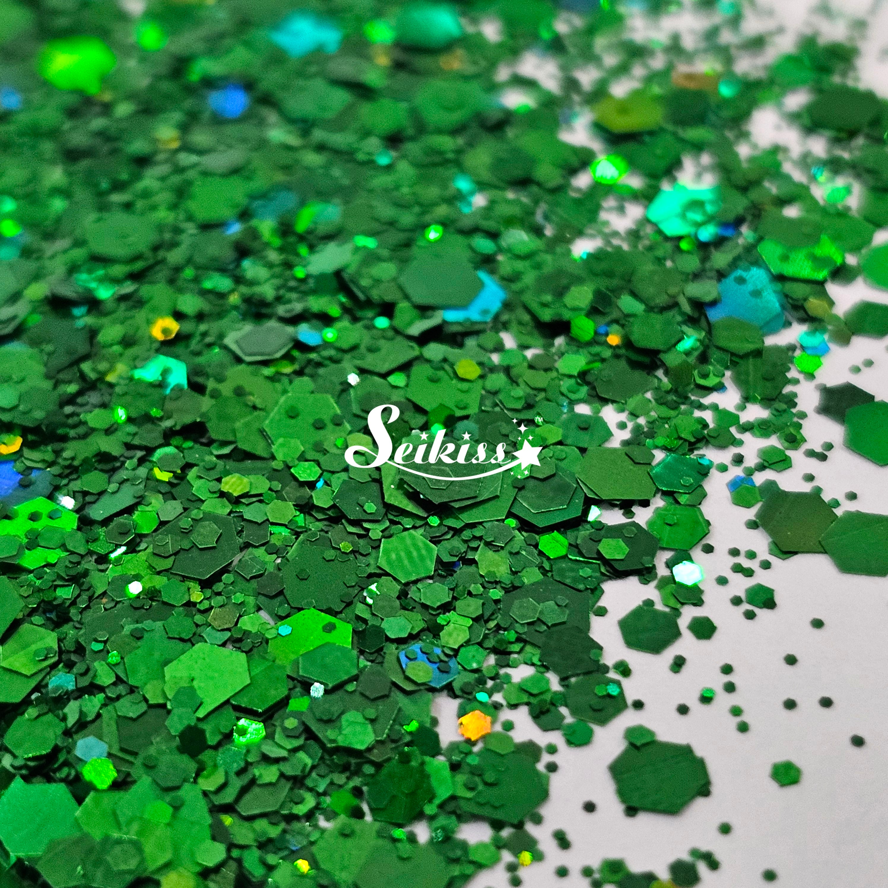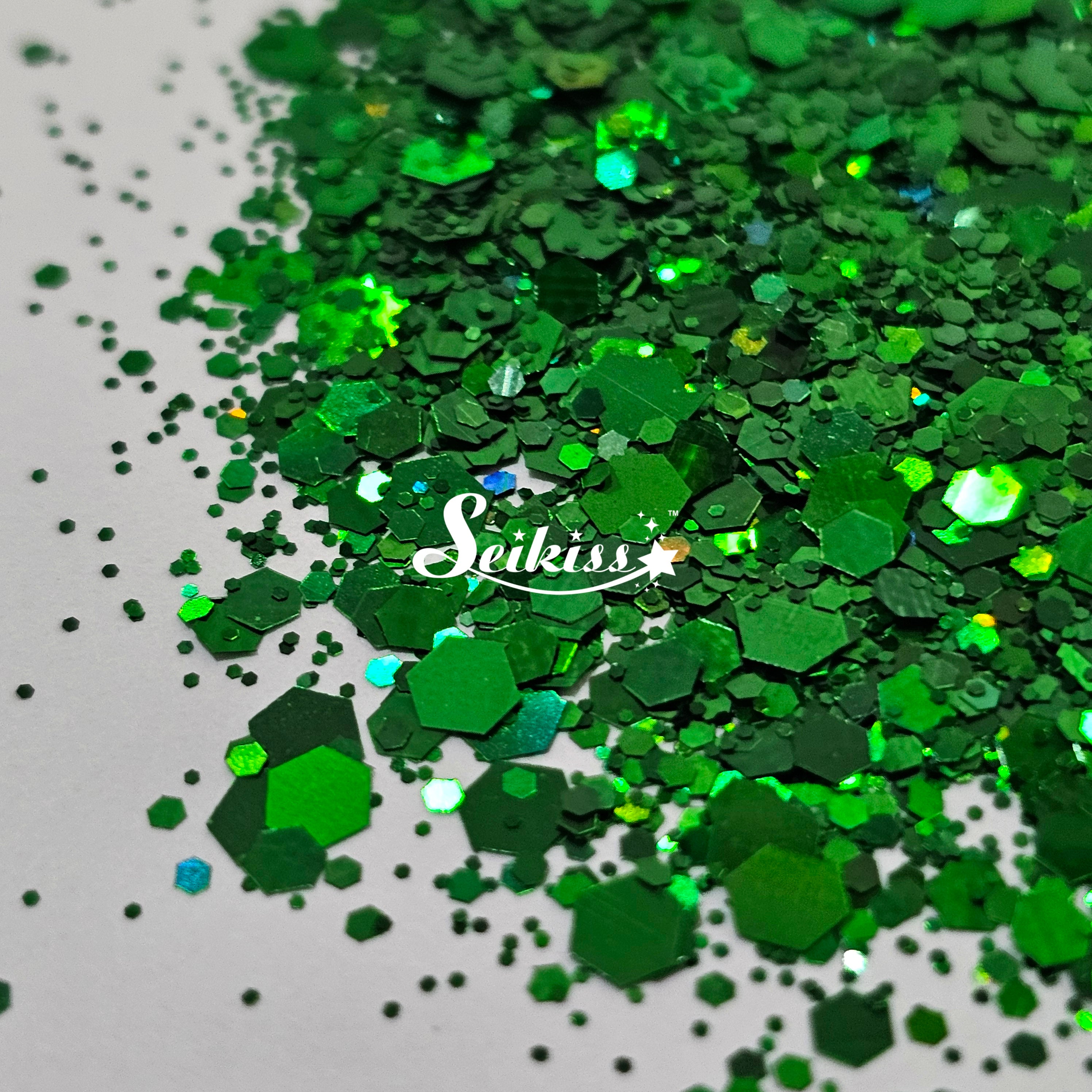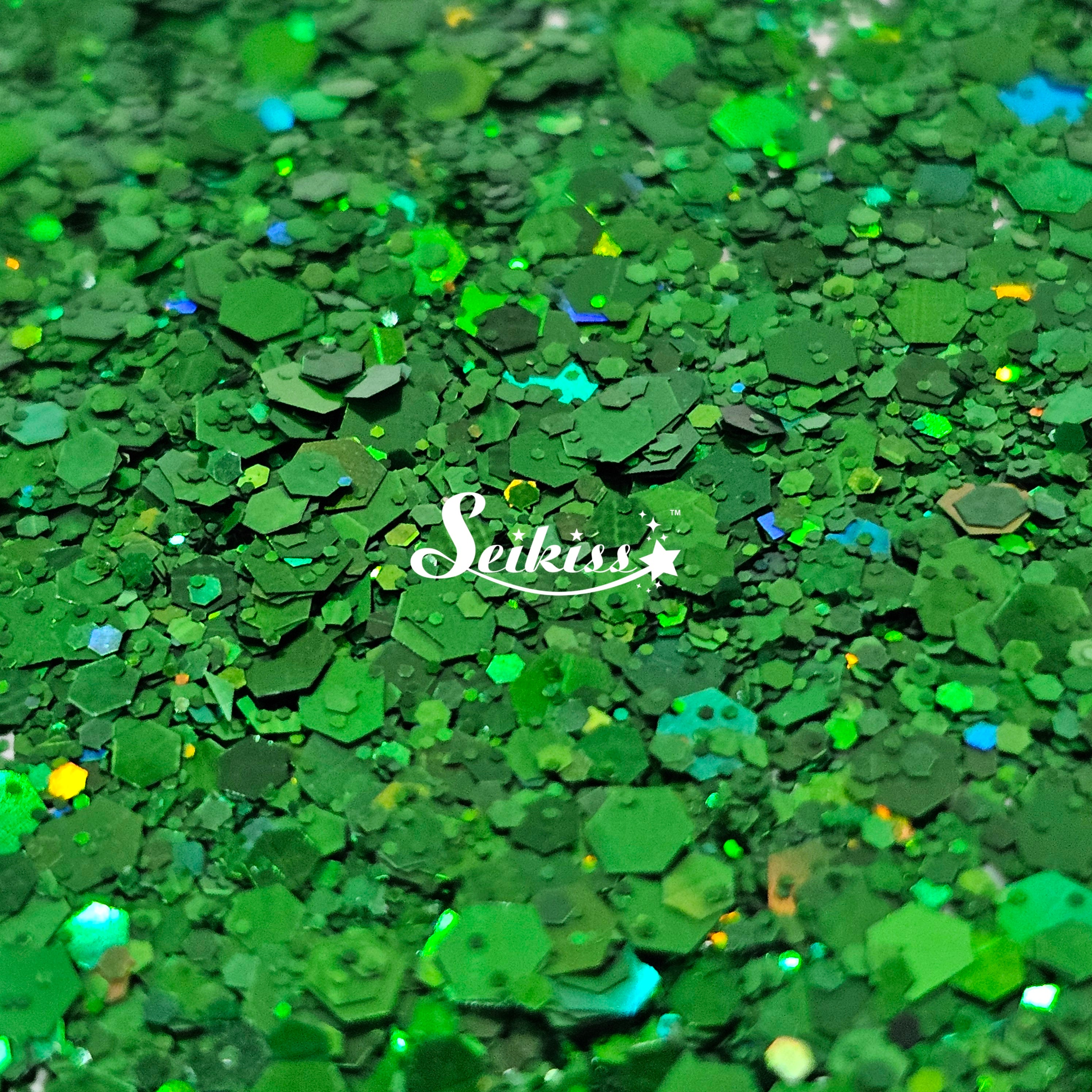 Emerald Galaxy has a colorful chunky mix of vibrant green adding a stunning visual effect to your artwork with its realistic holographic finish. This makes your projects shine and is perfect for resin, nails, tumblers, jewelry, arts, and all types of crafts and projects.