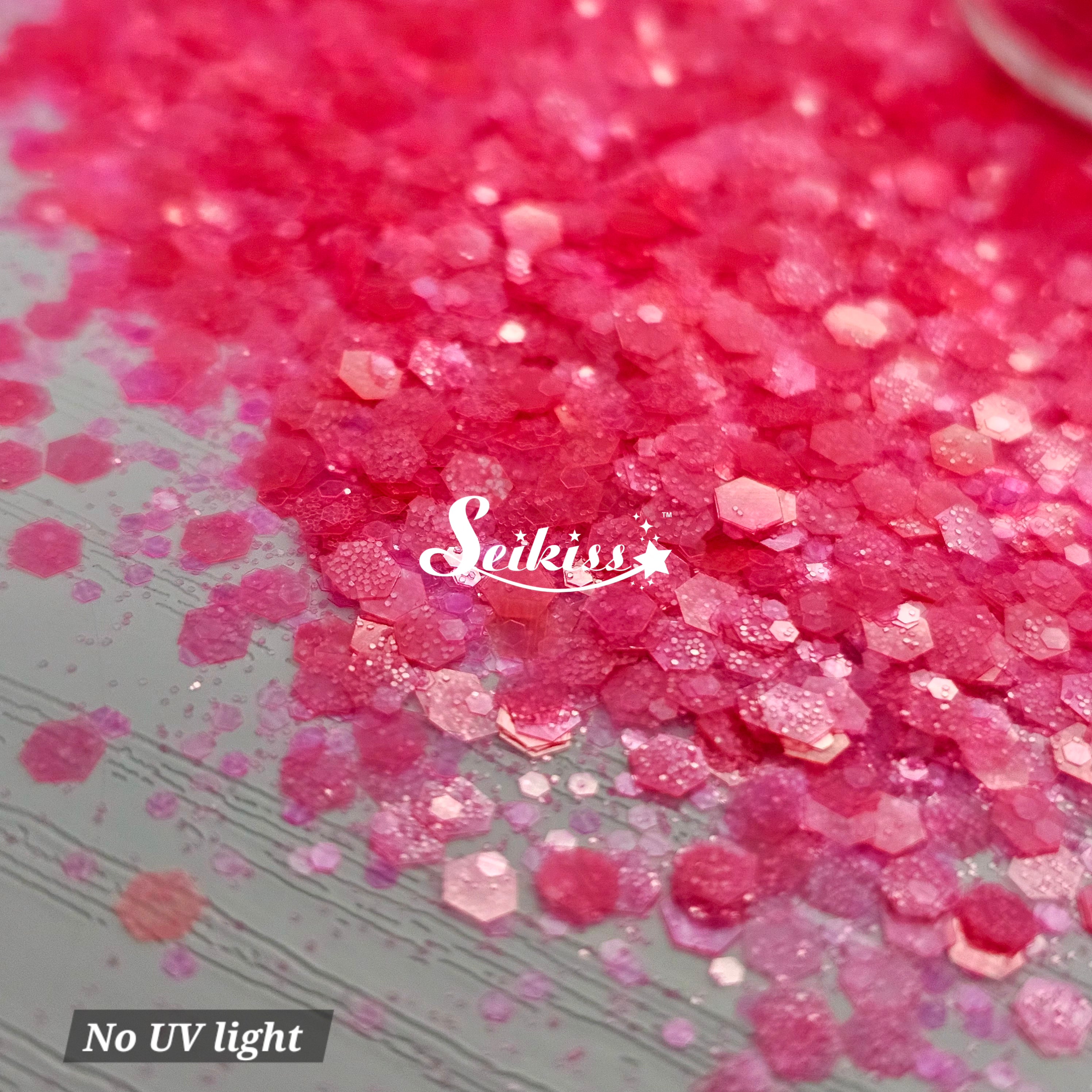 Fluorescent Magenta Chunky Glitter brings a dazzling pop of color to any creation with its shimmering iridescent finish. Under UV light, it glows brilliantly for an eye-catching effect, while in normal light it appears as a soft fuchsia color. Perfect for adding a glamorous touch to nails, resin art, tumblers, jewelry, and all your favorite craft projects.