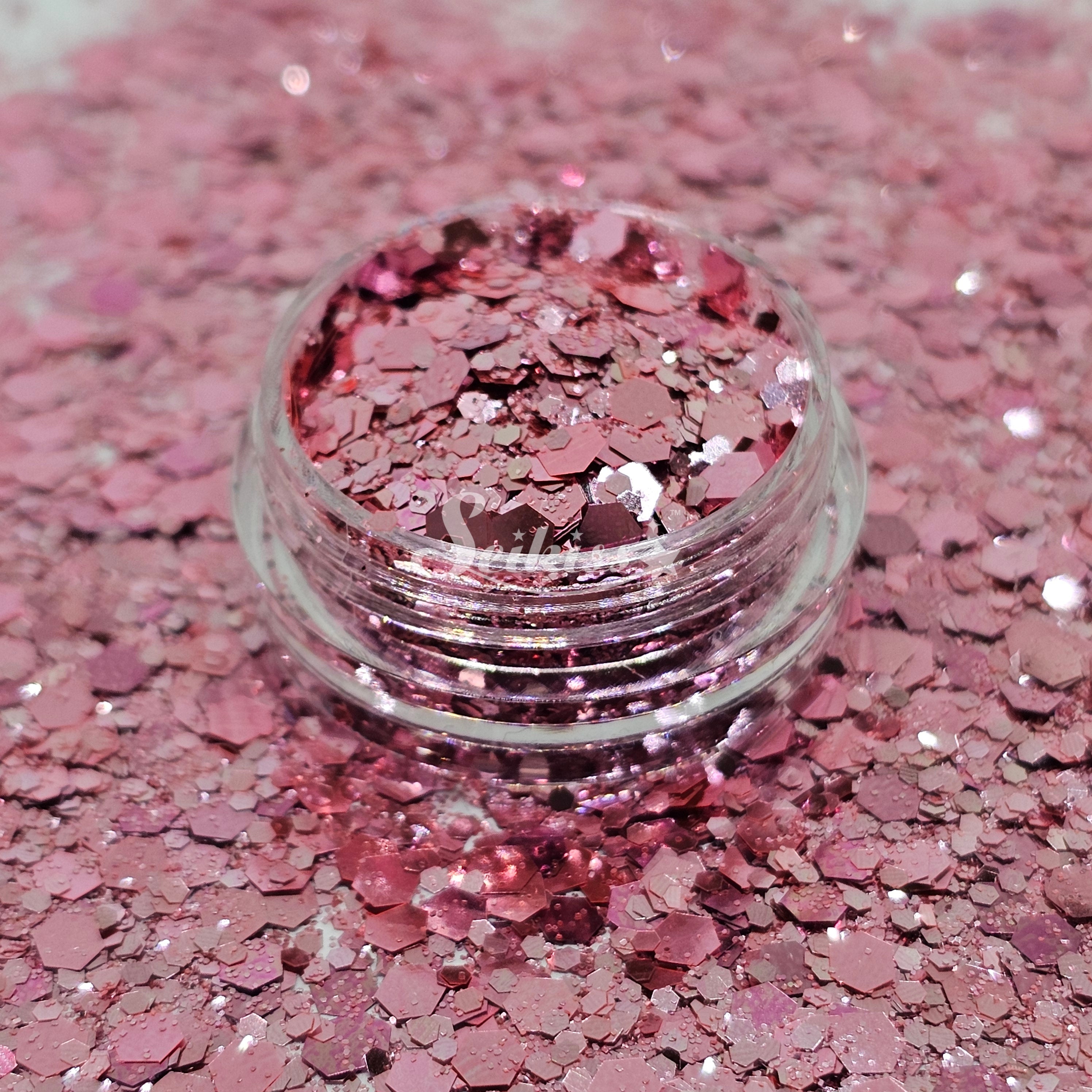 French Rose Chunky Glitter mix features a beautiful metallic pink, perfect for resin, nails, tumblers, jewelry, arts, and all types of crafts and projects.