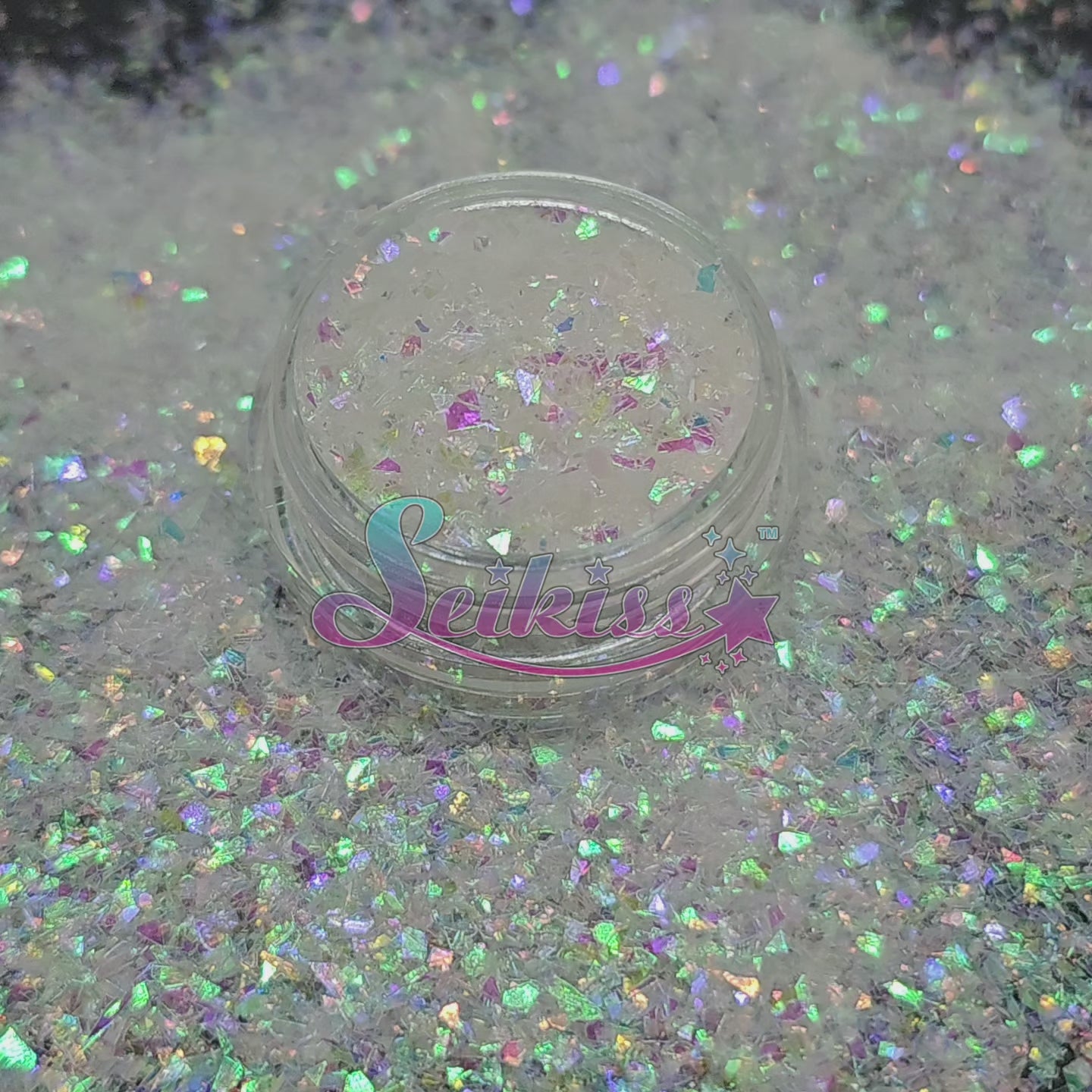 Frosty Flakes are a small frost white flakes with a lovely iridescent finish. This makes your projects shine and is perfect for nails, resin, tumblers, jewelry, arts, and all types of crafts and projects.