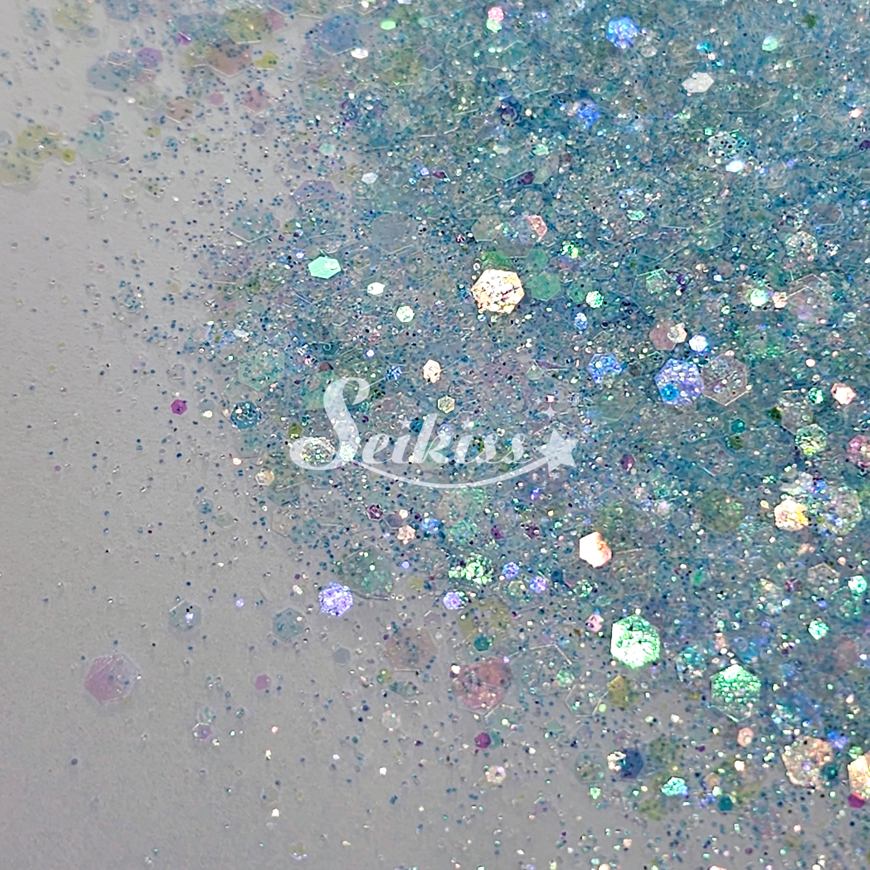 Glacier is a chunky mix of soft blue with high iridescent finish. This makes your projects sparkle and is perfect for resin, nails, tumblers, jewelry, arts, and all types of crafts and projects.