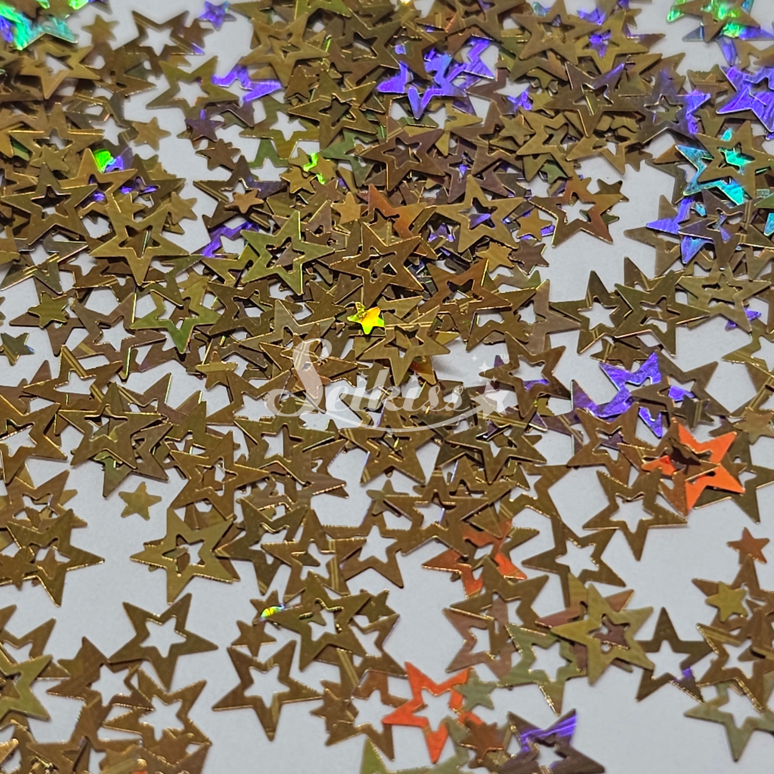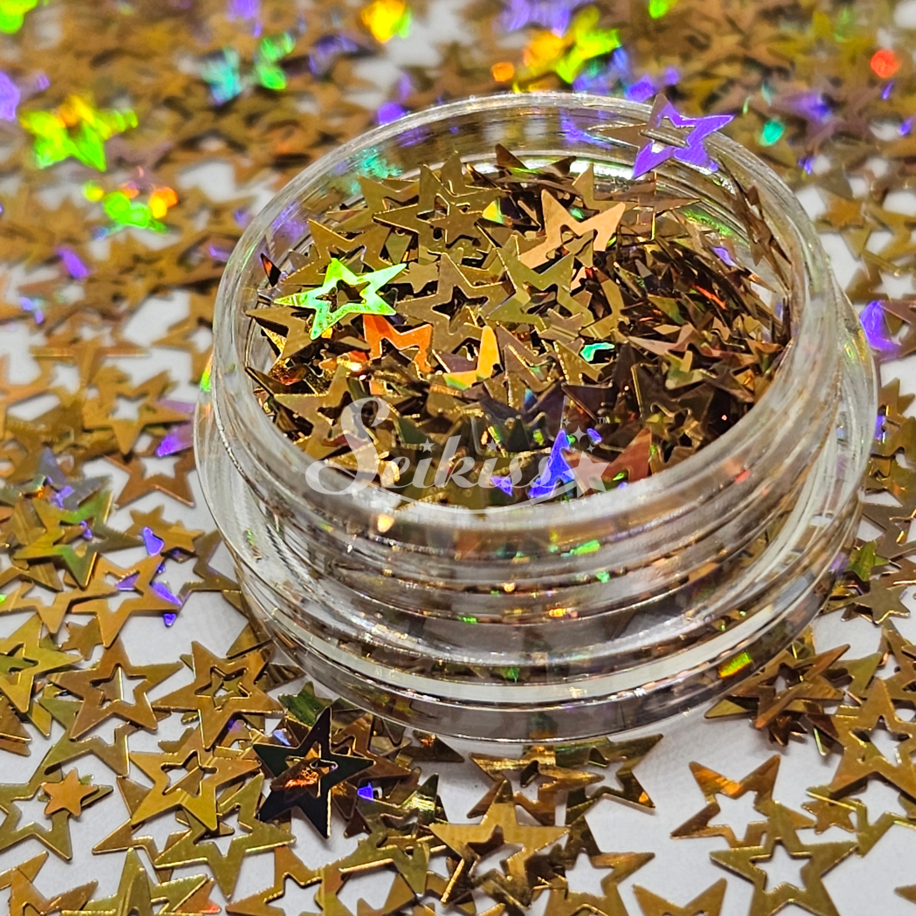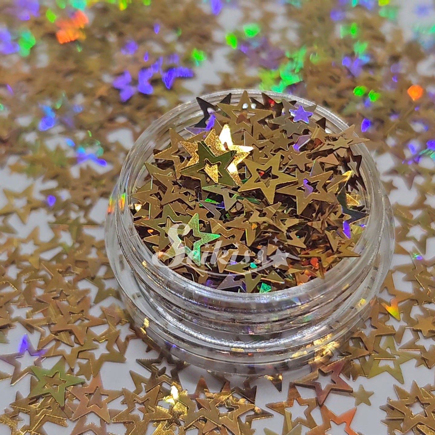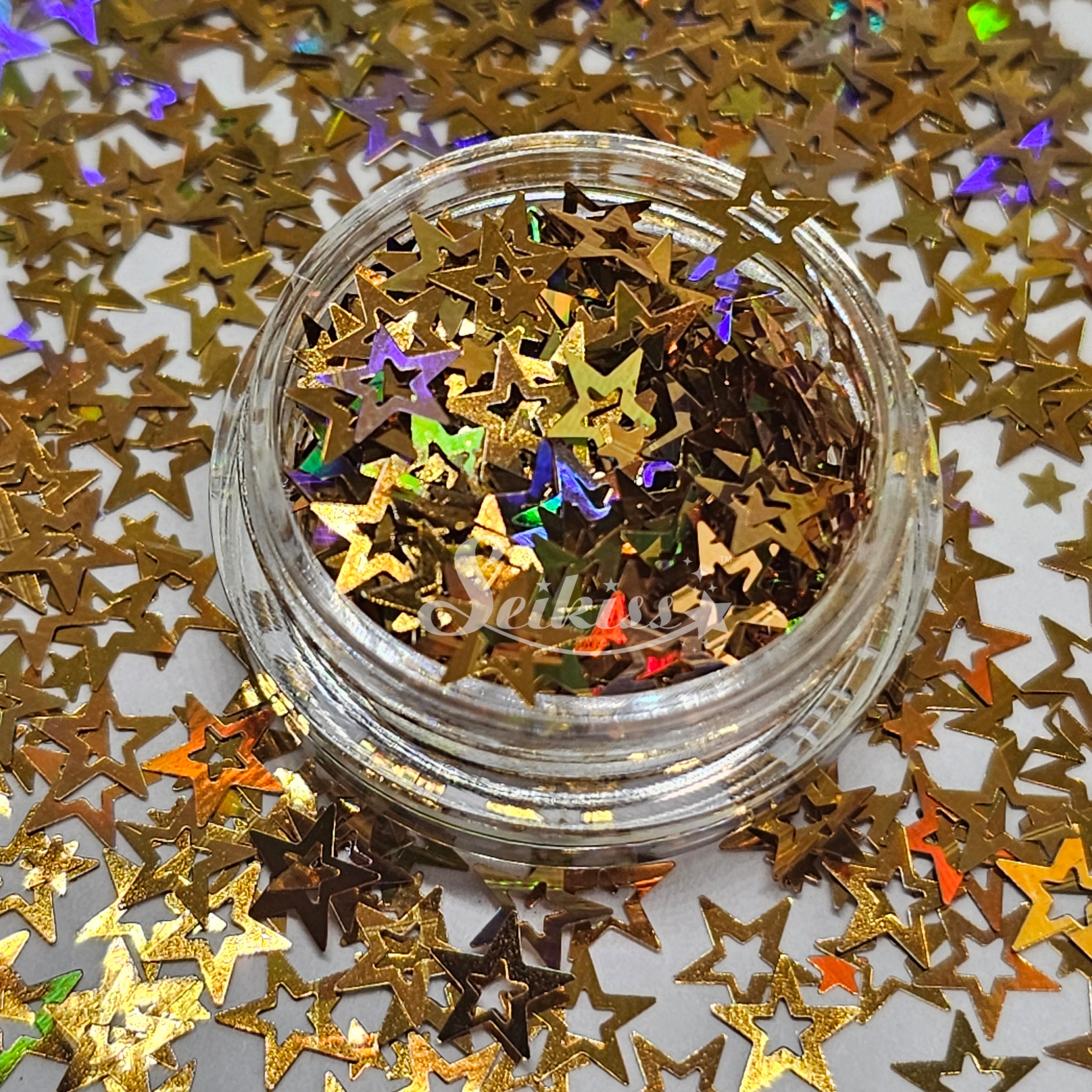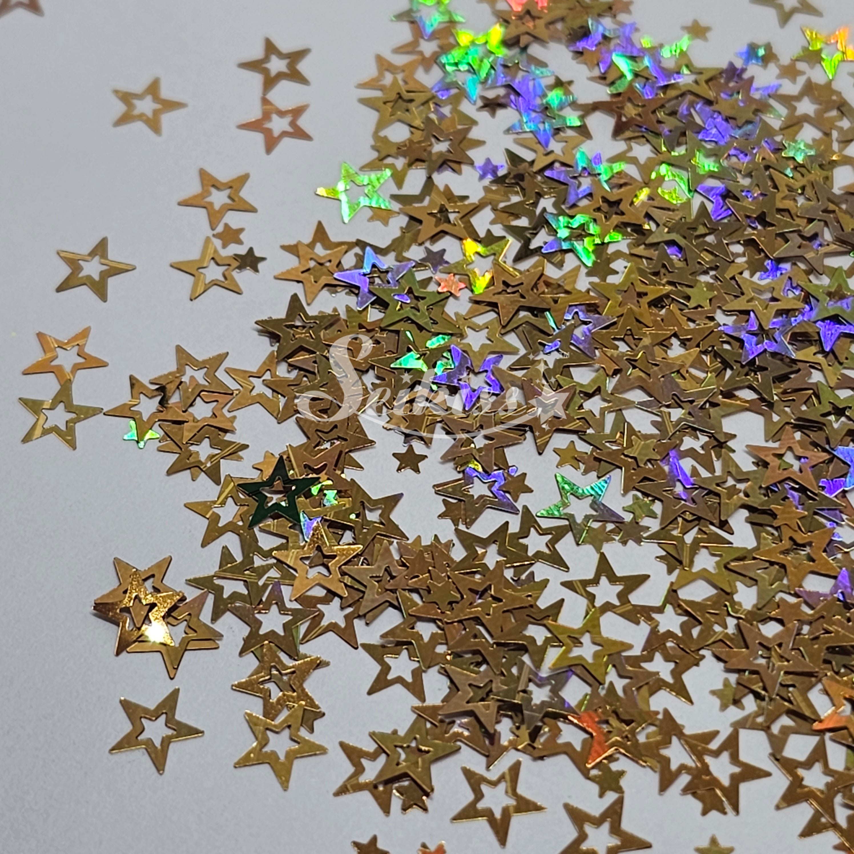 Gold Retro Stars is a mix of gold star shapes with a holographic finish. This makes your projects shine and is perfect for resin, nails, tumblers, jewelry, arts, and all types of crafts and projects.
