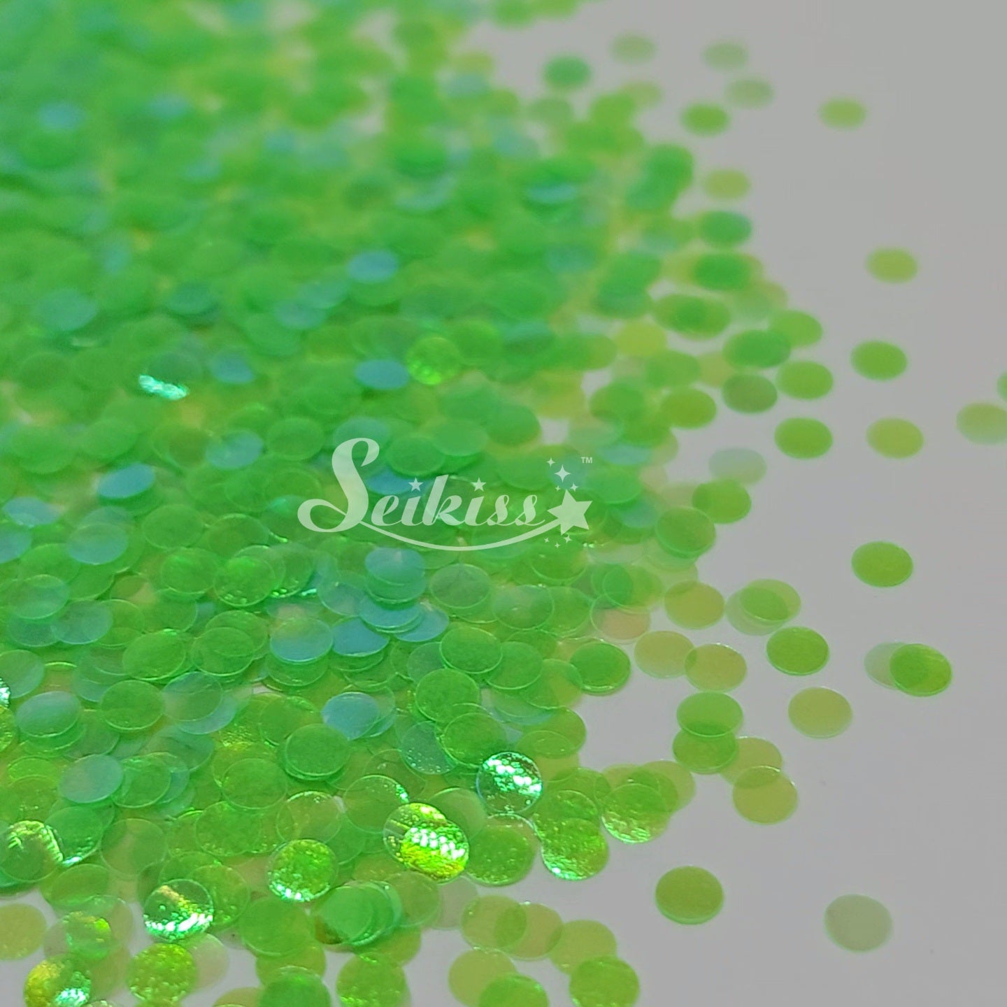 Green Caviar Dot Shapes glitter has an iridescent finish and a vibrant green color. This makes your projects shine and is perfect for resin, nails, tumblers, jewelry, arts, and all types of crafts and projects.