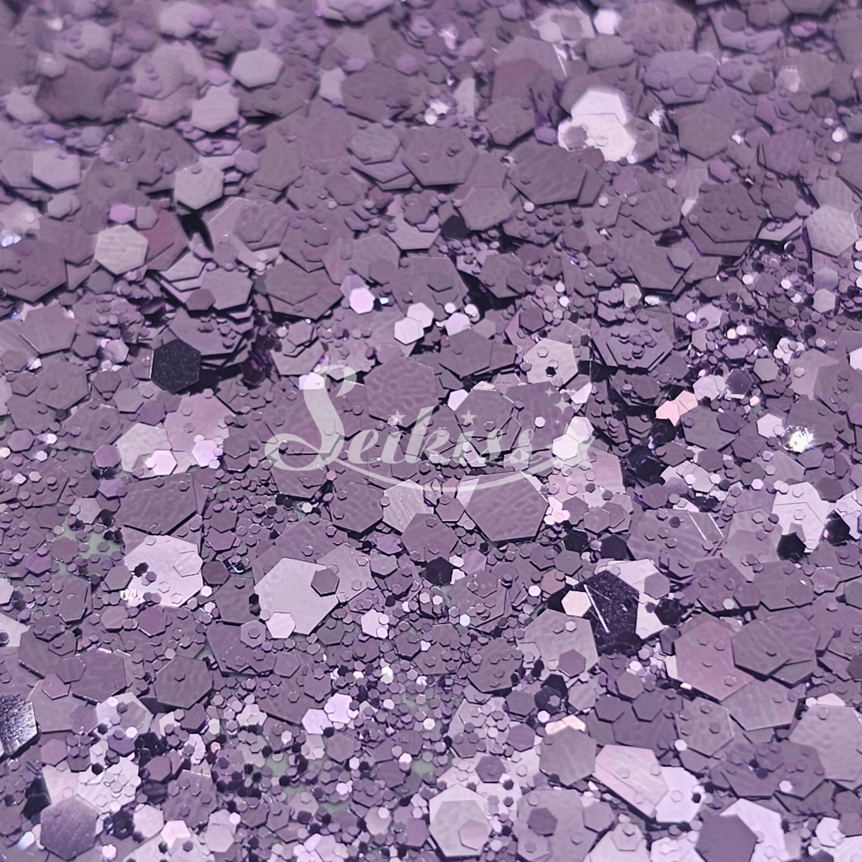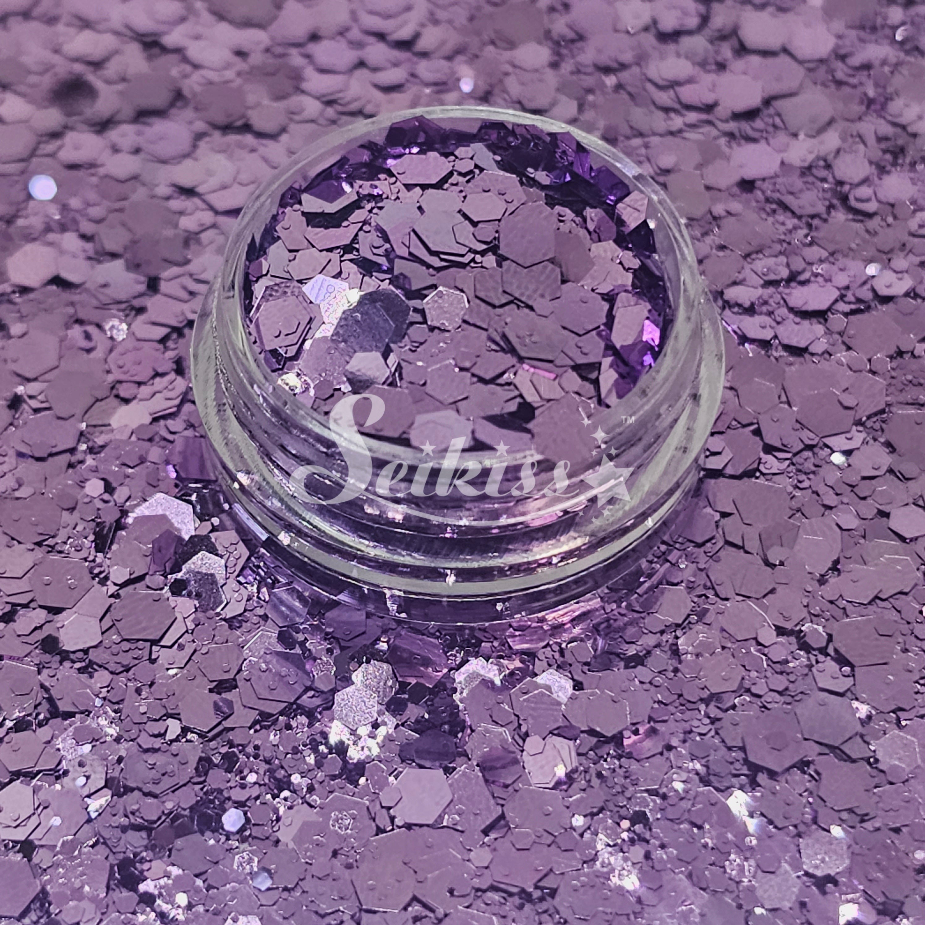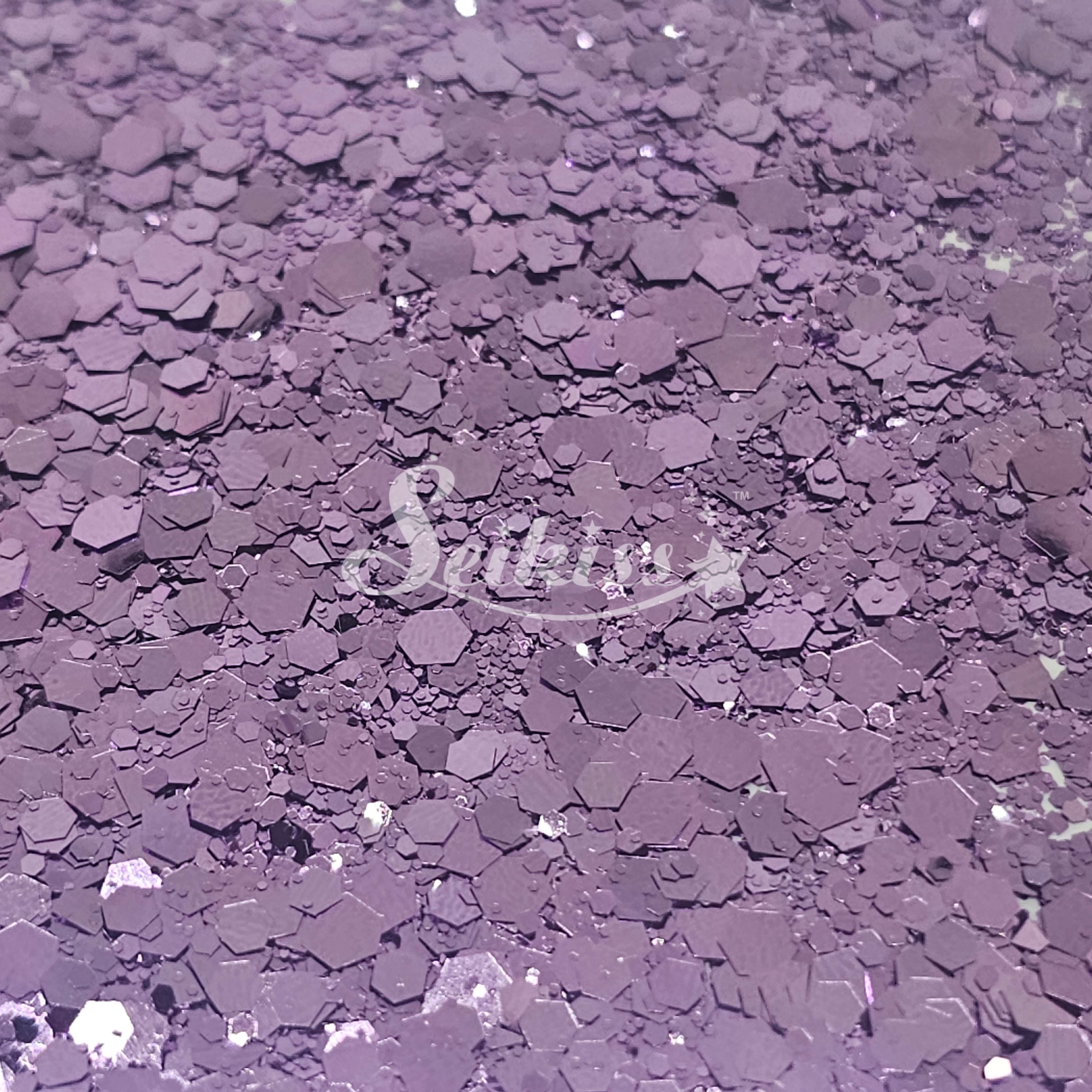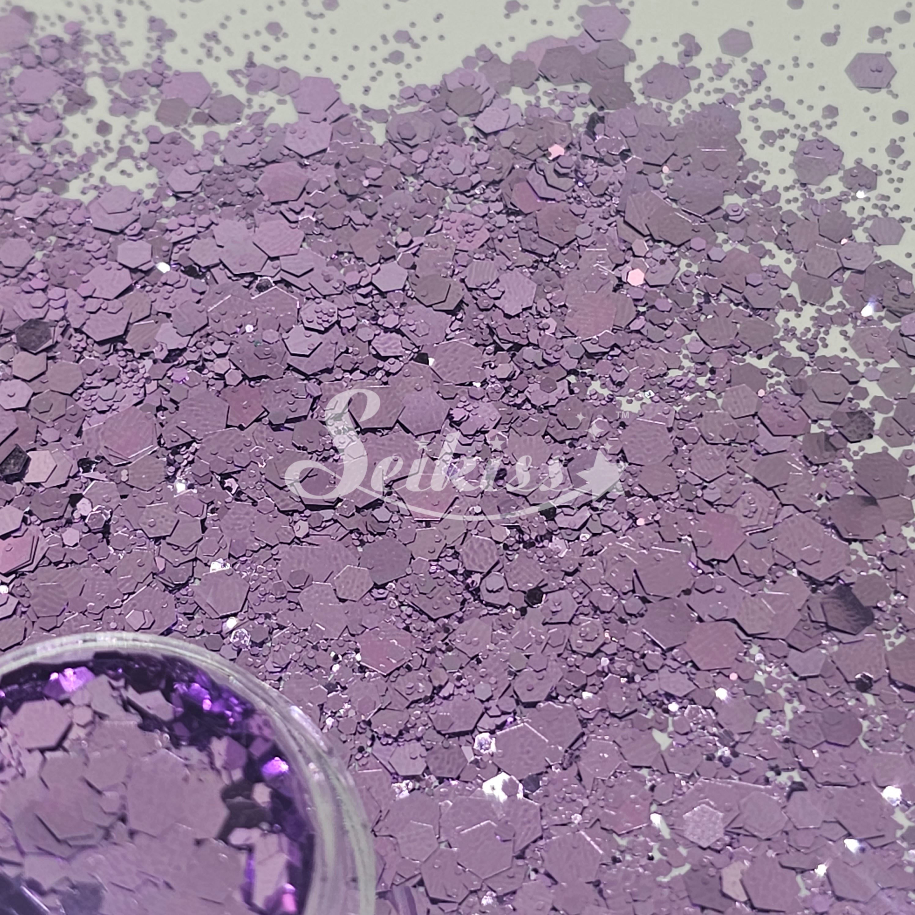 Iris Crush Chunky Mix Glitter features a metallic very sparkly soft purple. Perfect for mixing with other colors and use with resin, nails, tumblers, jewelry, arts, and all types of crafts and projects.