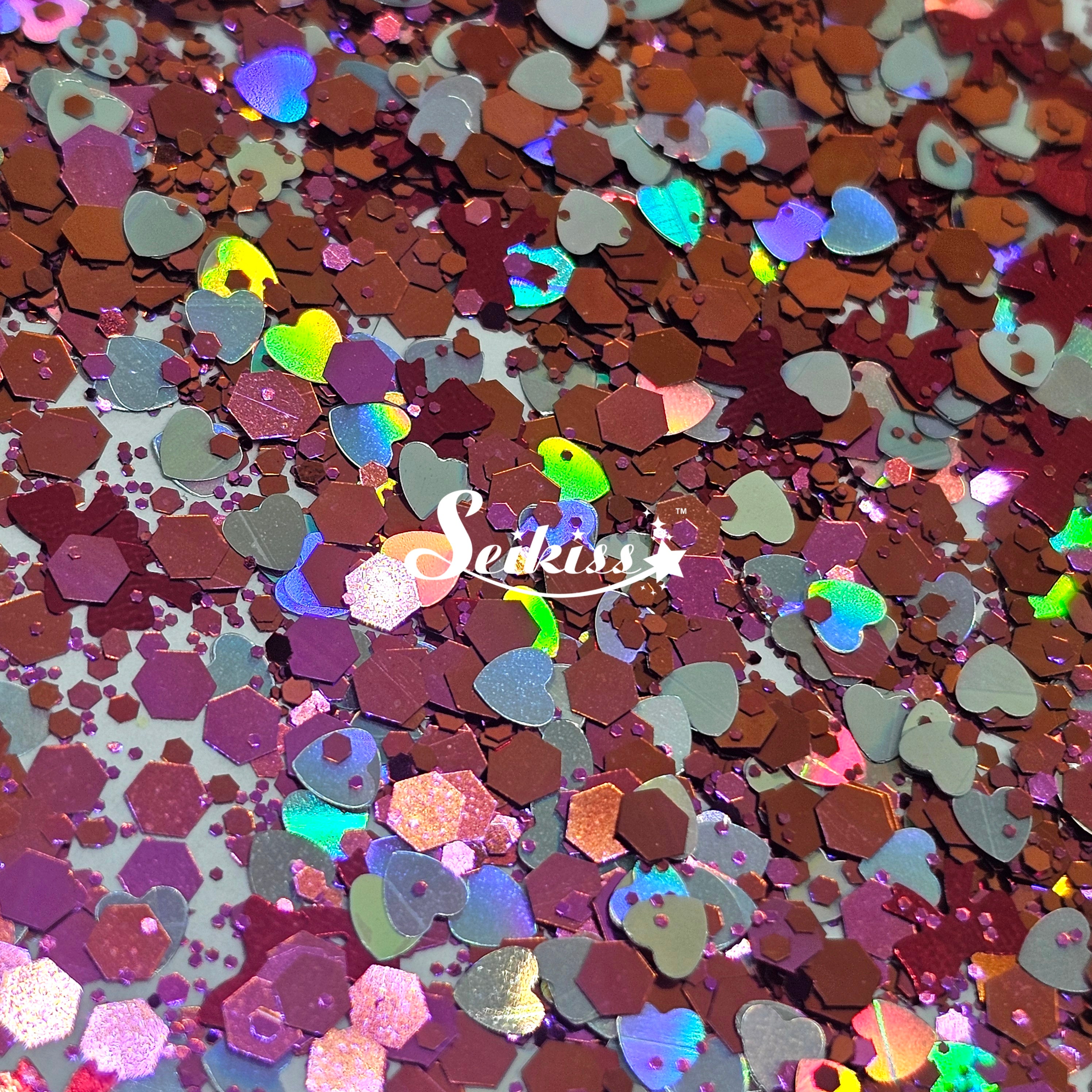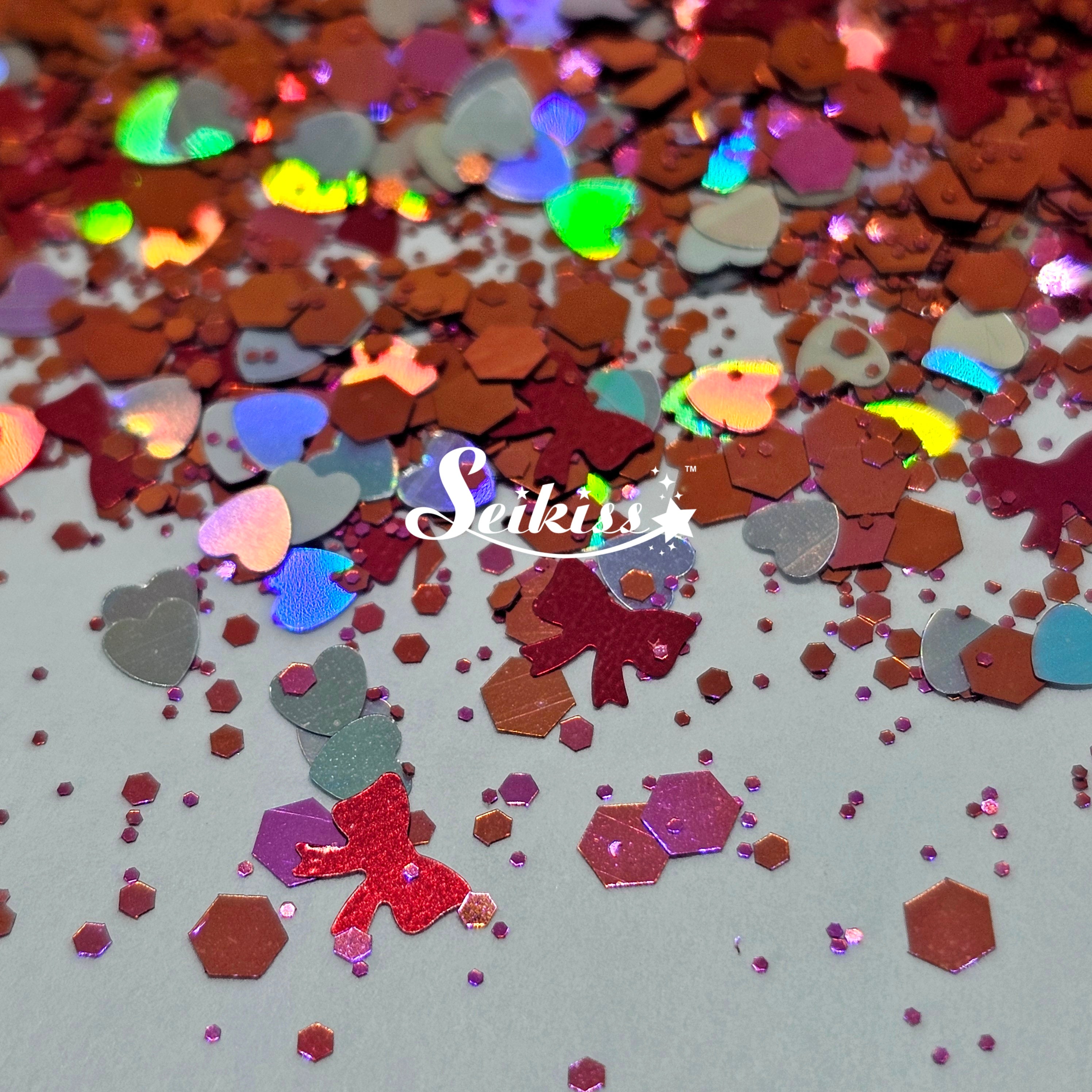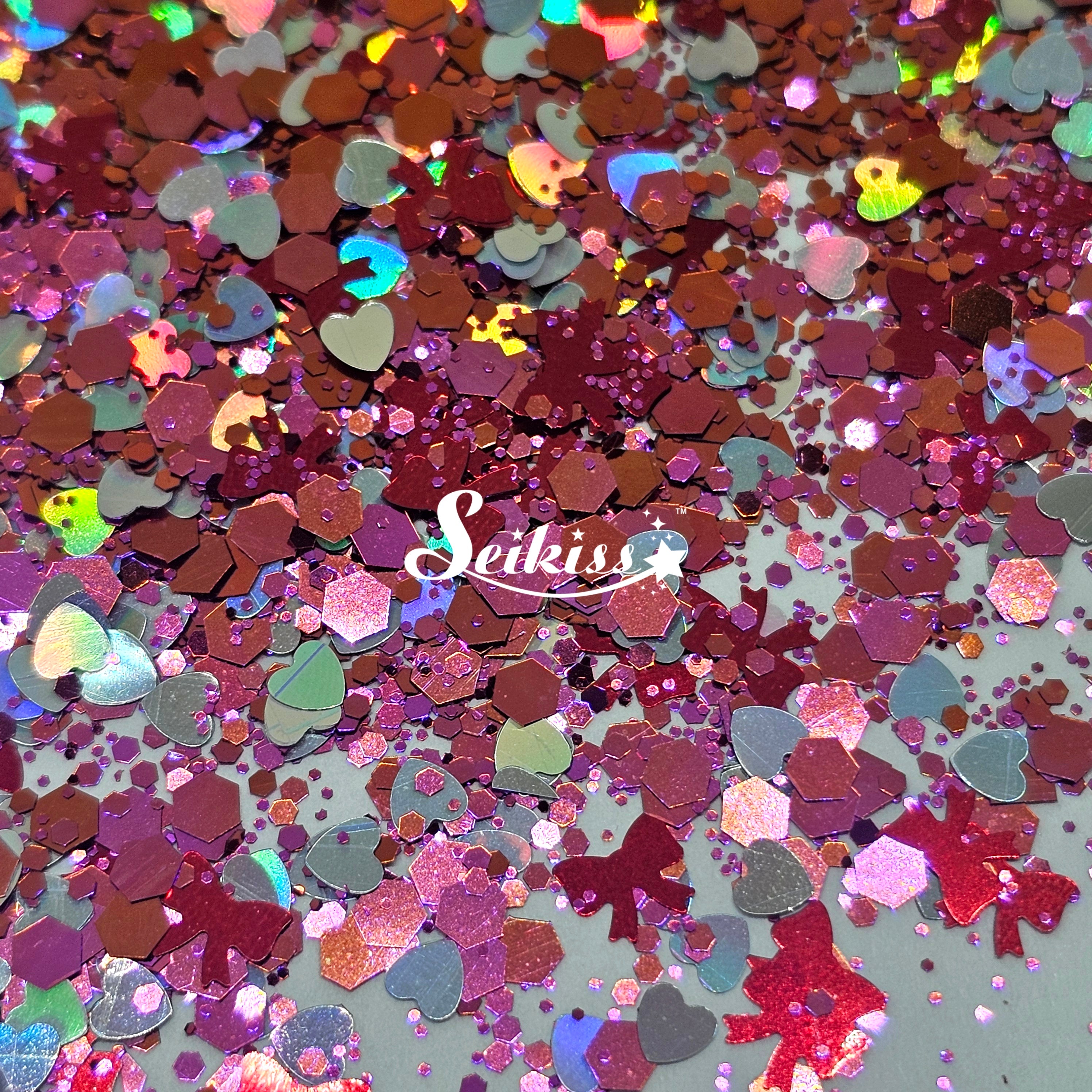 Valentina is a lovely mix of chameleon red/pink/copper chunky mix, silver holographic hearts and red bows. Perfect for all your projects like resin, nails, tumblers, jewelry, arts, and all types of crafts.