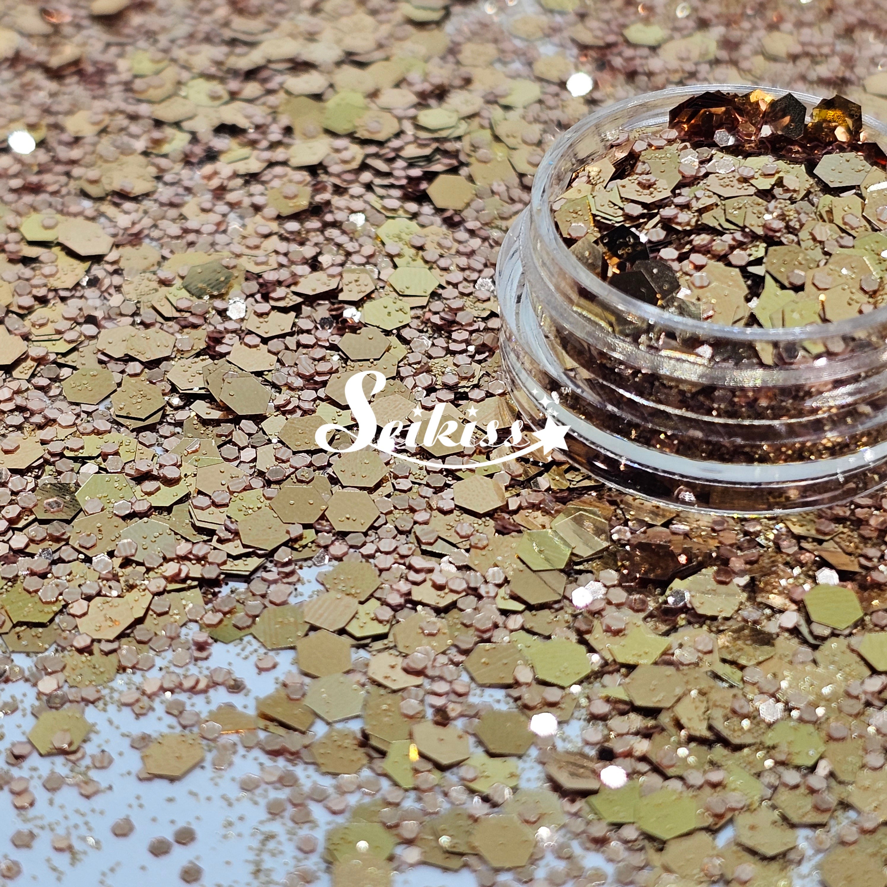 Luxe Gold Chunky Mix Glitter features a soft metallic gold. Perfect for resin, nails, tumblers, jewelry, arts, and all types of crafts and projects.