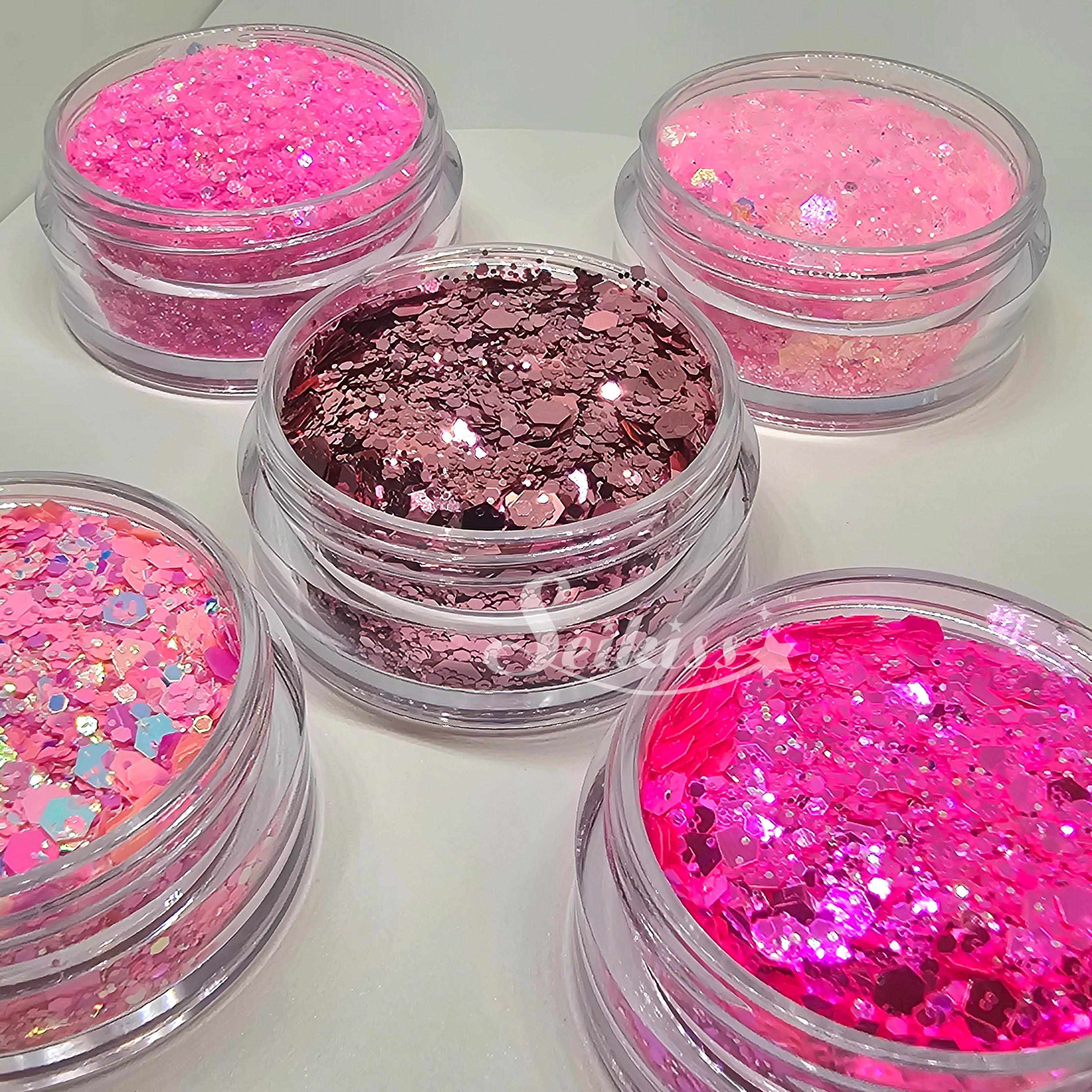 Lovely pink chunky mixes bundle that will make your projects shine. Perfect for resin, nails, tumblers, jewelry, arts, and all types of crafts and projects.