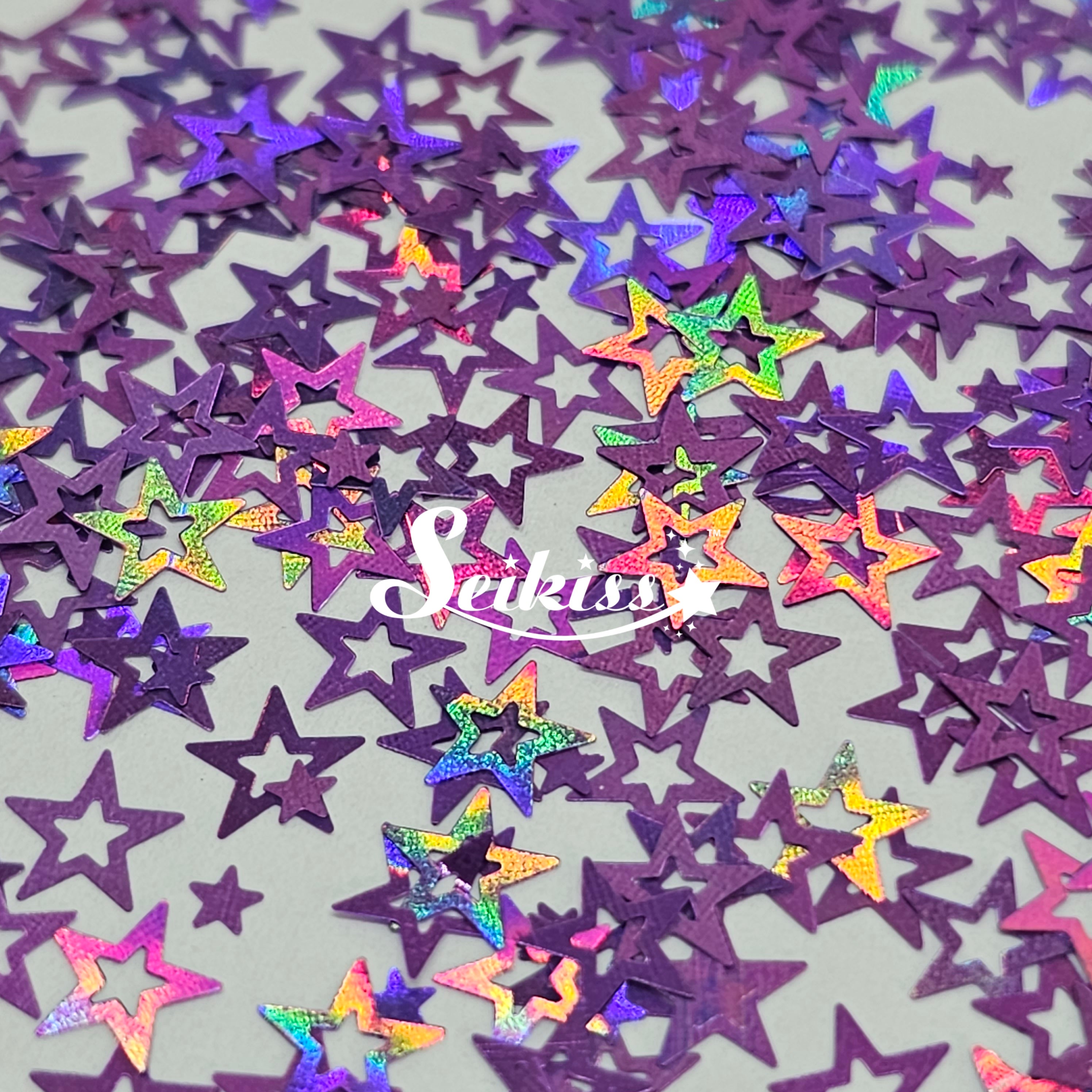 Purple Retro Stars is a mix of purple star shapes with a holographic finish that makes your projects shine. Perfect for mixing with other colors and use with resin, nails, tumblers, jewelry, arts, and all types of crafts and projects.