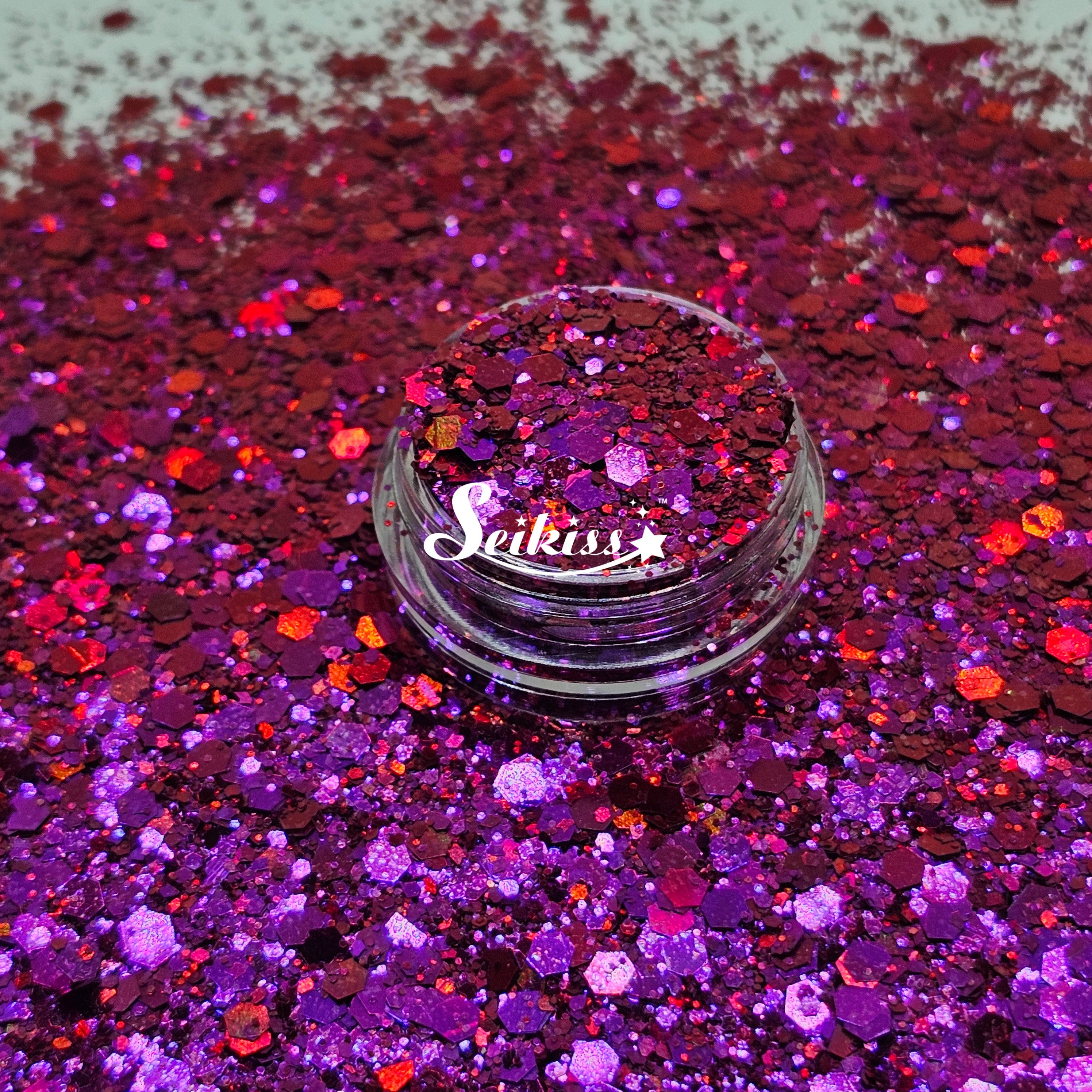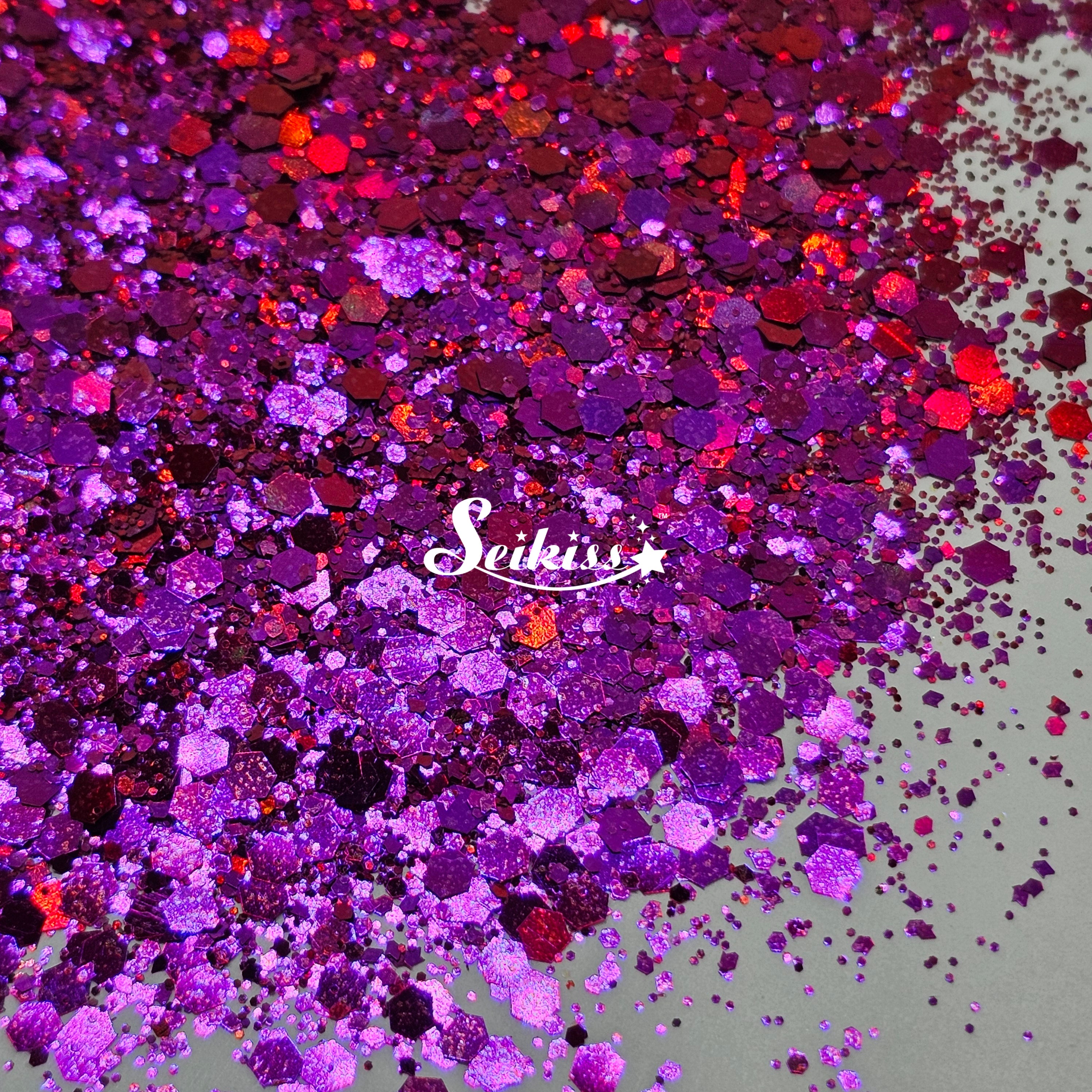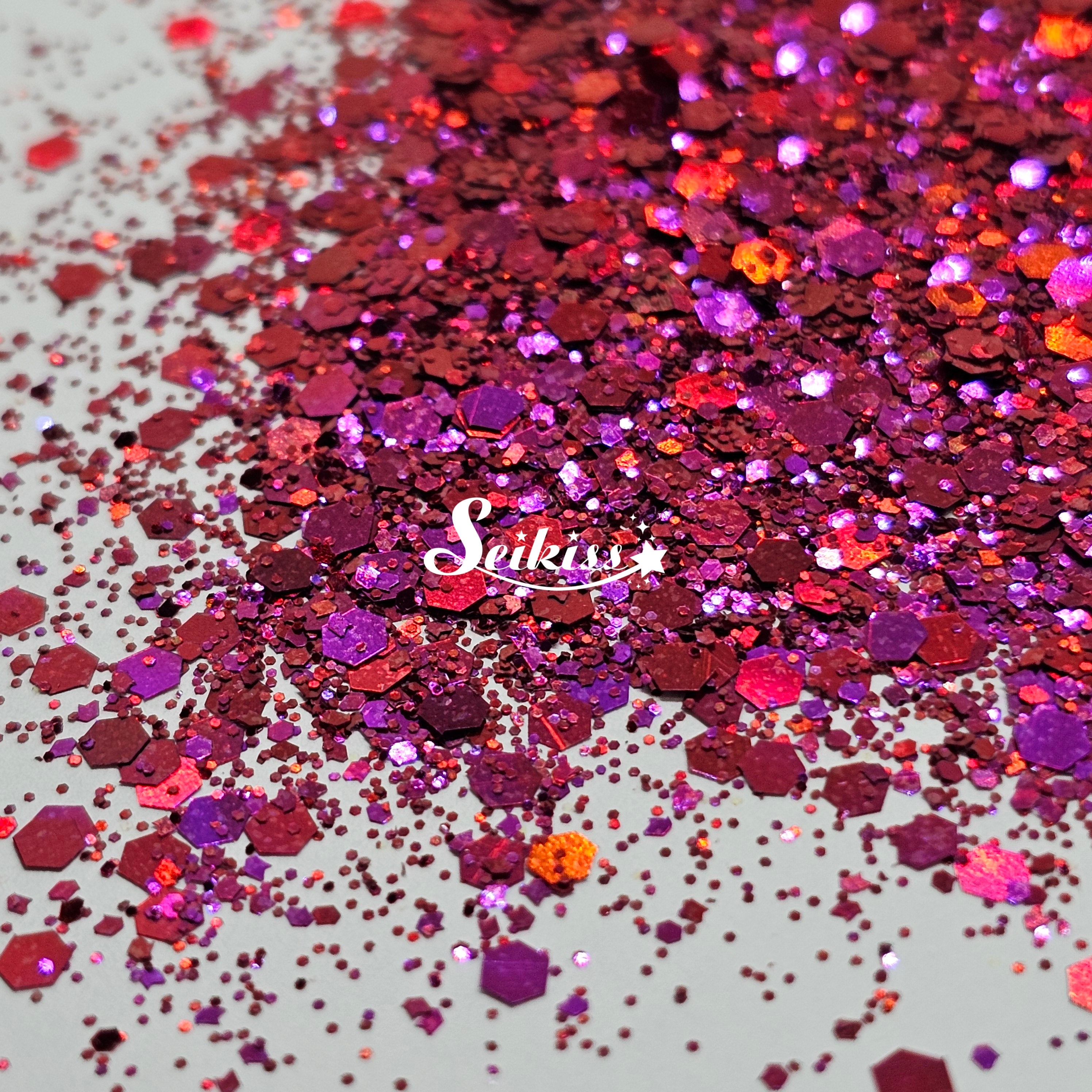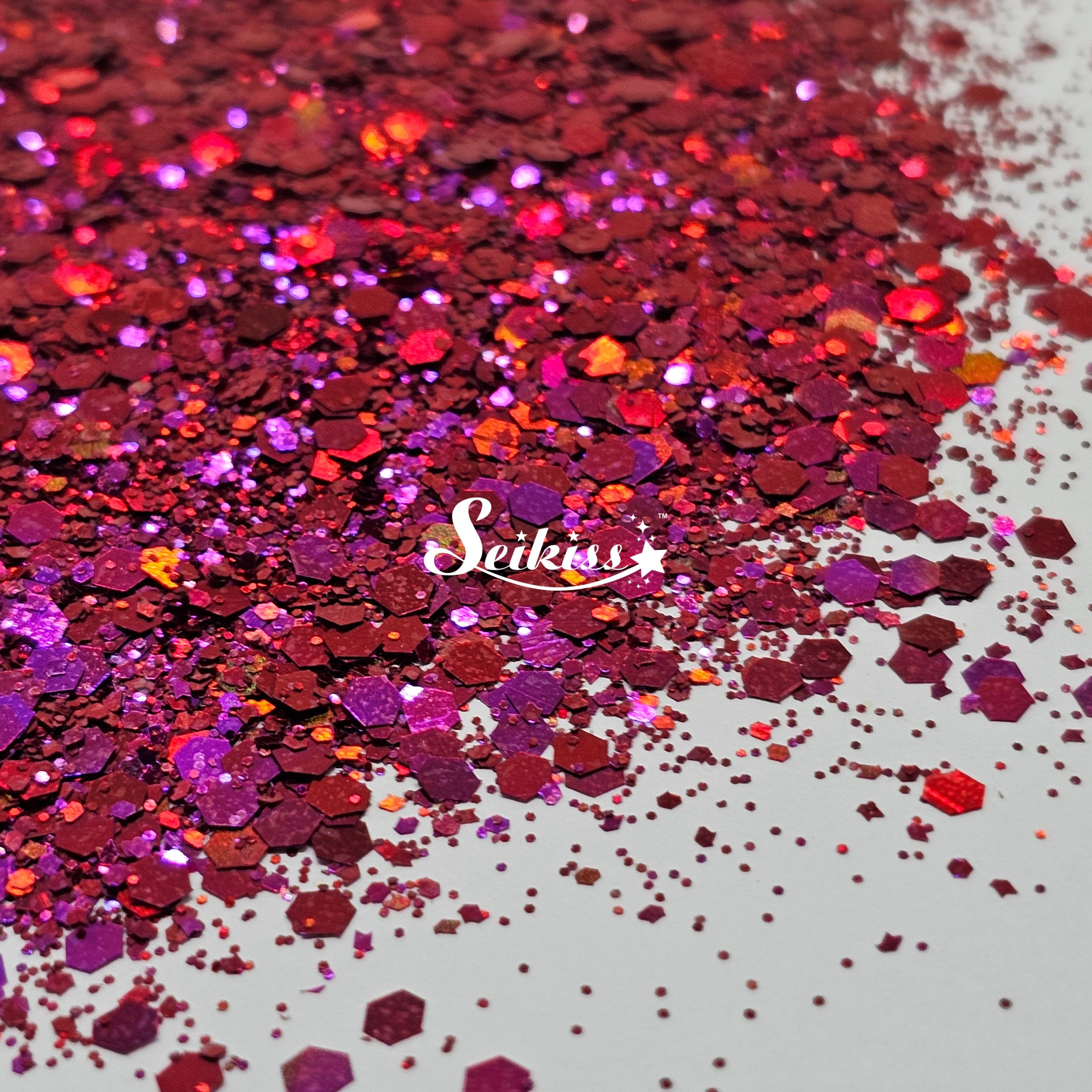 Razzleberry glitter is a chunky mix of color shift from red to purple/ fuchsia.This mix will make your project unique and is perfect for nails, resin, tumblers, jewelry, arts, and all types of crafts and projects.