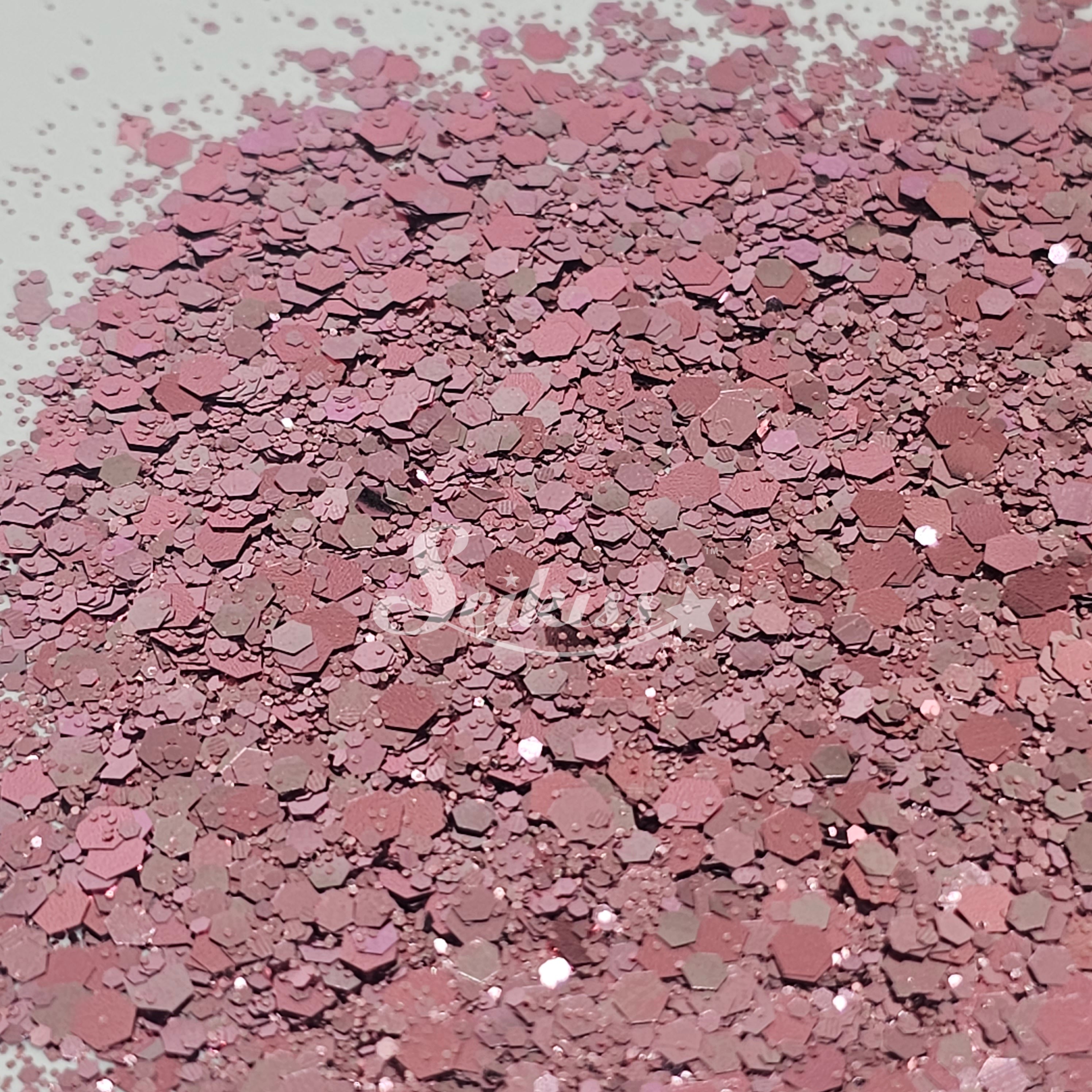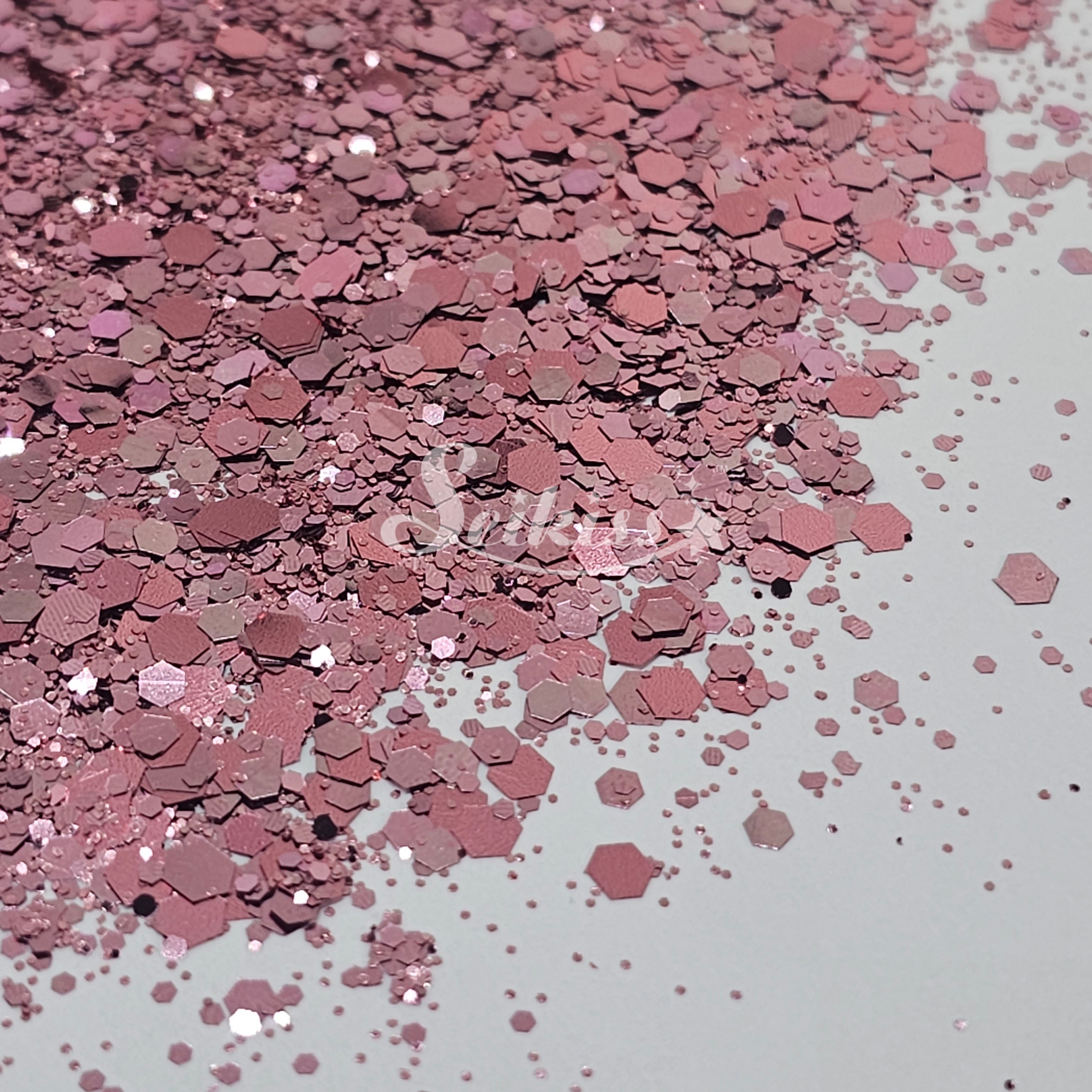 Rose Gold Chunky Glitter mix features a beautiful metallic pink. Perfect for mixing with other colors and use with resin, nails, tumblers, jewelry, arts, and all types of crafts and projects.