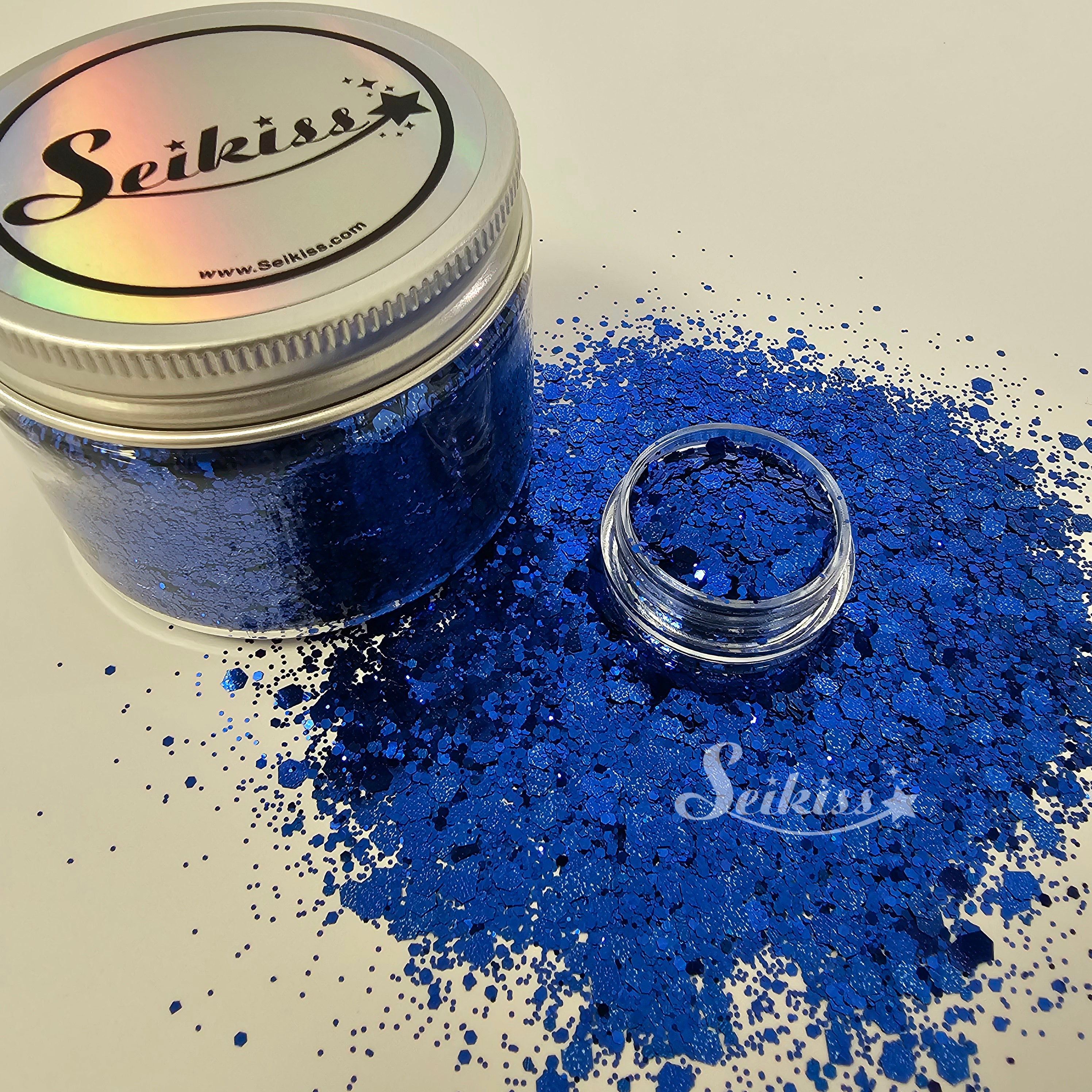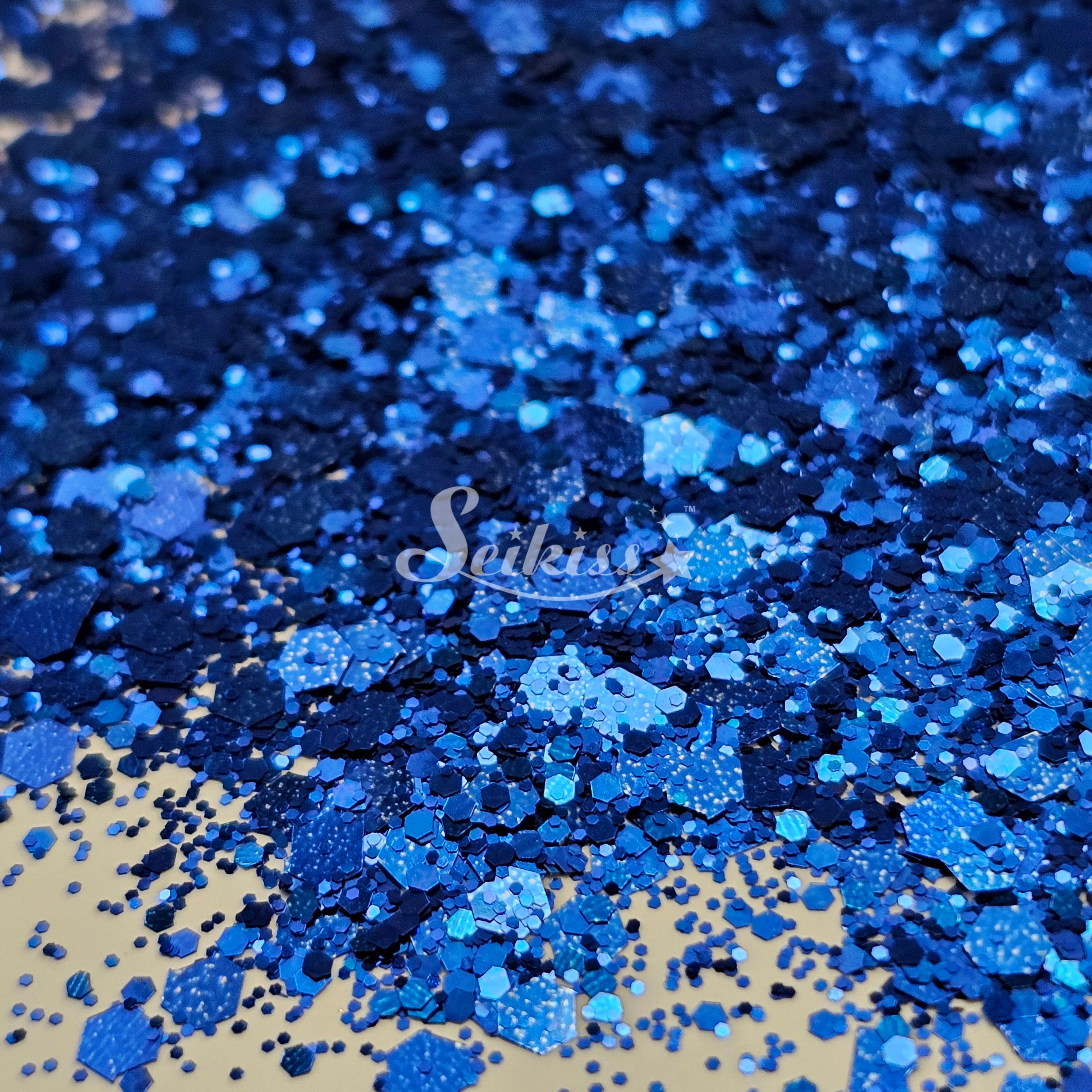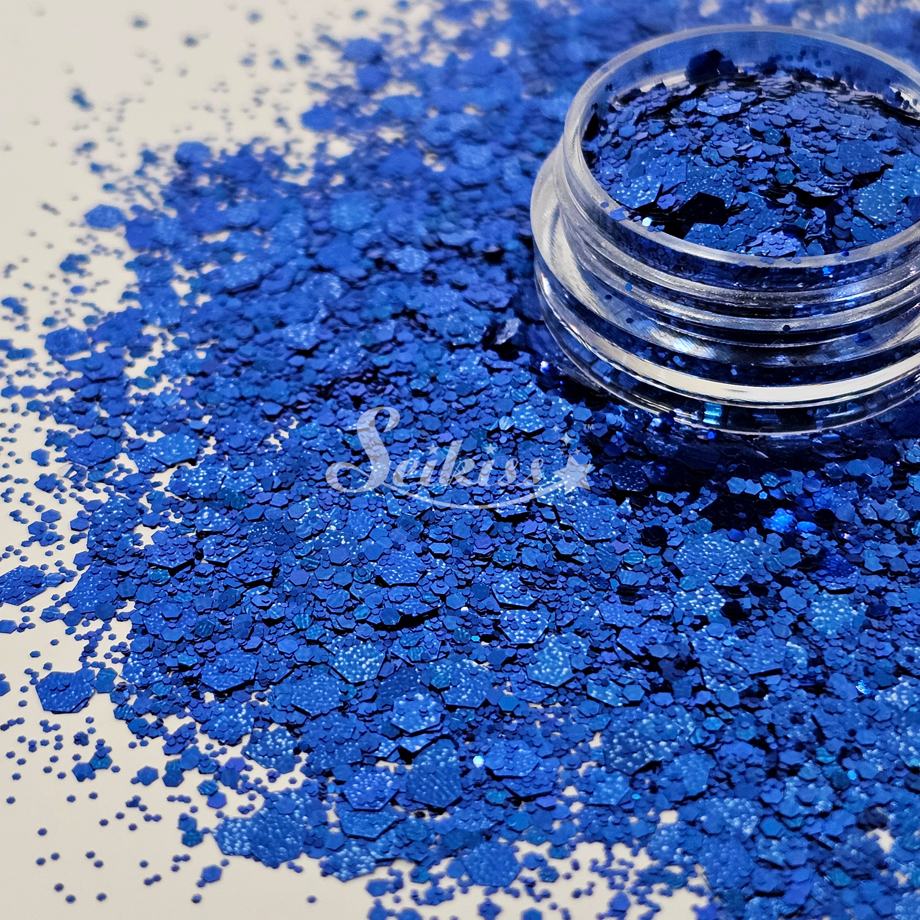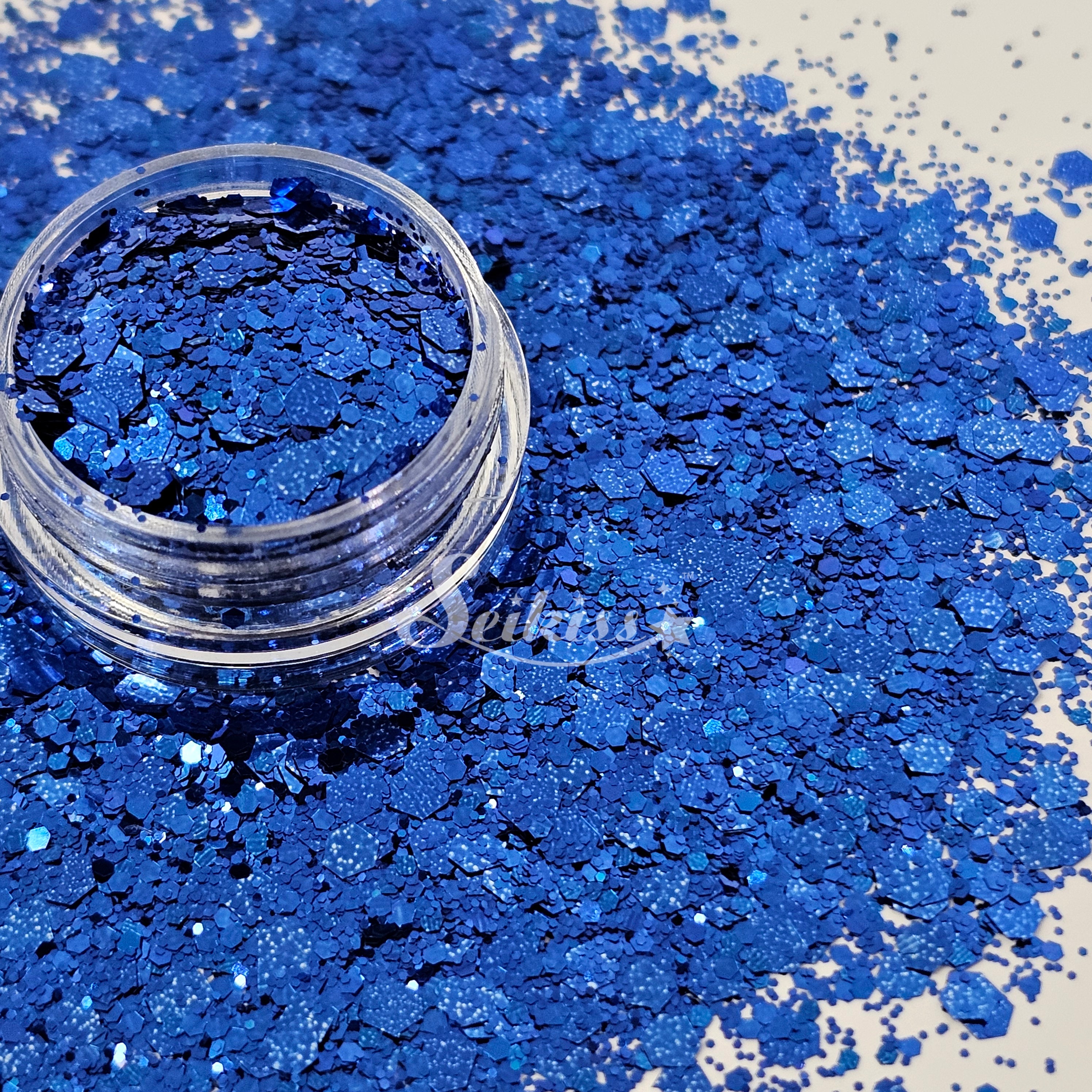Royal Metallic Chunky Mix Glitter features a metallic blue. Perfect for mixing with other colors and use with resin, nails, tumblers, jewelry, arts, and all types of crafts and projects.