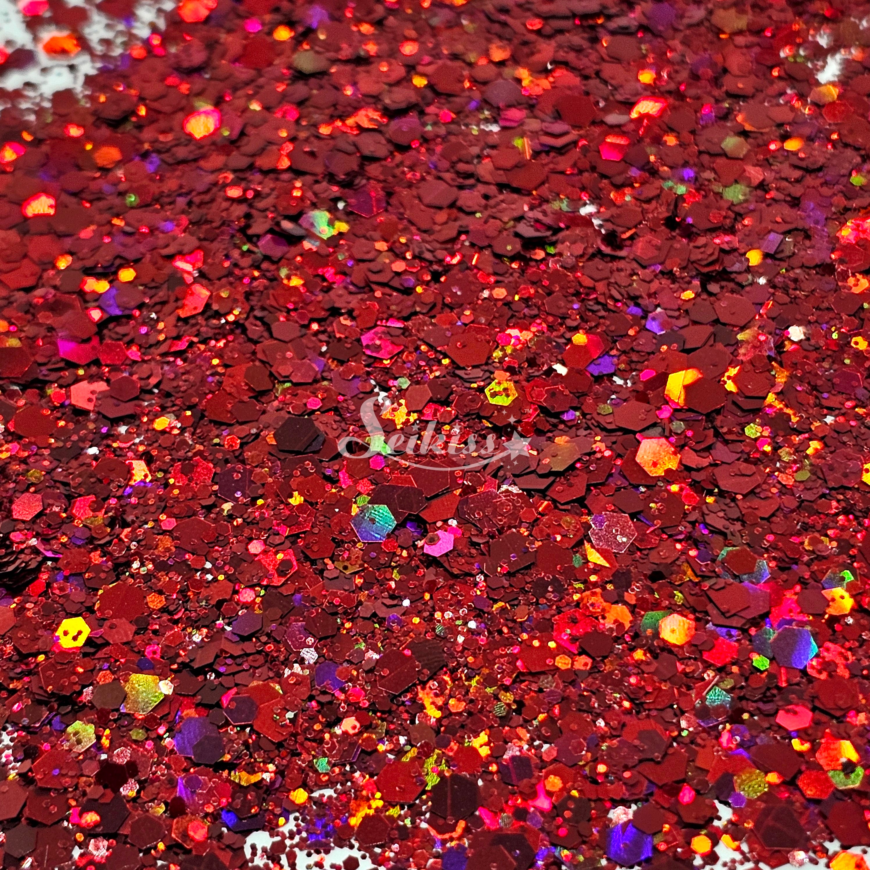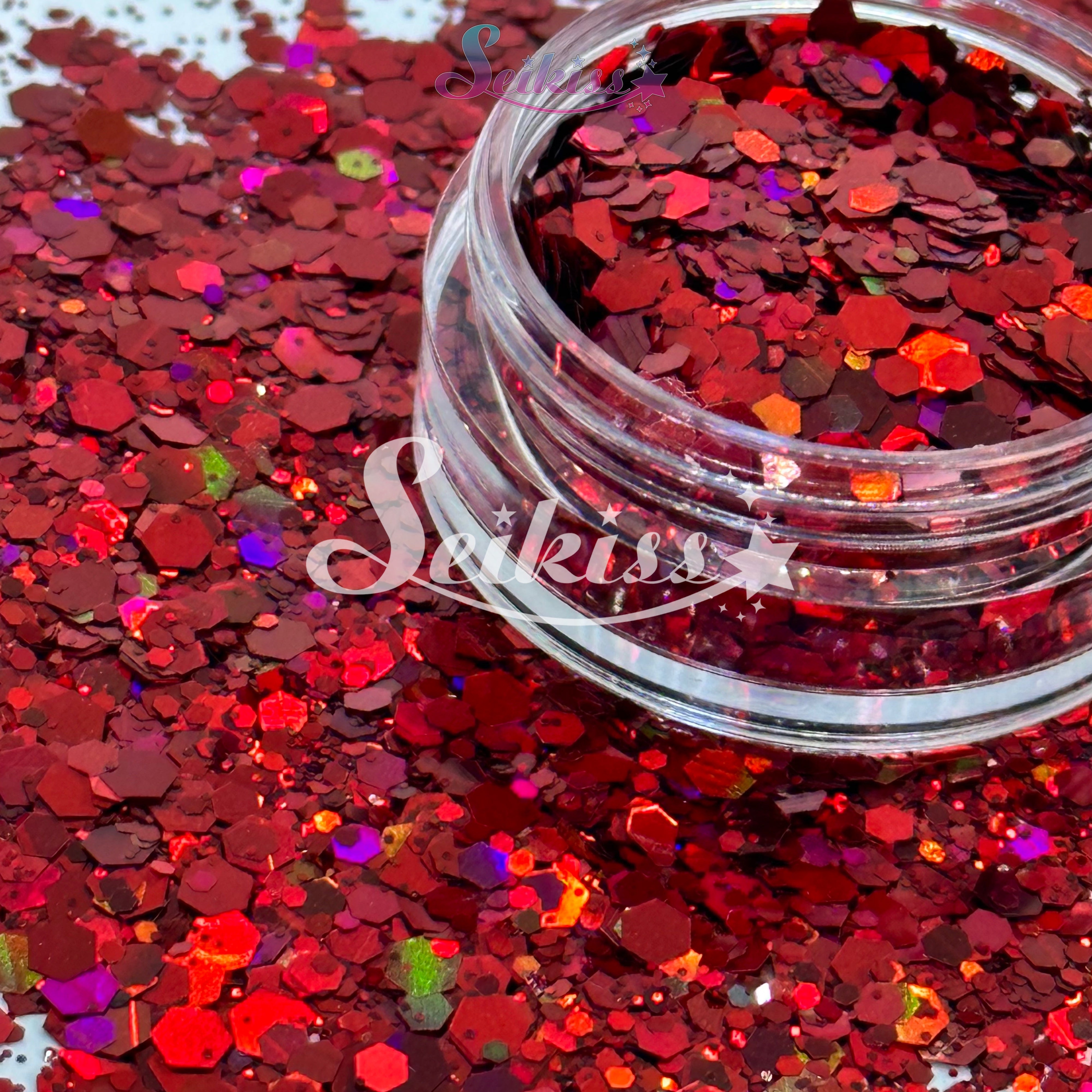 Ruby Galaxy is a colorful, chunky mix of deep red, adding a stunning visual effect with its realistic holographic finish. This makes your projects shine and is perfect for resin, nails, tumblers, jewelry, arts, and all types of crafts and projects.