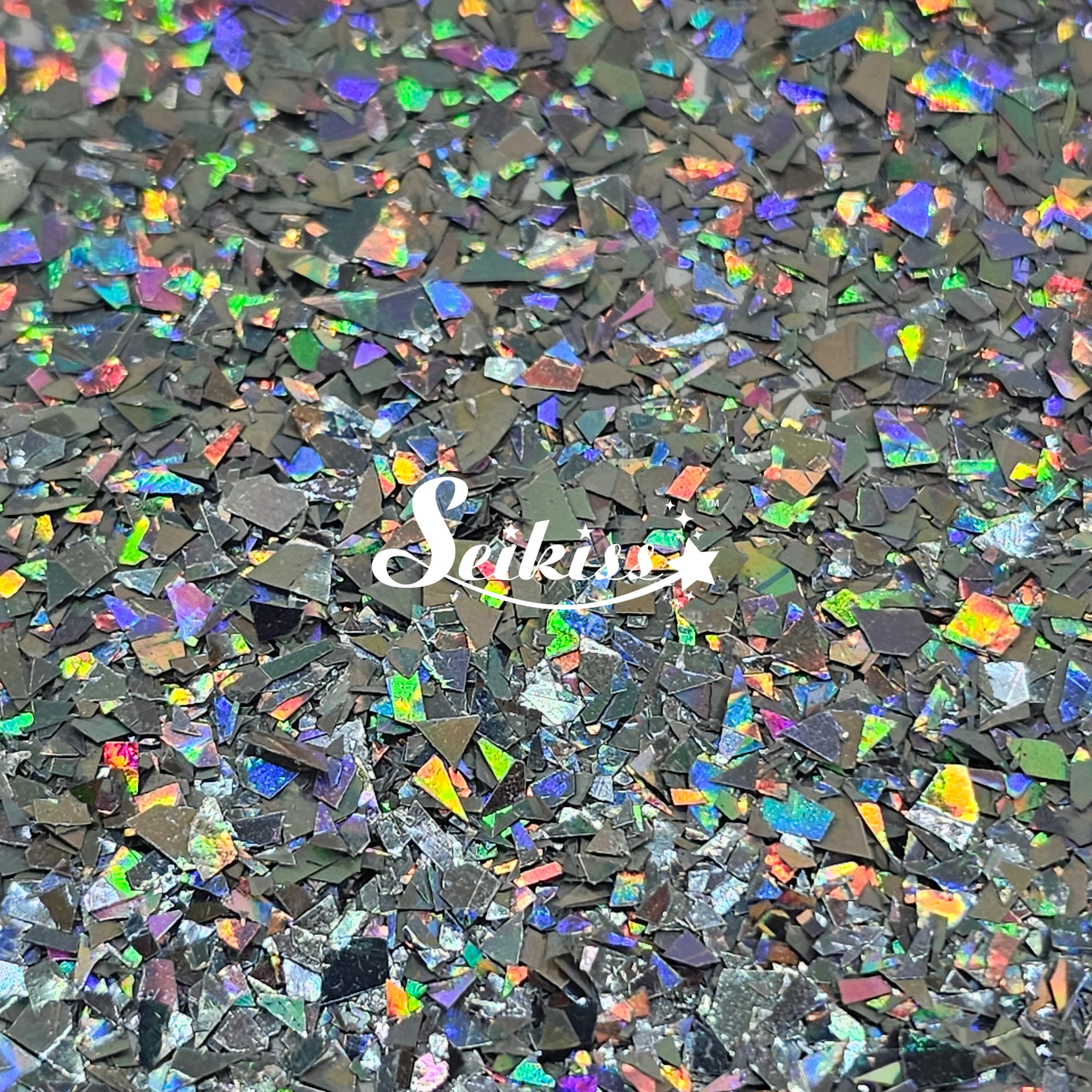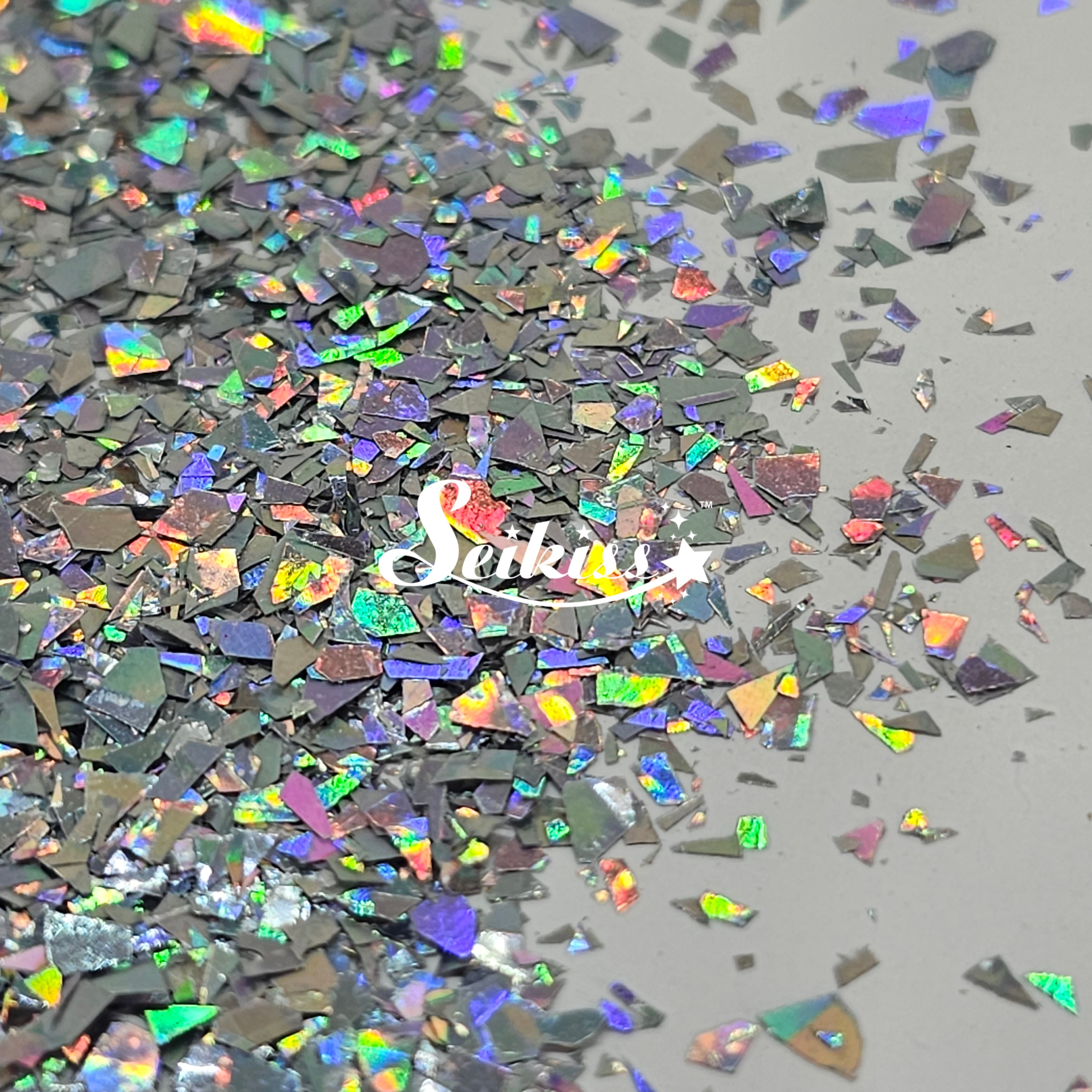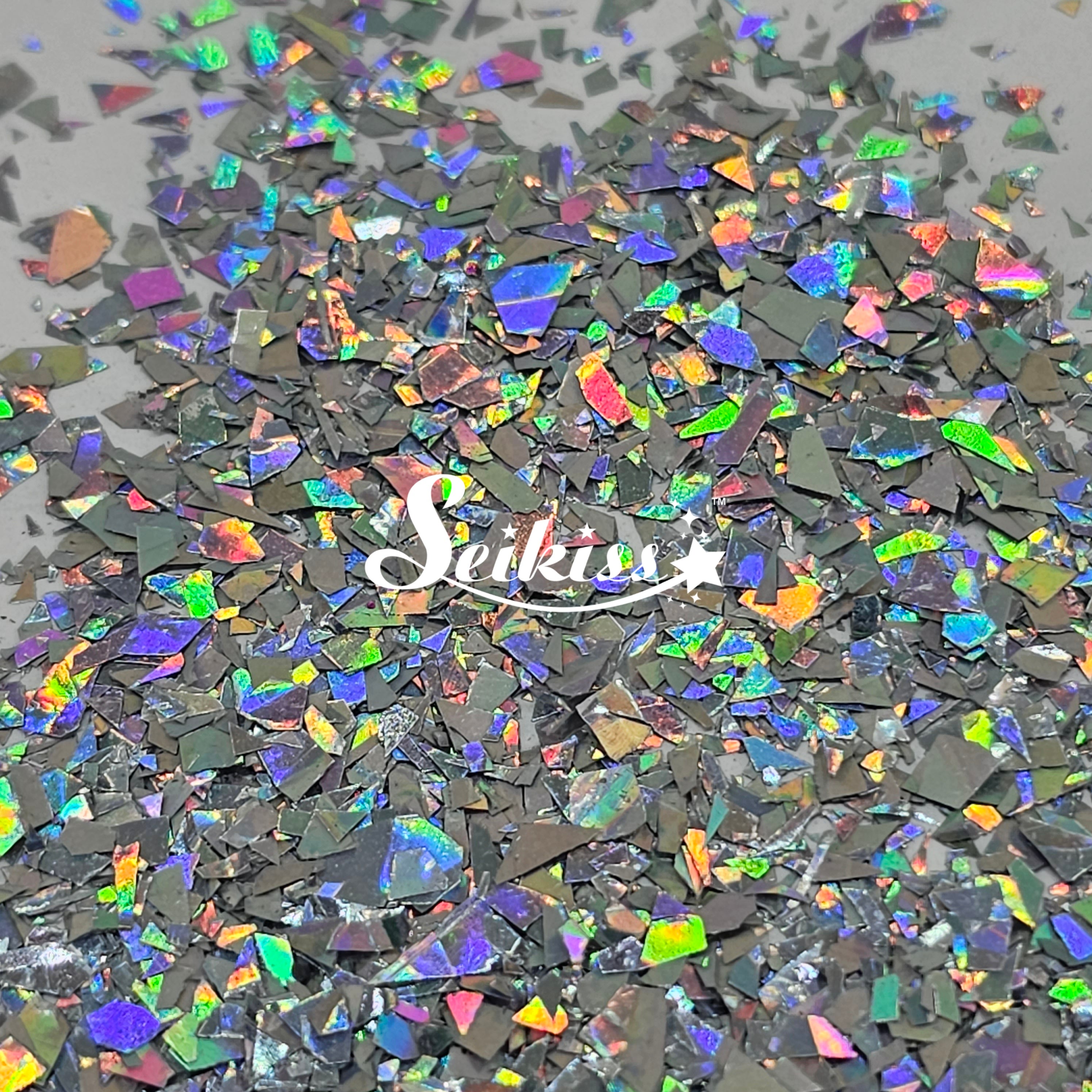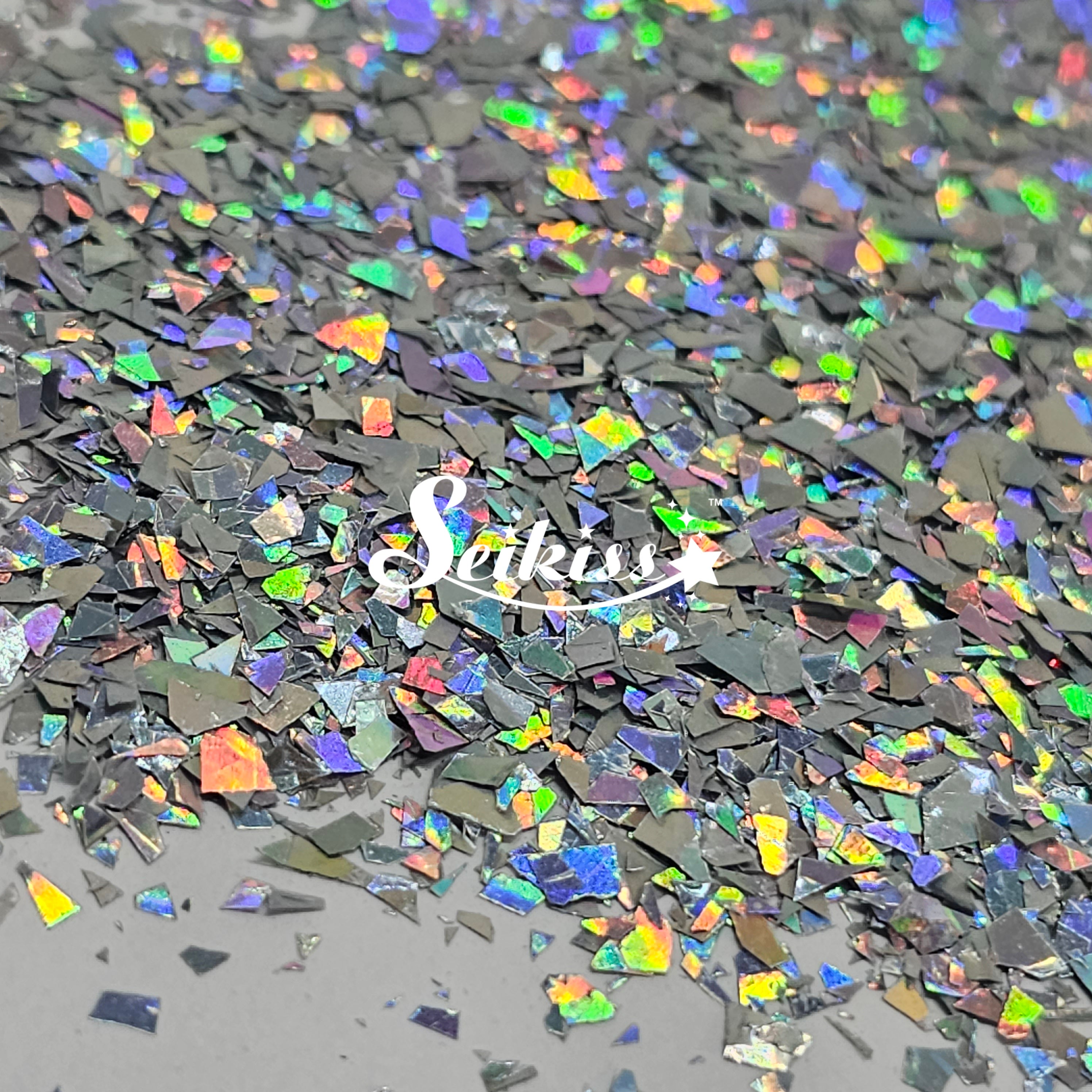 Silver Laser Flakes is a mix of silver flakes with a holographic finish. This makes your projects shine and is perfect for resin, nails, tumblers, jewelry, arts, and all types of crafts and projects.