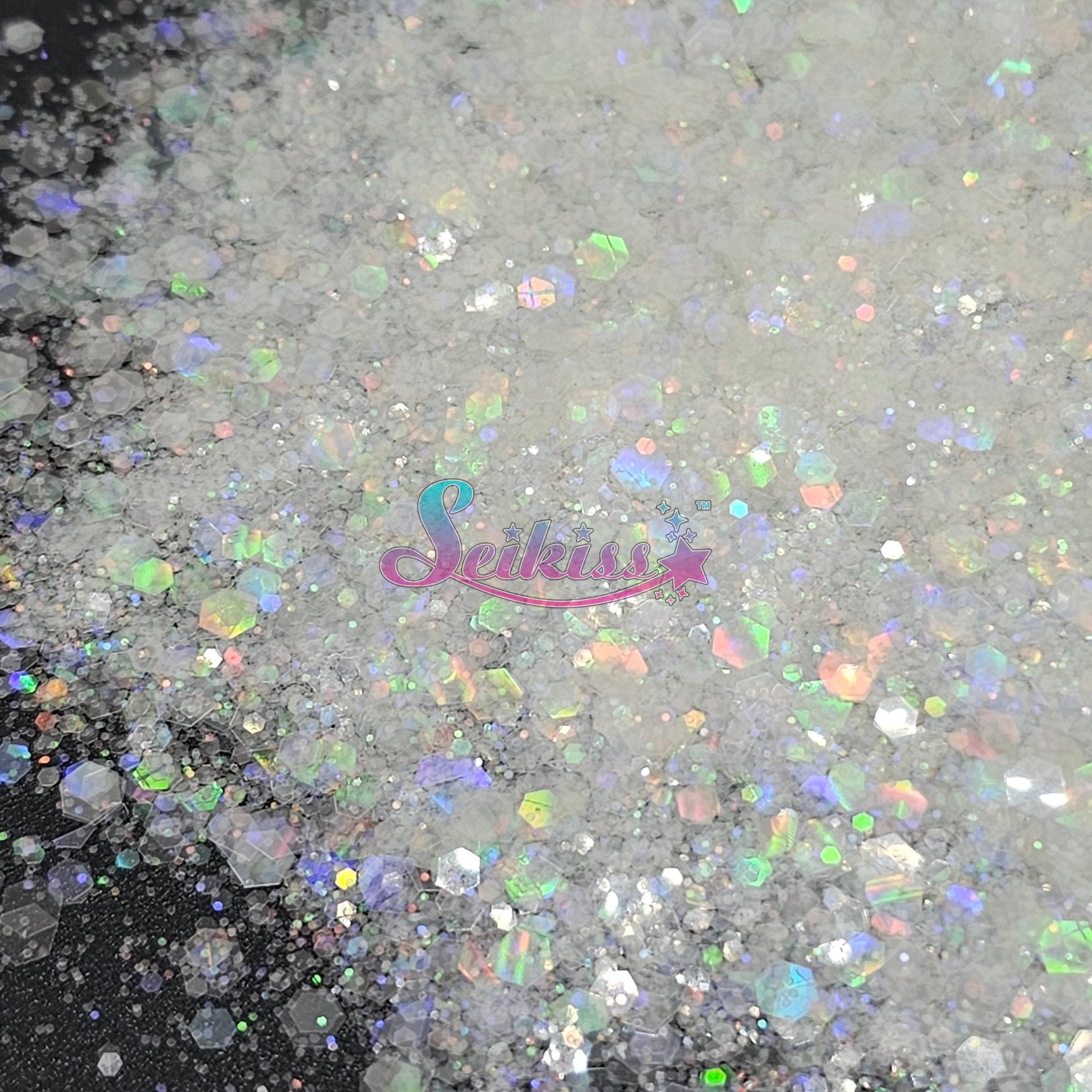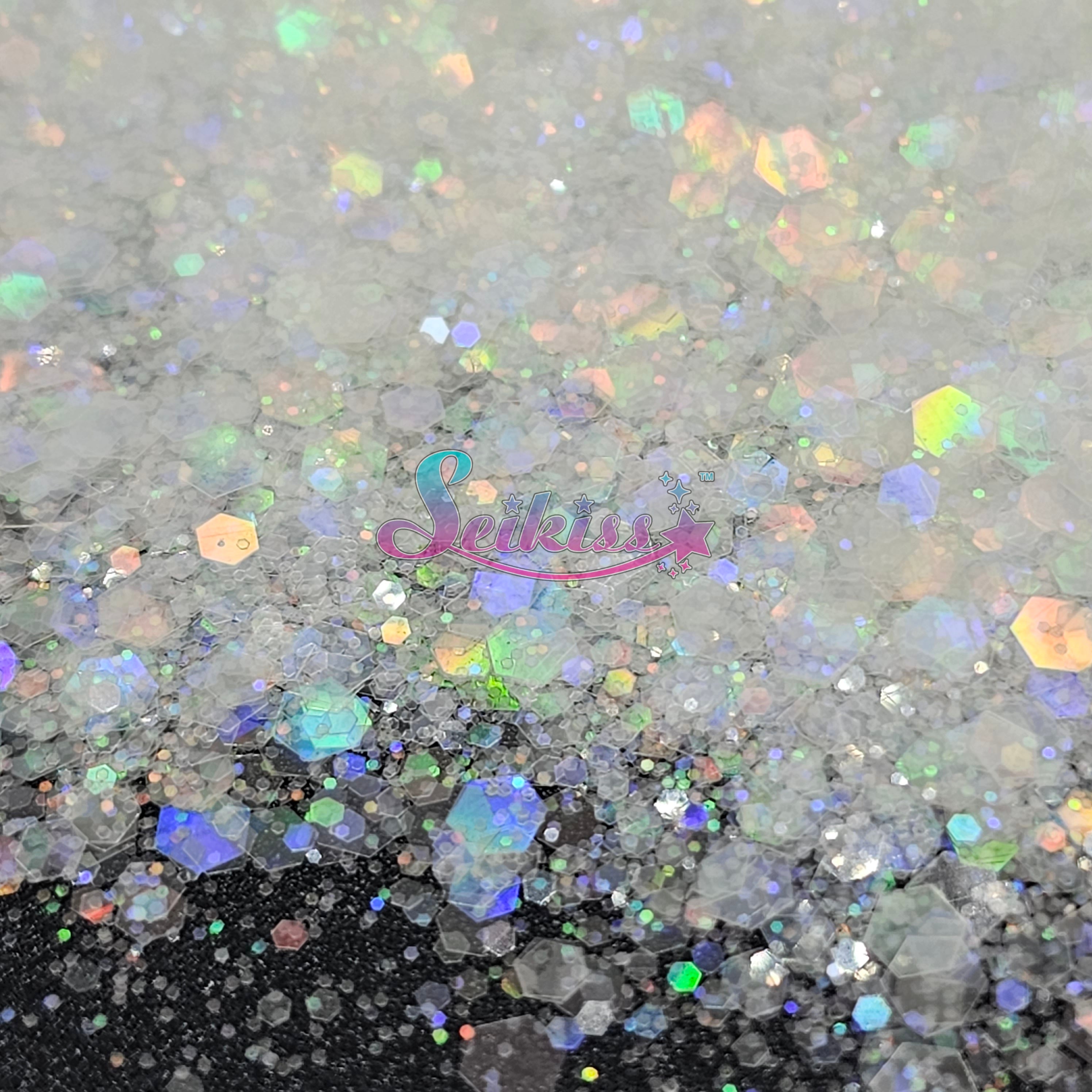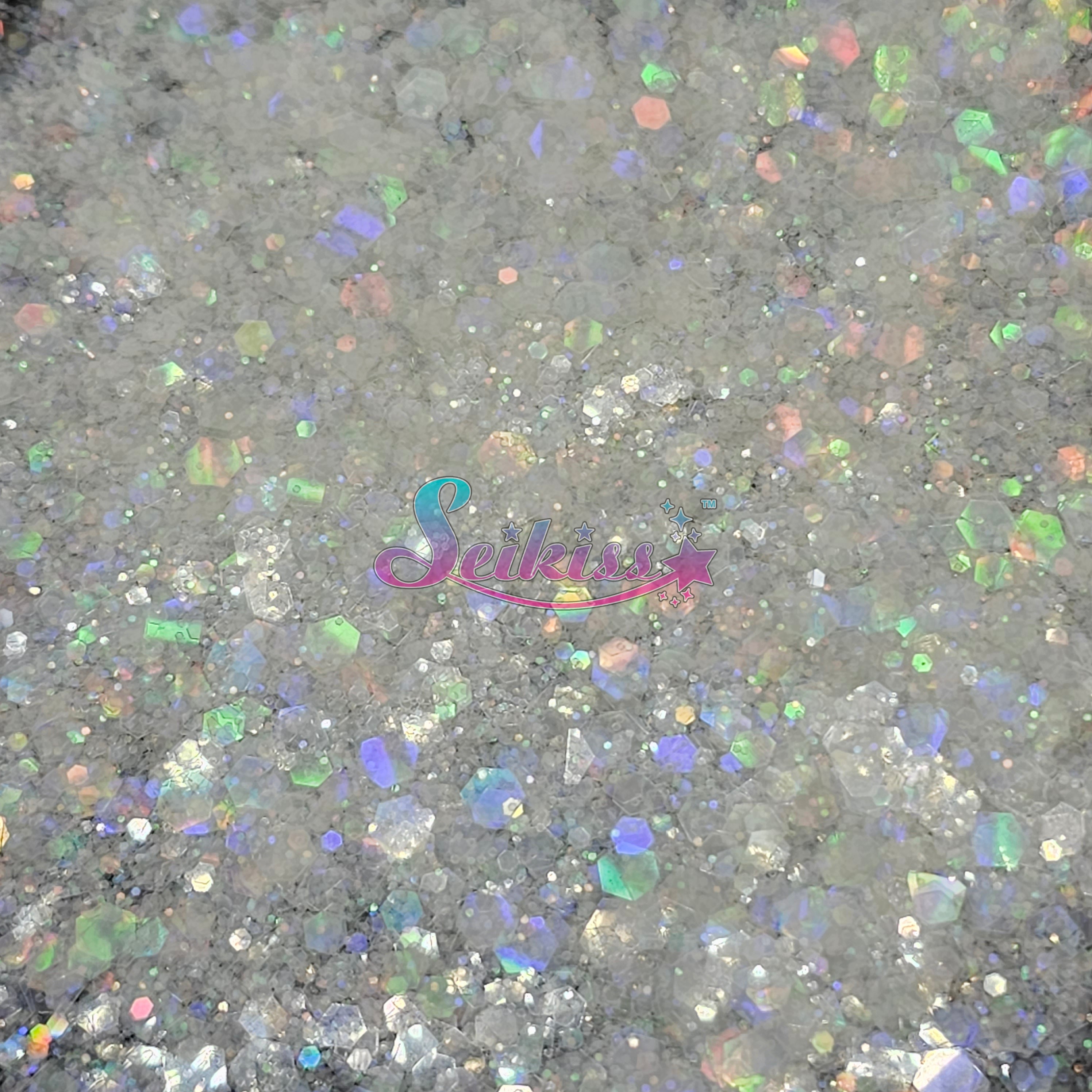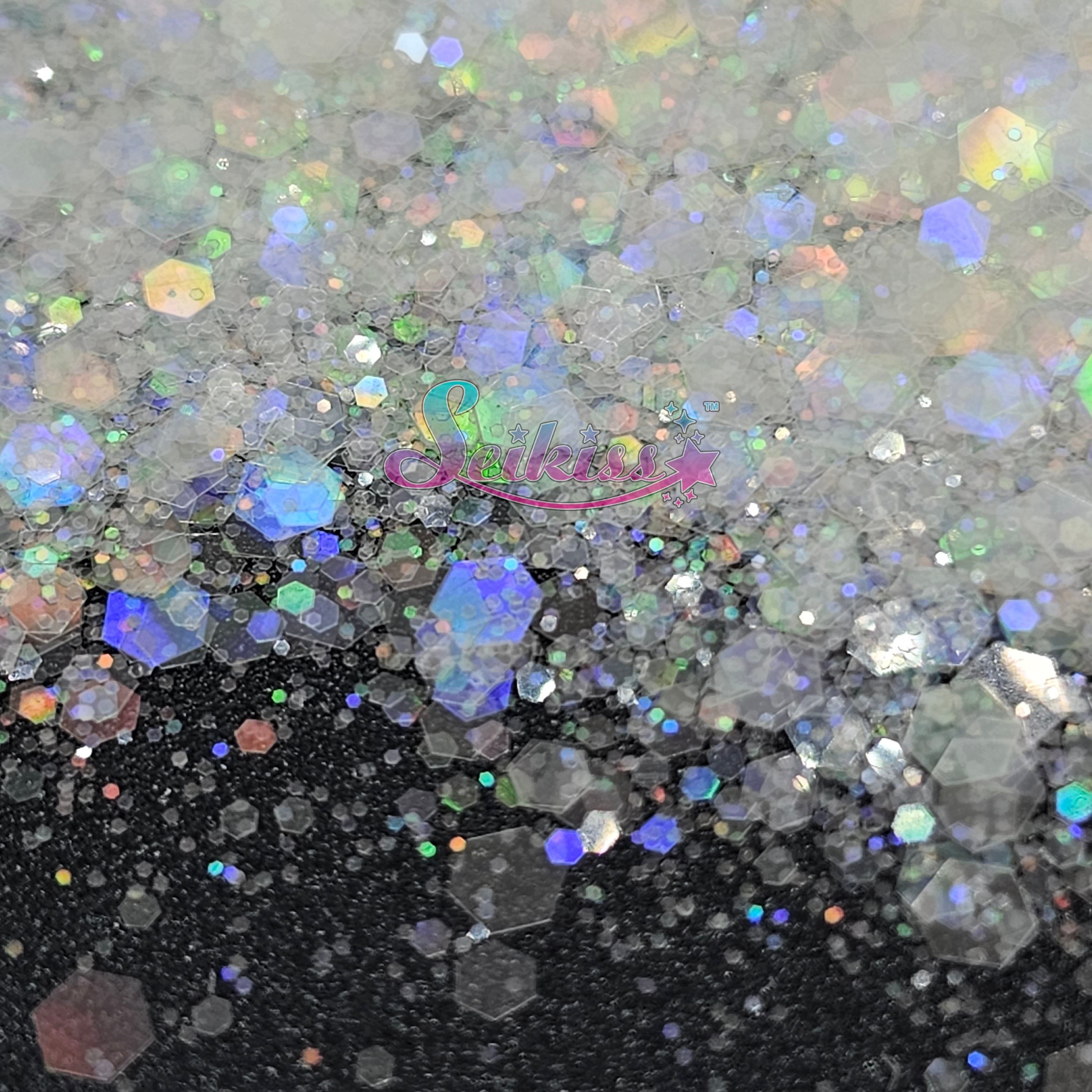 Snow Galaxy chunky mix is a frost white glitter that ads a stunning visual effect to your artwork with its realistic holographic finish. This makes your projects shine and is perfect for resin, nails, tumblers, jewelry, arts, and all types of crafts and projects.