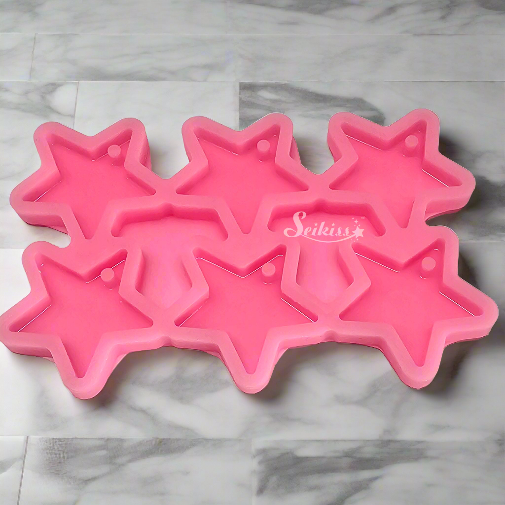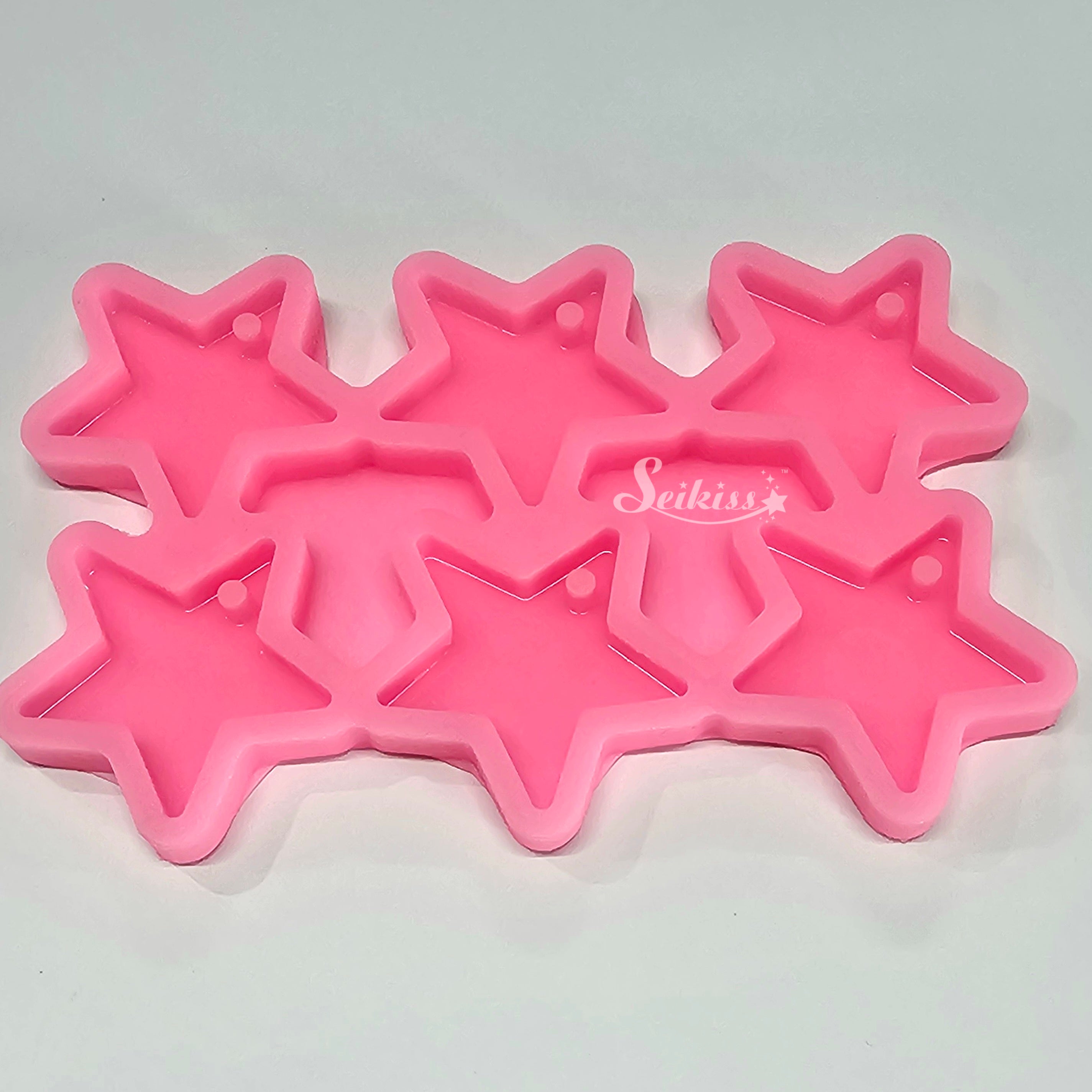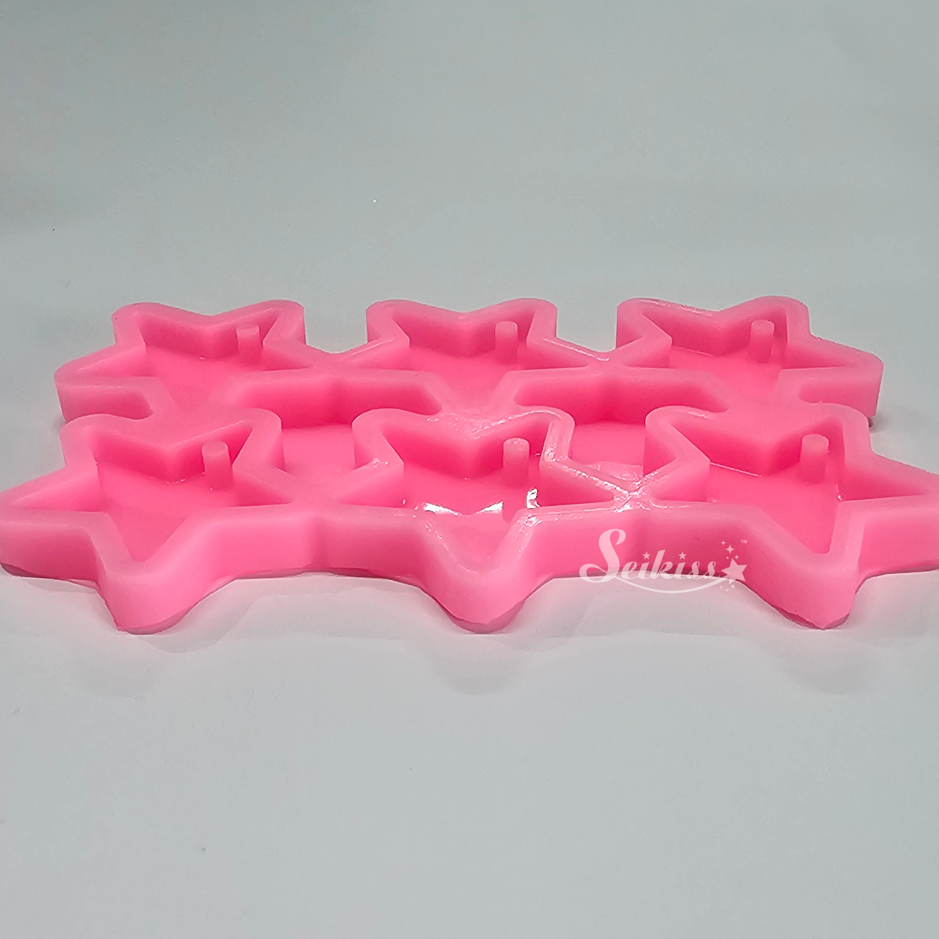 Small 6 cavities star shape silicone mold for keychains earrings or for decorating any projects. All 6 cavities are the same sizes.