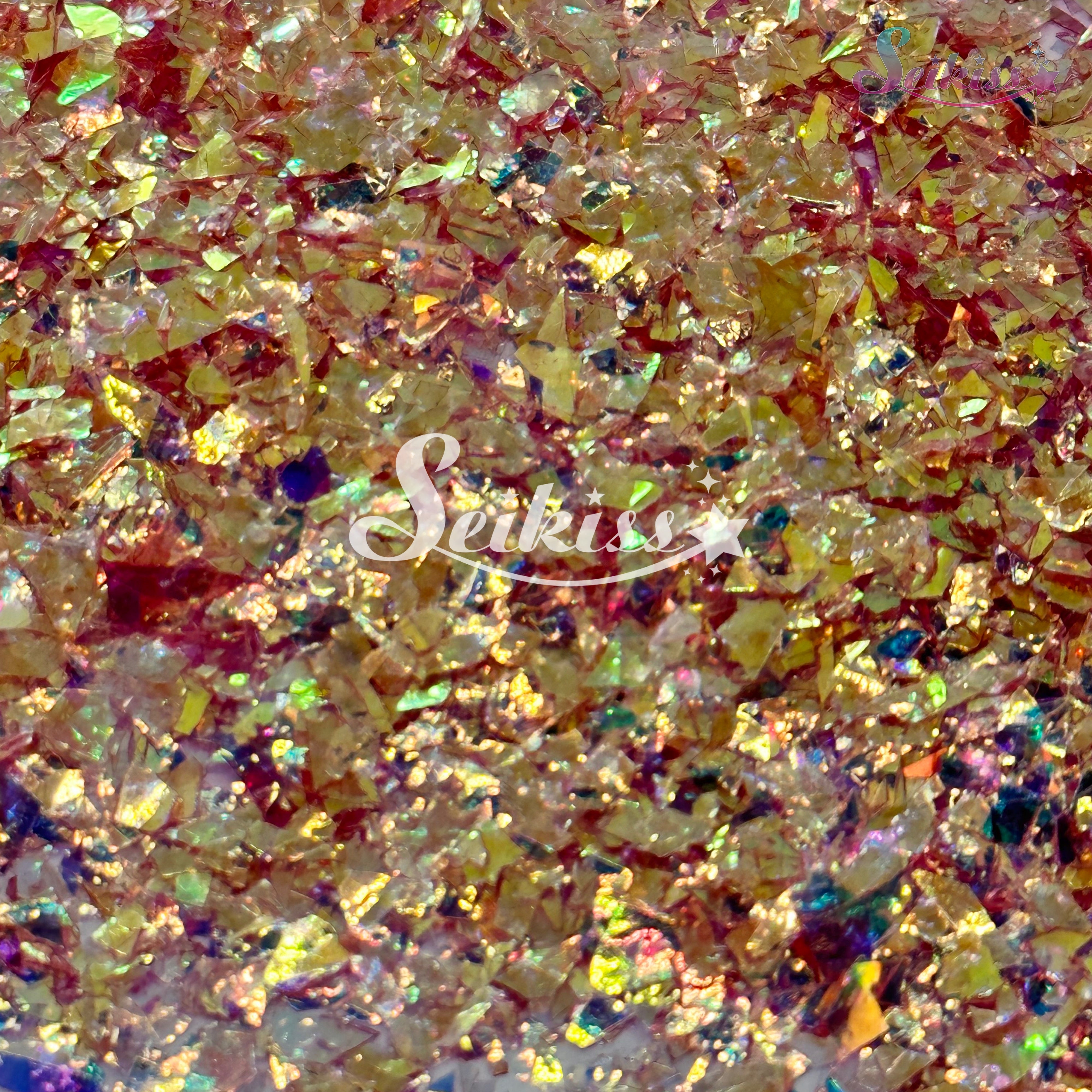 Sunrise Flakes is a mix of soft golden orange flakes with an iridescent finish. This makes your projects shine and is perfect for resin, nails, tumblers, jewelry, arts, and all types of crafts and projects.