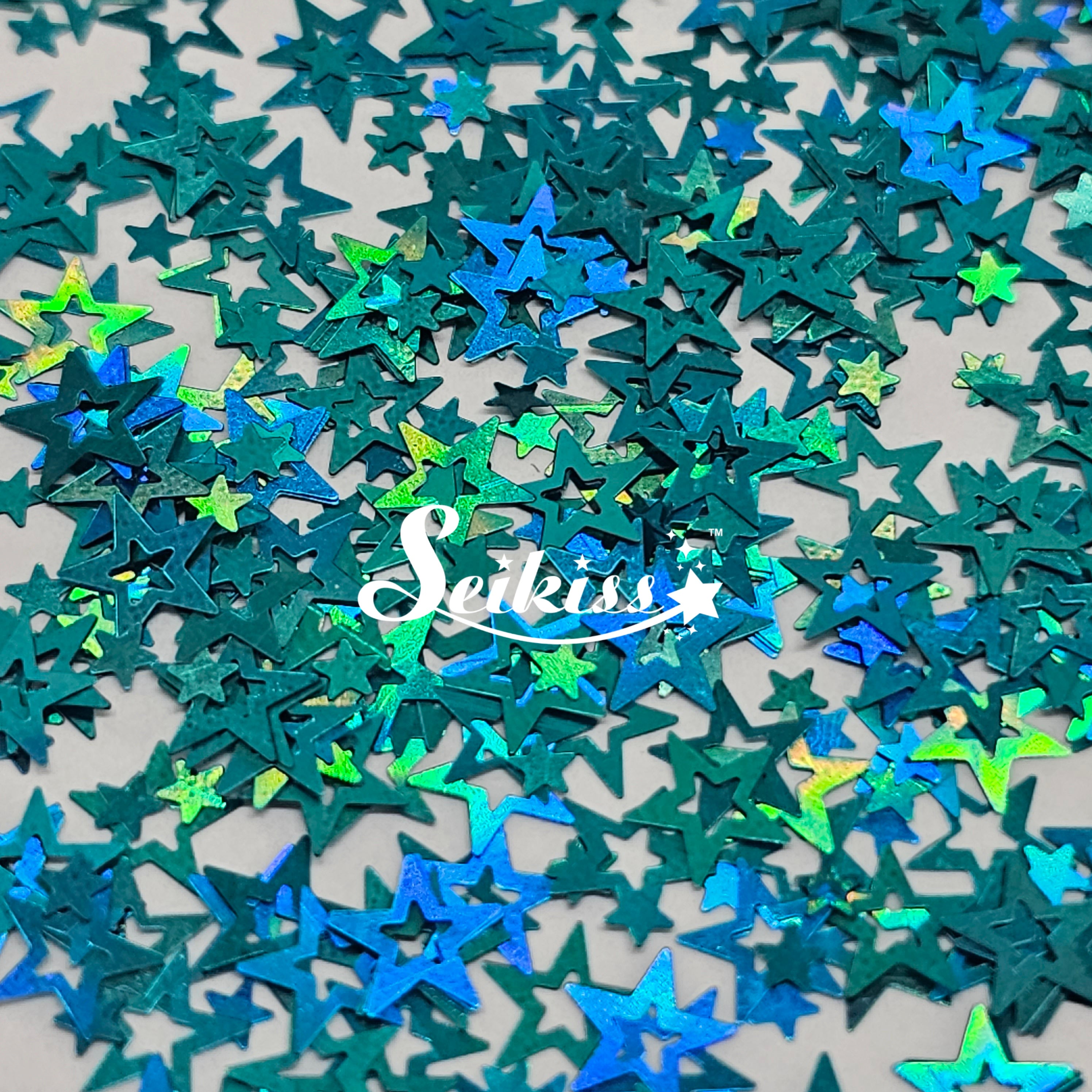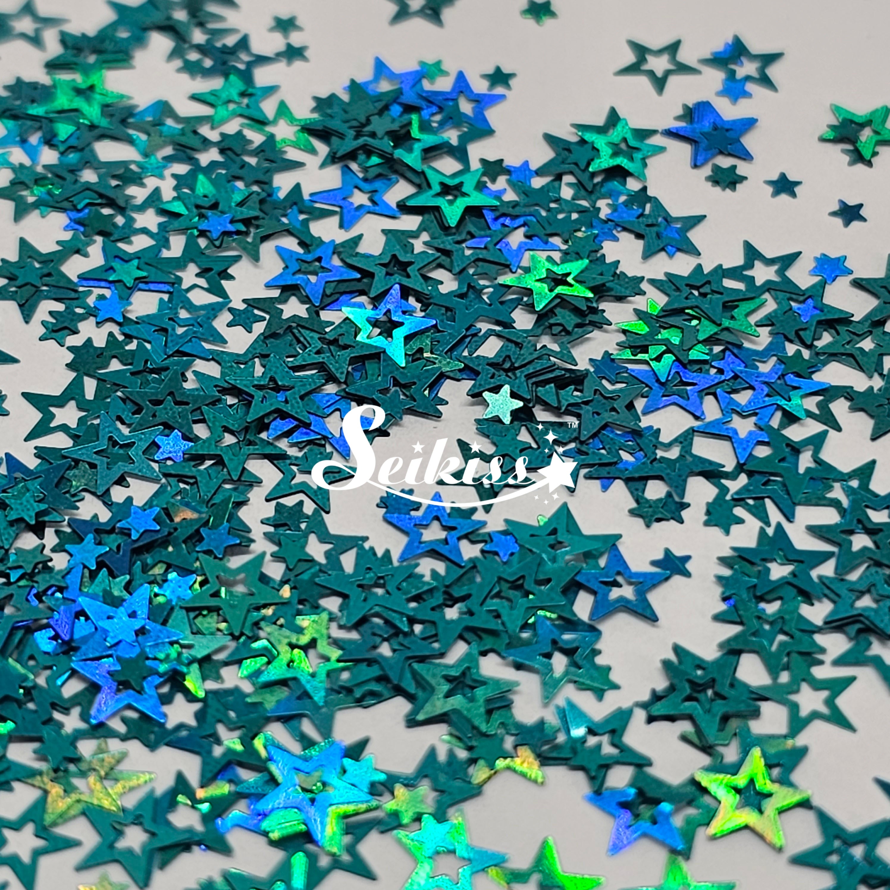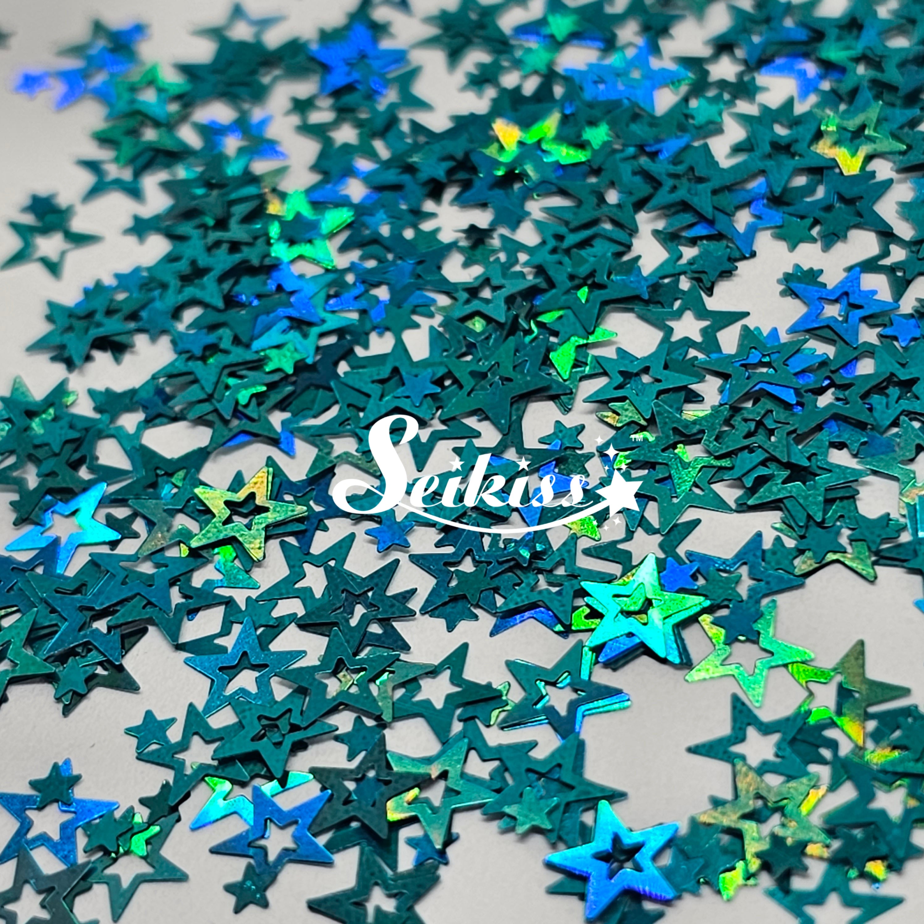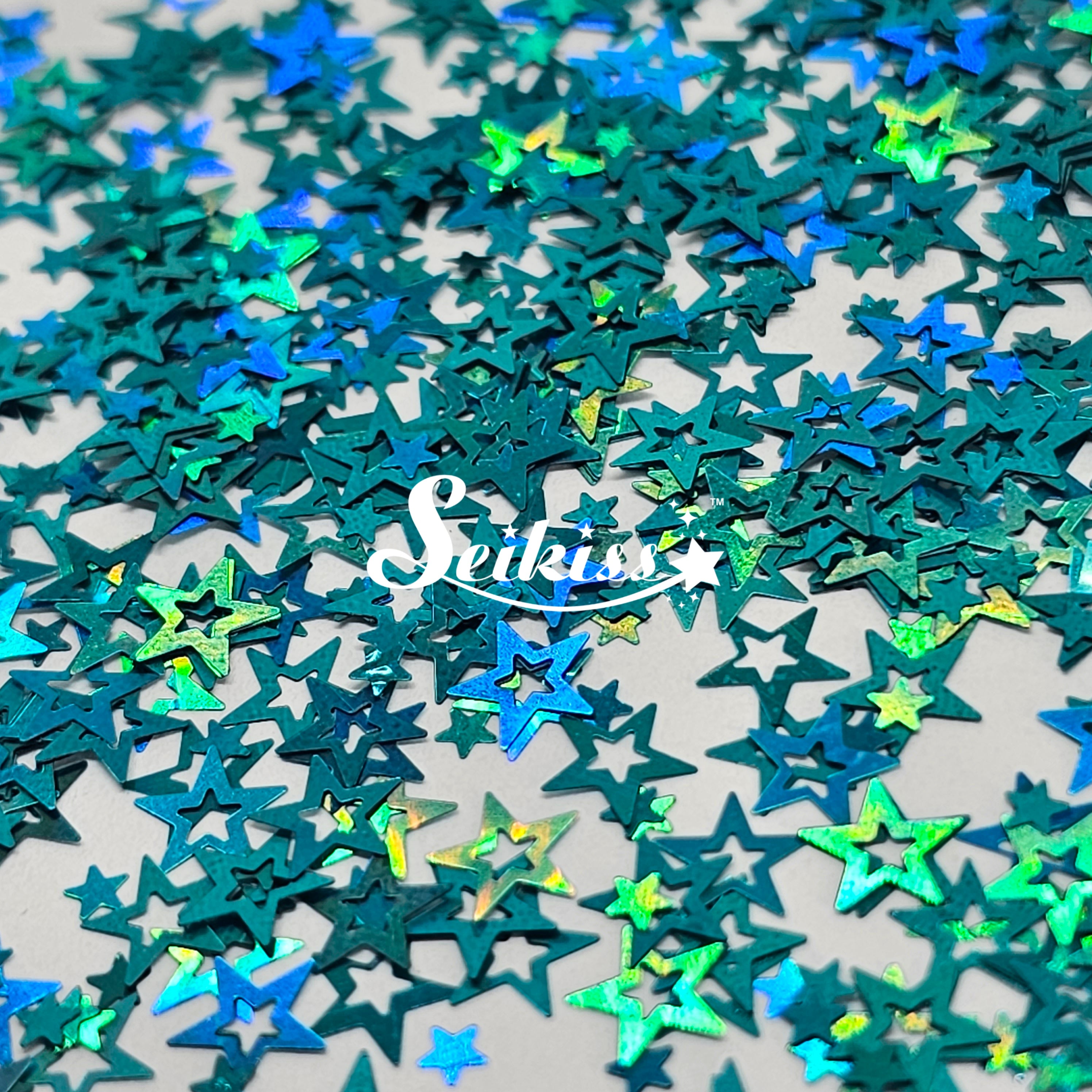 Turquoise Retro Stars is a mix of turquoise star shapes with a holographic finish. This makes your projects shine and is perfect for resin, nails, tumblers, jewelry, arts, and all types of crafts and projects.